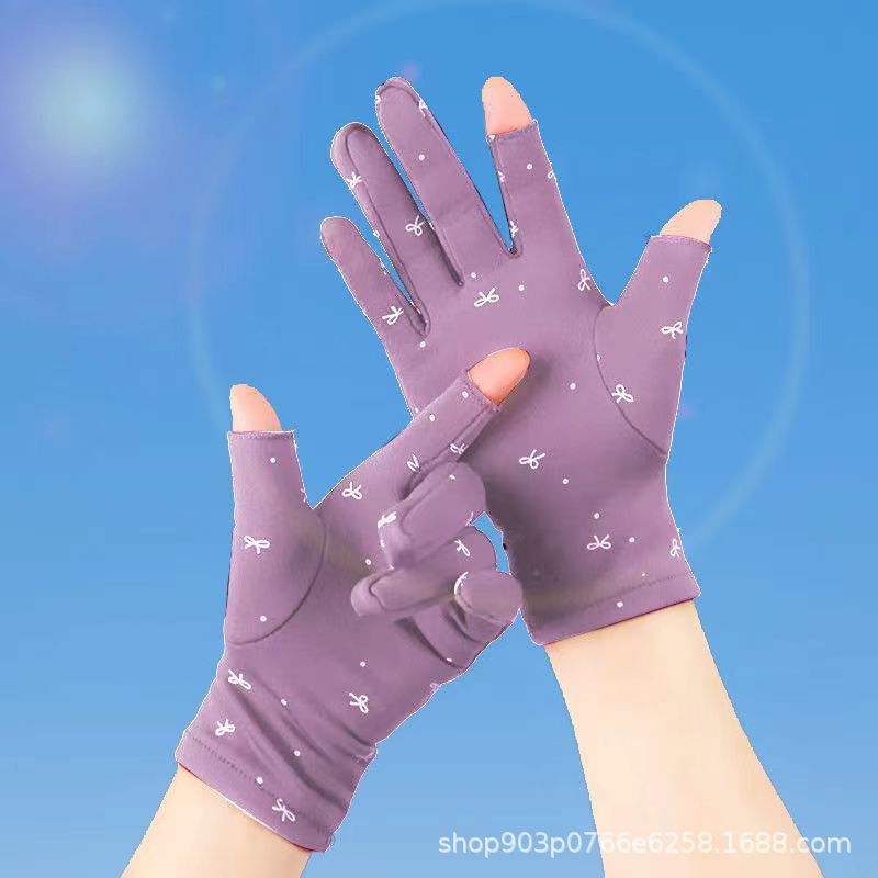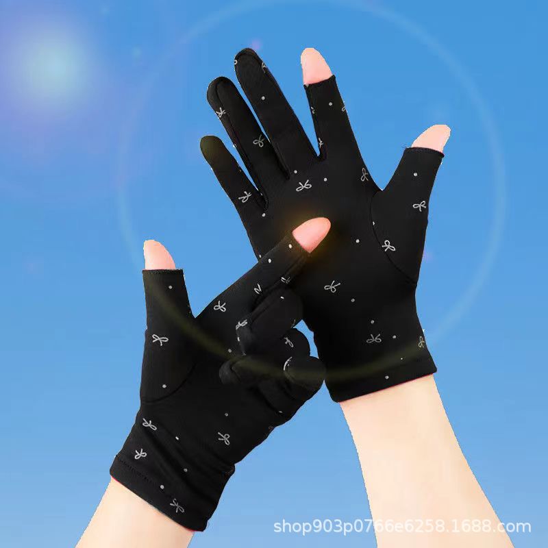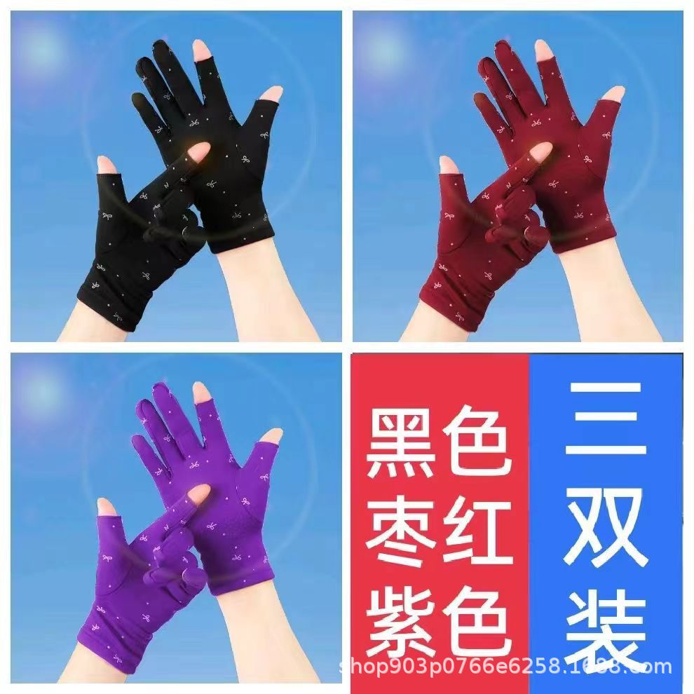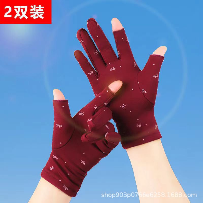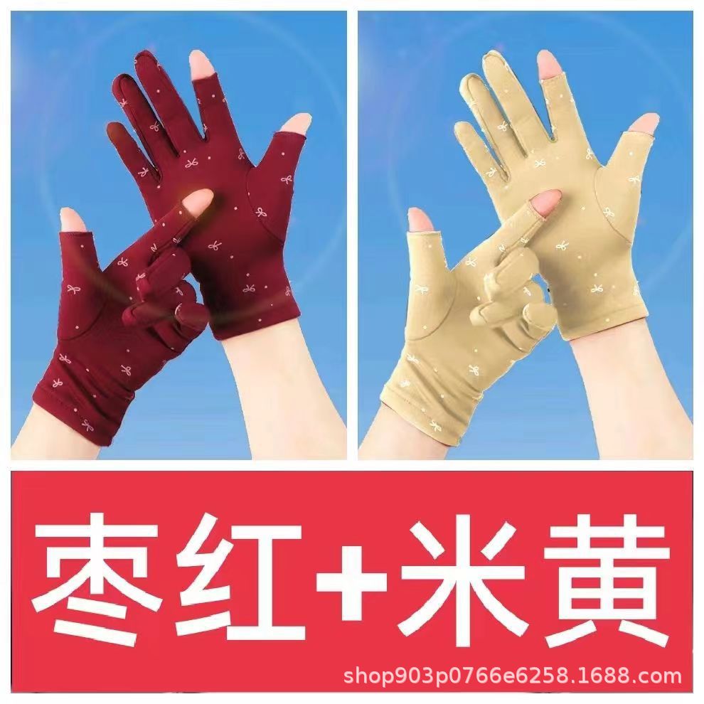 가을과 겨울 여성의 기모 인쇄 활 두 손가락 휴대 전화 컴퓨터 작업 따뜻한 오픈 손가락 장갑 춤 스퀘어 댄스스토어 가기