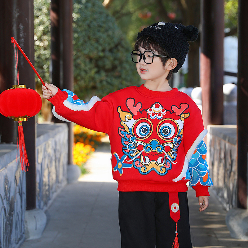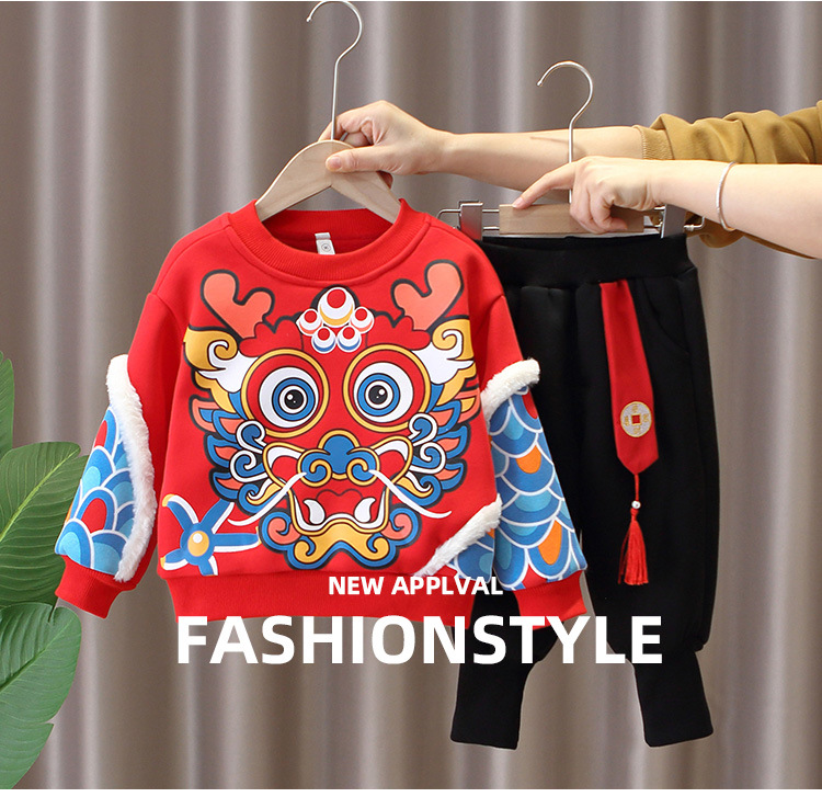 TZ202-dragon 패턴 인쇄 새해 옷-어린이 용 새해 빨간 기모 스웨터 새 소년 세트스토어 가기