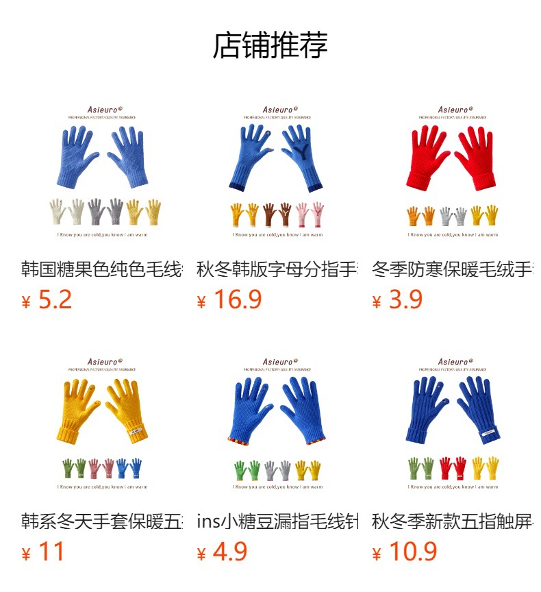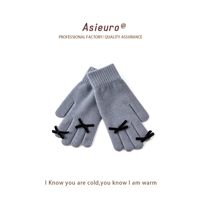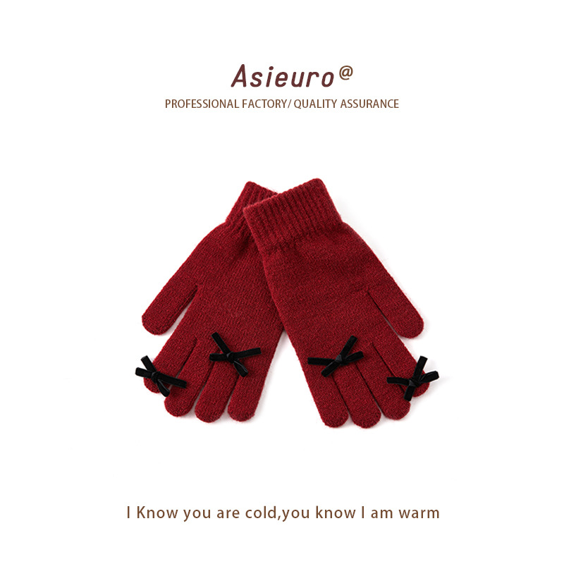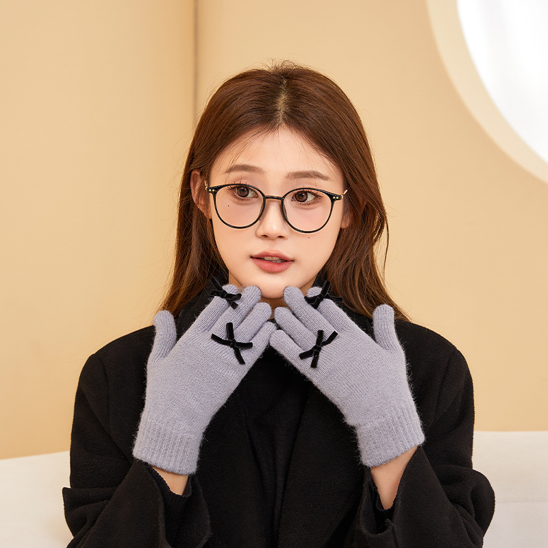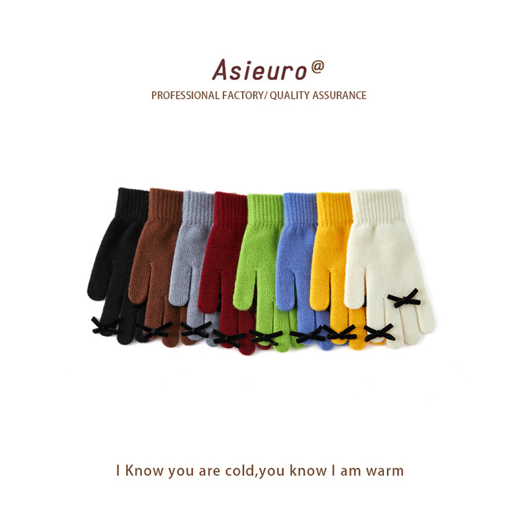 2024 겨울 신제품 다섯 손가락 솔리드 컬러 따뜻한 니트 장갑 여성 활 학생 방한 양모 장갑스토어 가기
