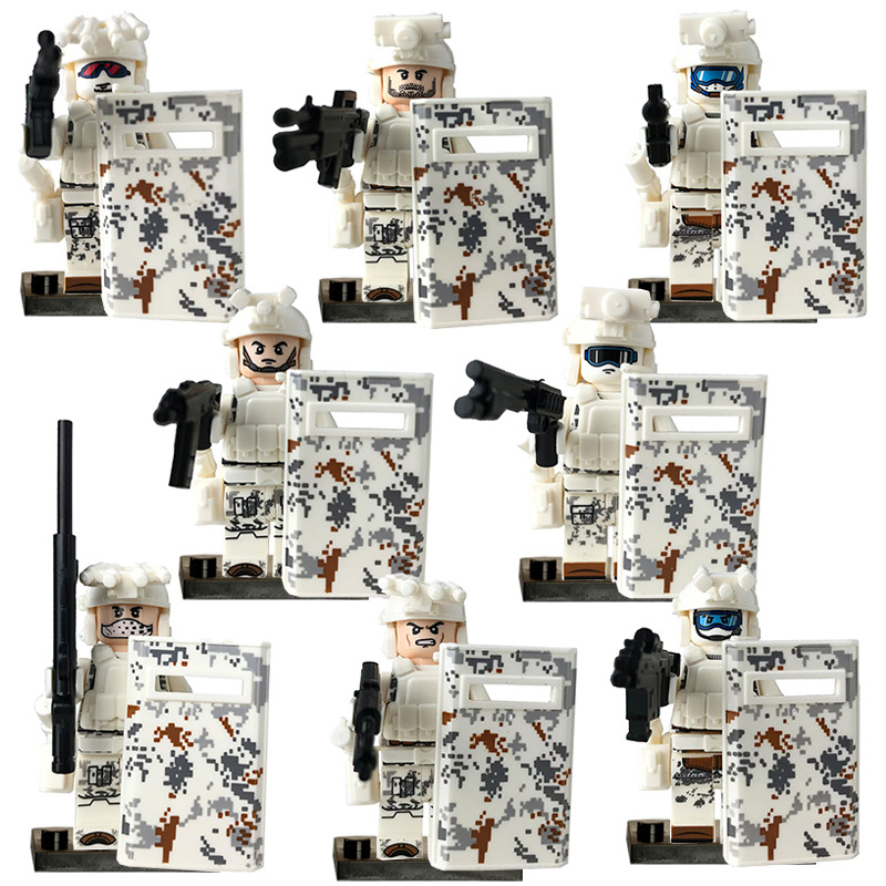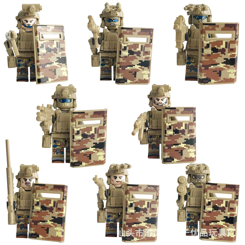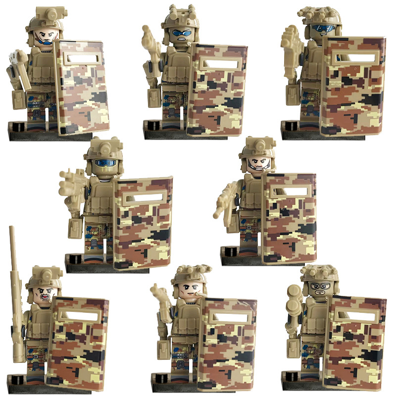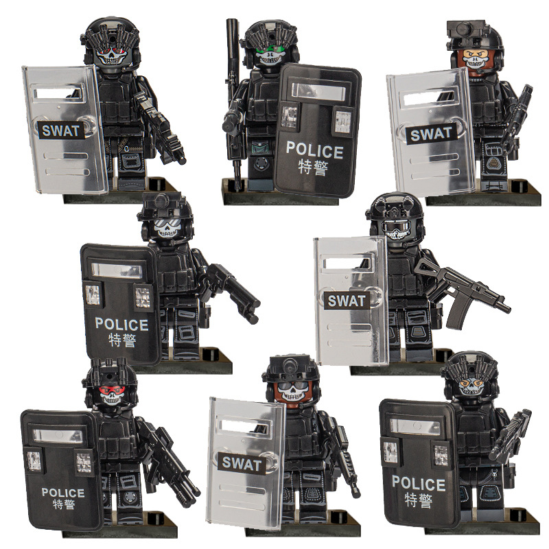 국경 간 유령 특수 경찰 방패 무기 늑대 전사 특수 부대 빌딩 블록 인형 교육 장난감 대외 무역