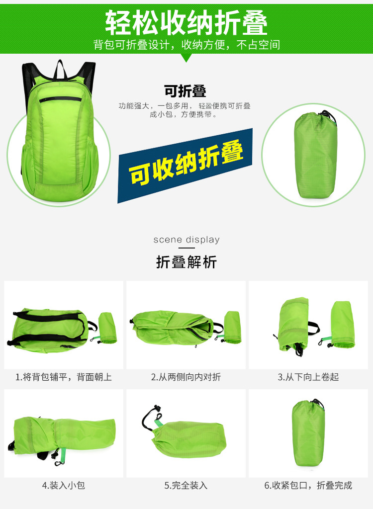 스포츠 접이식 배낭 가방 패션 스토리지 접이식 가방 캐주얼 가방 스포츠 울트라 라이트 스킨 가방 로고 배낭