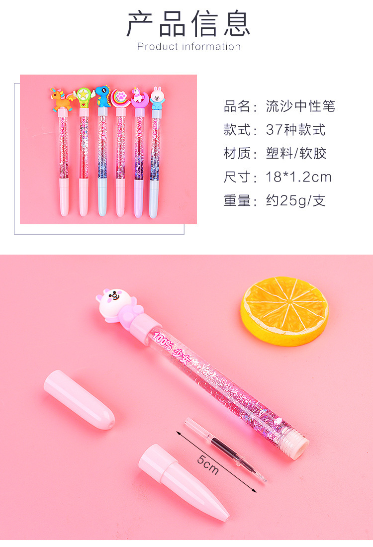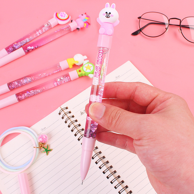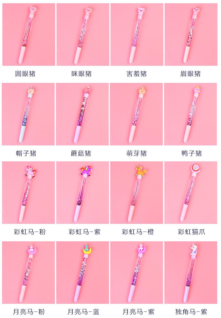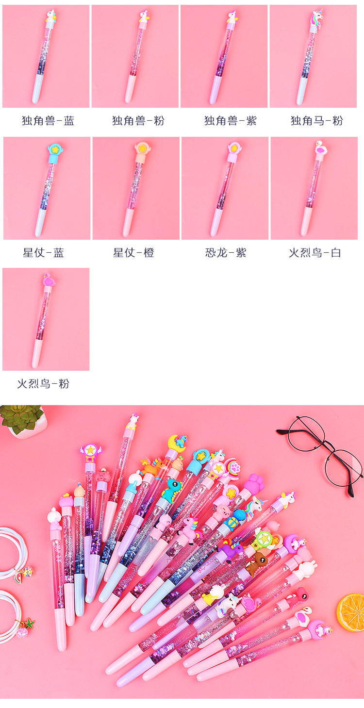 한국의 창조적 인 작은 요정 스틱 귀여운 만화 오일 퀵 샌드 창조적 인 마술 다채로운 유니콘 젤 펜 제조 업체스토어 가기