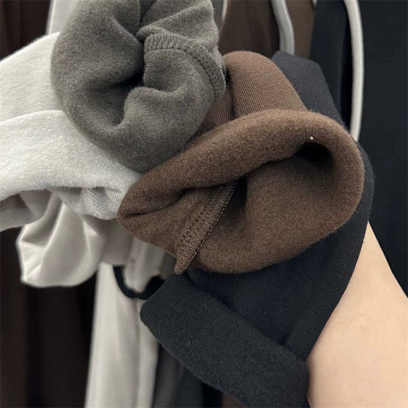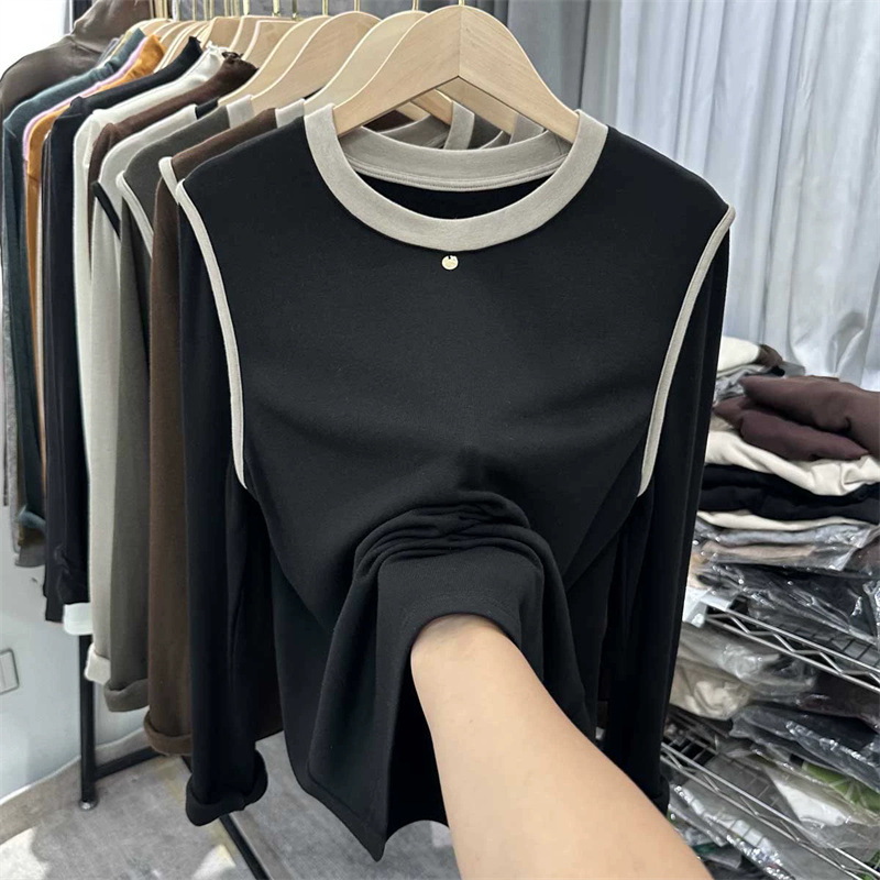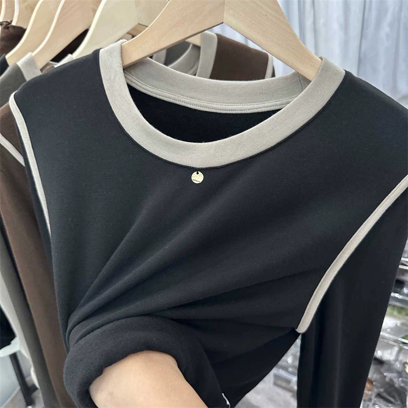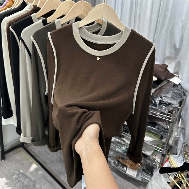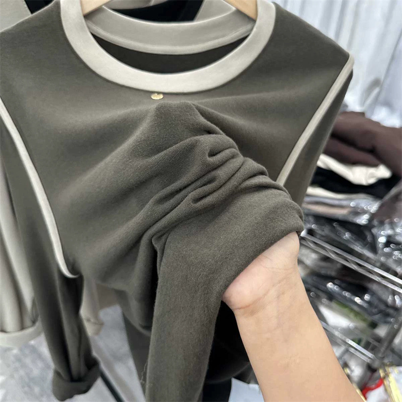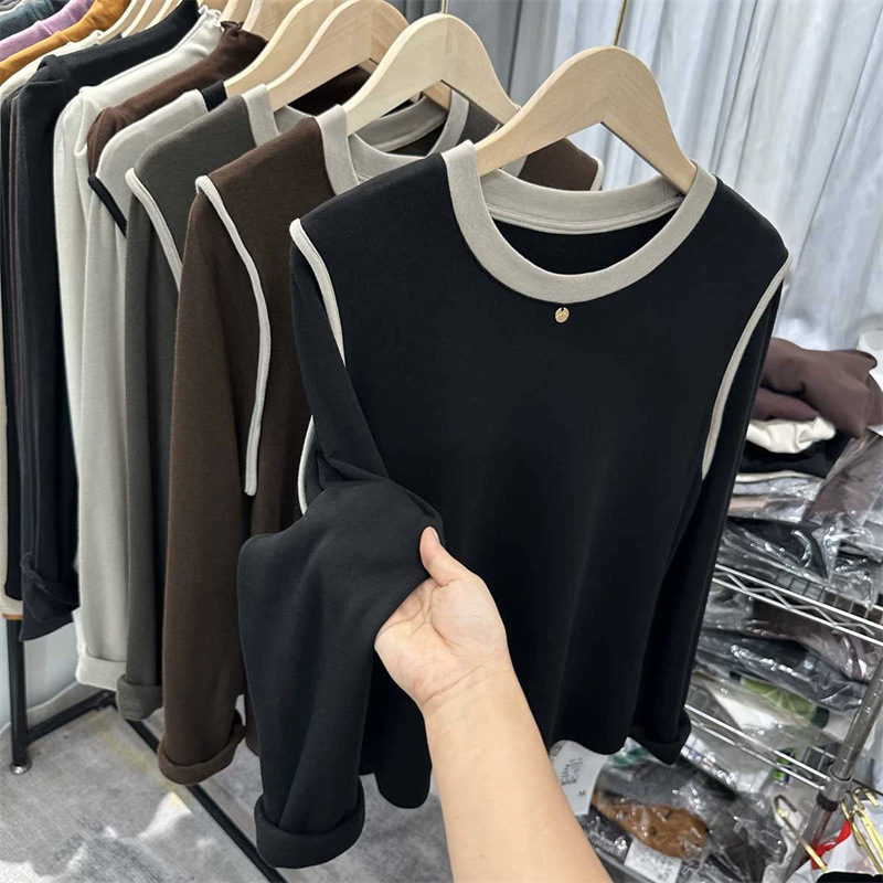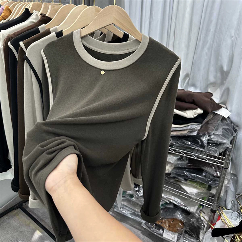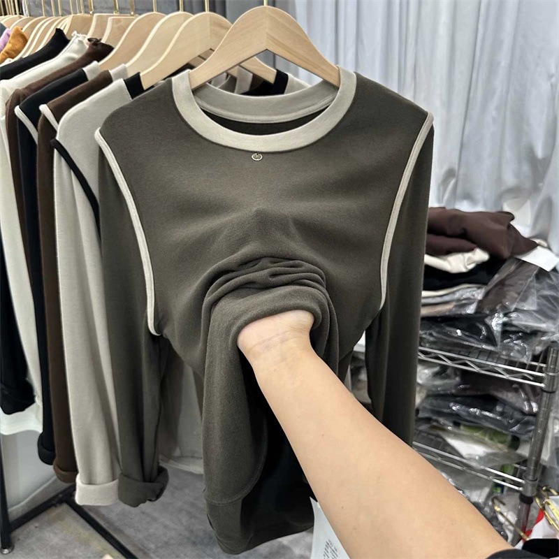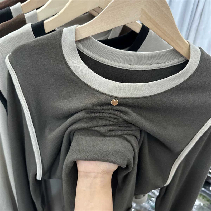 가을과 겨울 디자인 외래식 기모 두꺼운 따뜻한 크루 넥 느슨한 대형 통통 M 긴팔 티셔츠 여성용 내베이스 셔츠