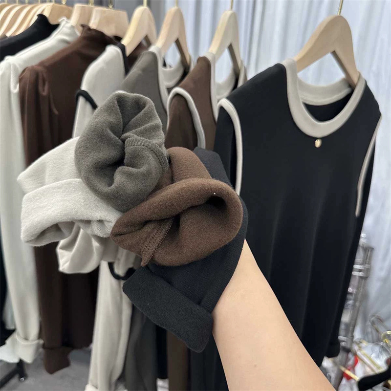 가을과 겨울 디자인 외래식 기모 두꺼운 따뜻한 크루 넥 느슨한 대형 통통 M 긴팔 티셔츠 여성용 내베이스 셔츠스토어 가기