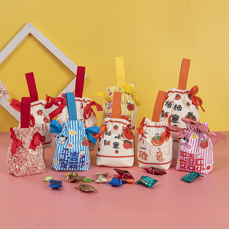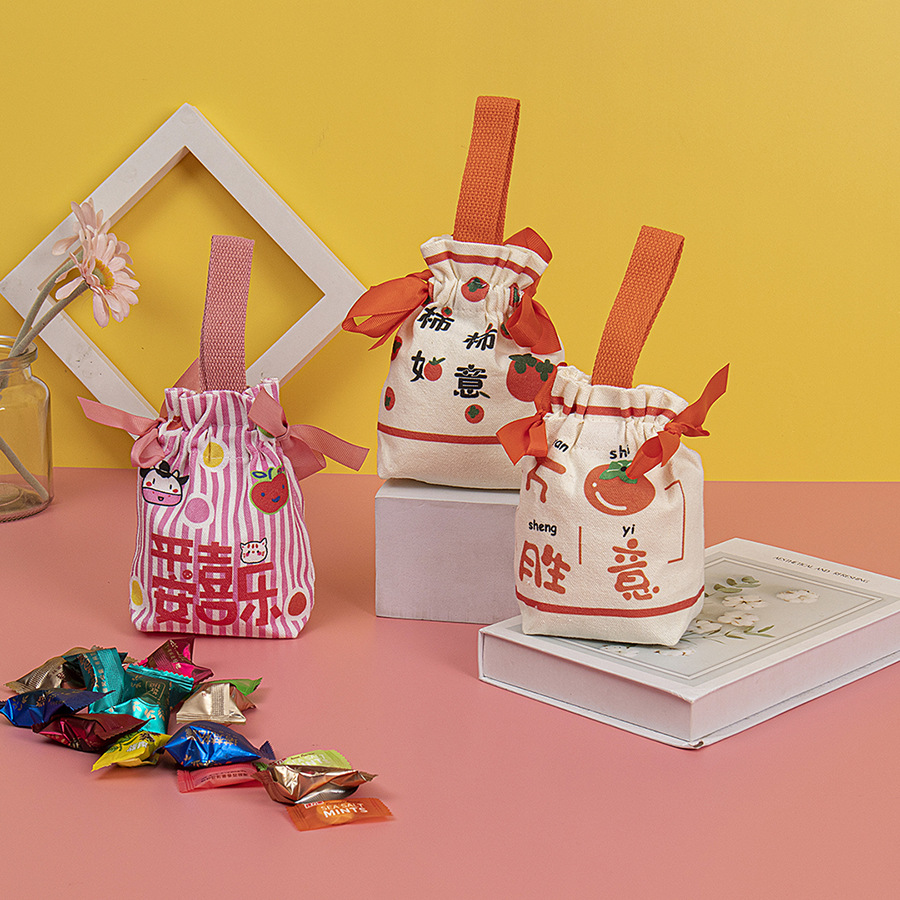 캔버스 가방 선물 크리에이티브 인 번들 사탕 캔버스 가방 웨딩 귀여운 끈 번들 선물 가방 도매스토어 가기