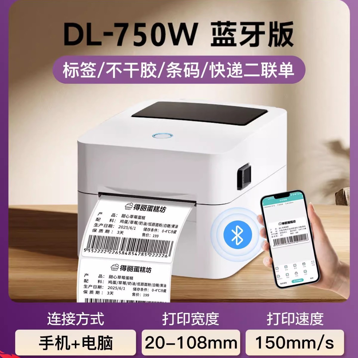 델리 열전사 라벨 프린터, 접착식 바코드 프린터, 열전사 용지, 블루투스 소형 상업용 택배 라벨 프린터