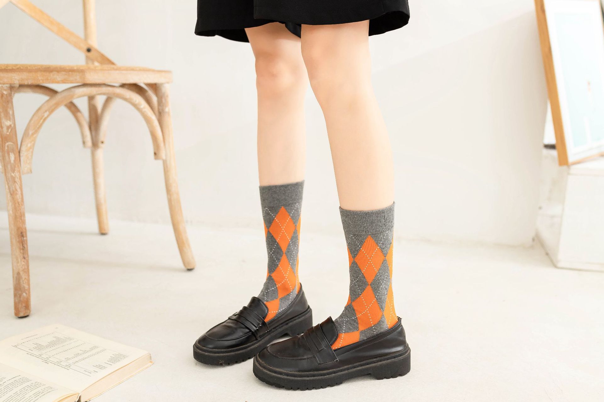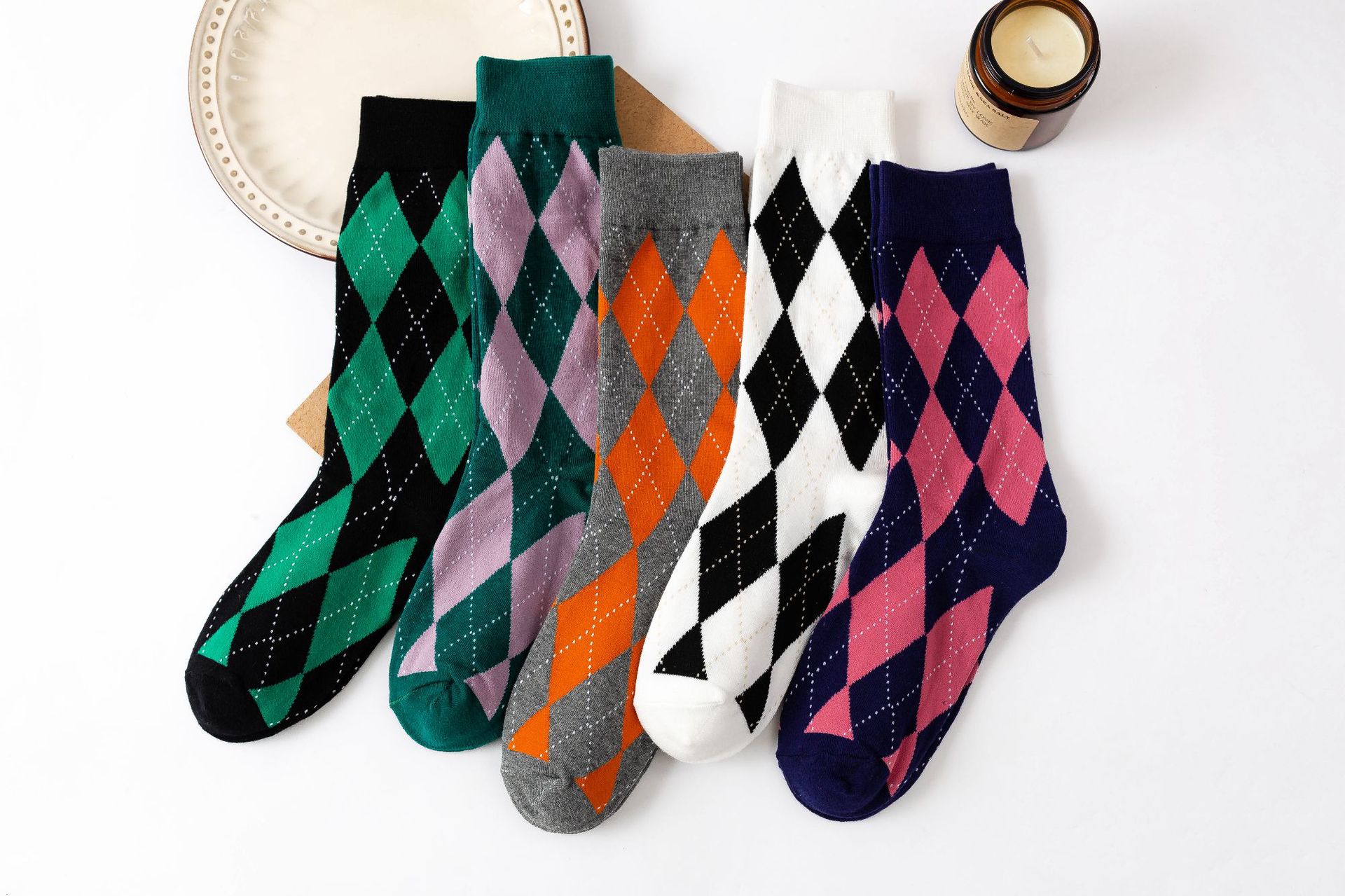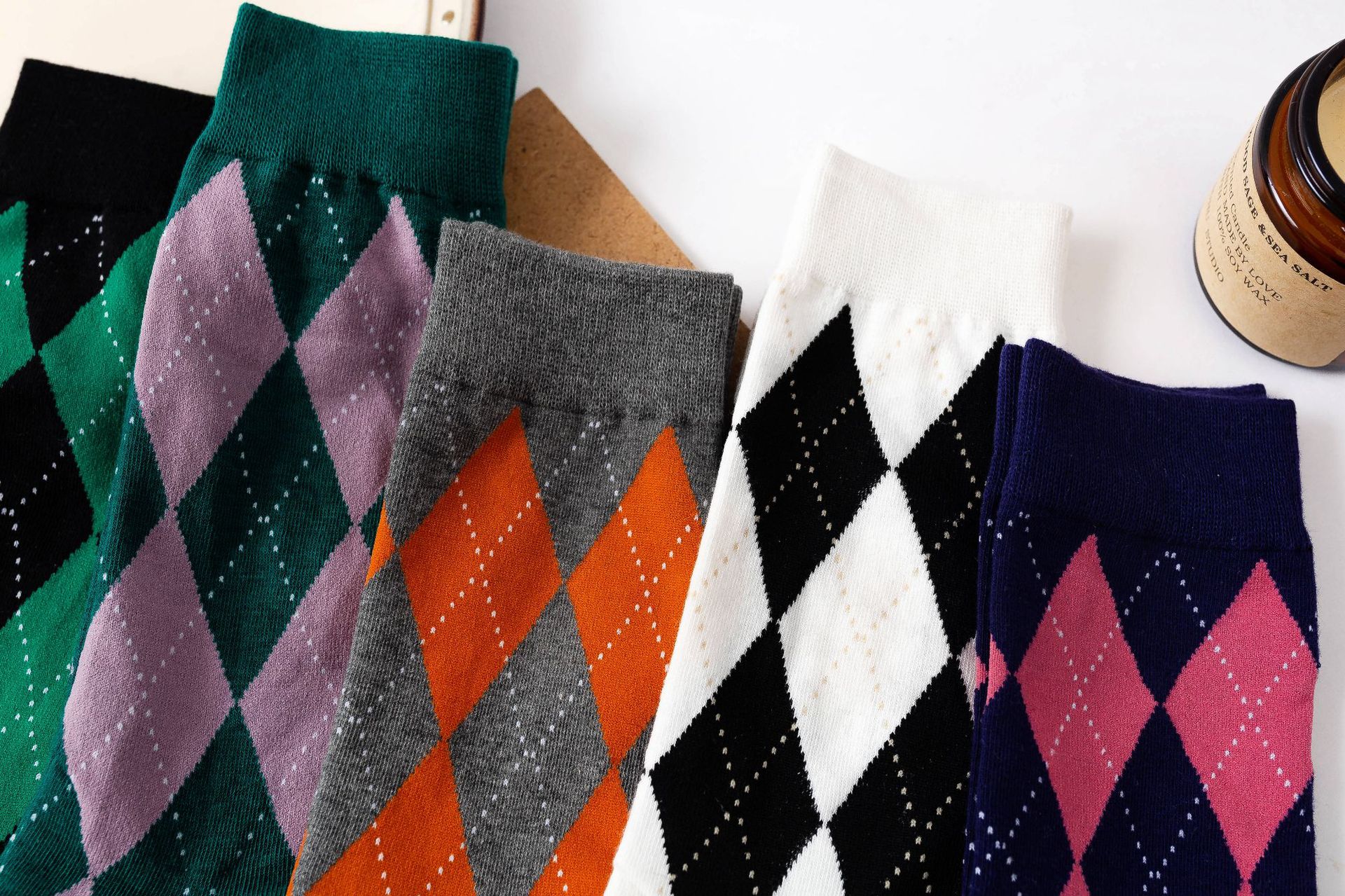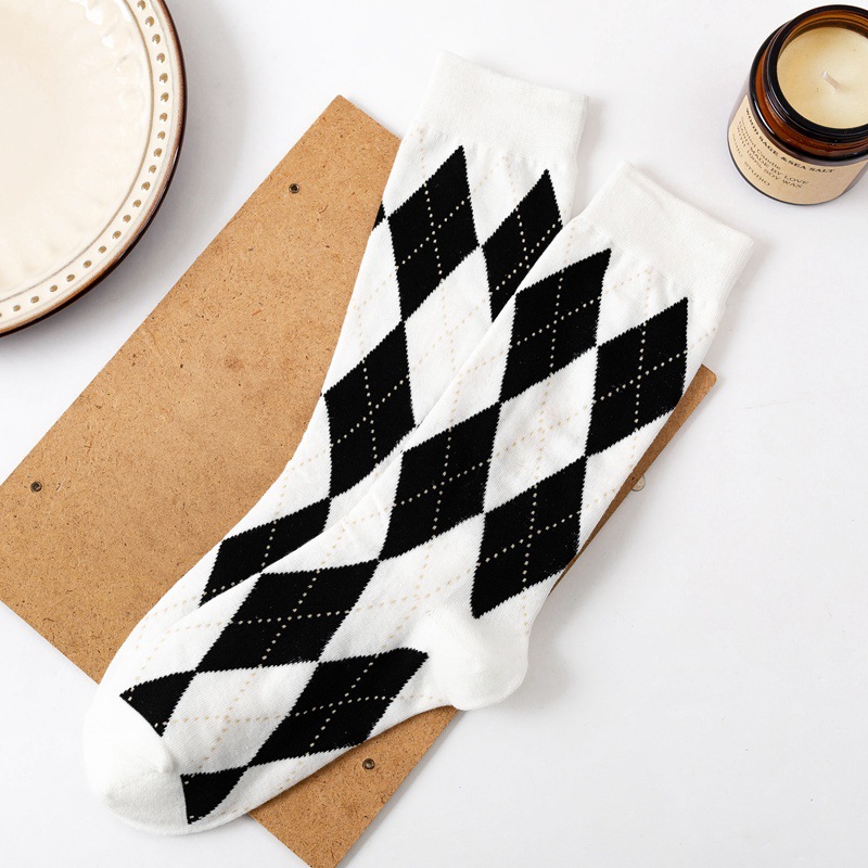 가을과 겨울 다재다능한 컬러 프레피 스타일 양말 높은 양말 클래식 마름모 송아지 양말면 긴 여성용 양말스토어 가기