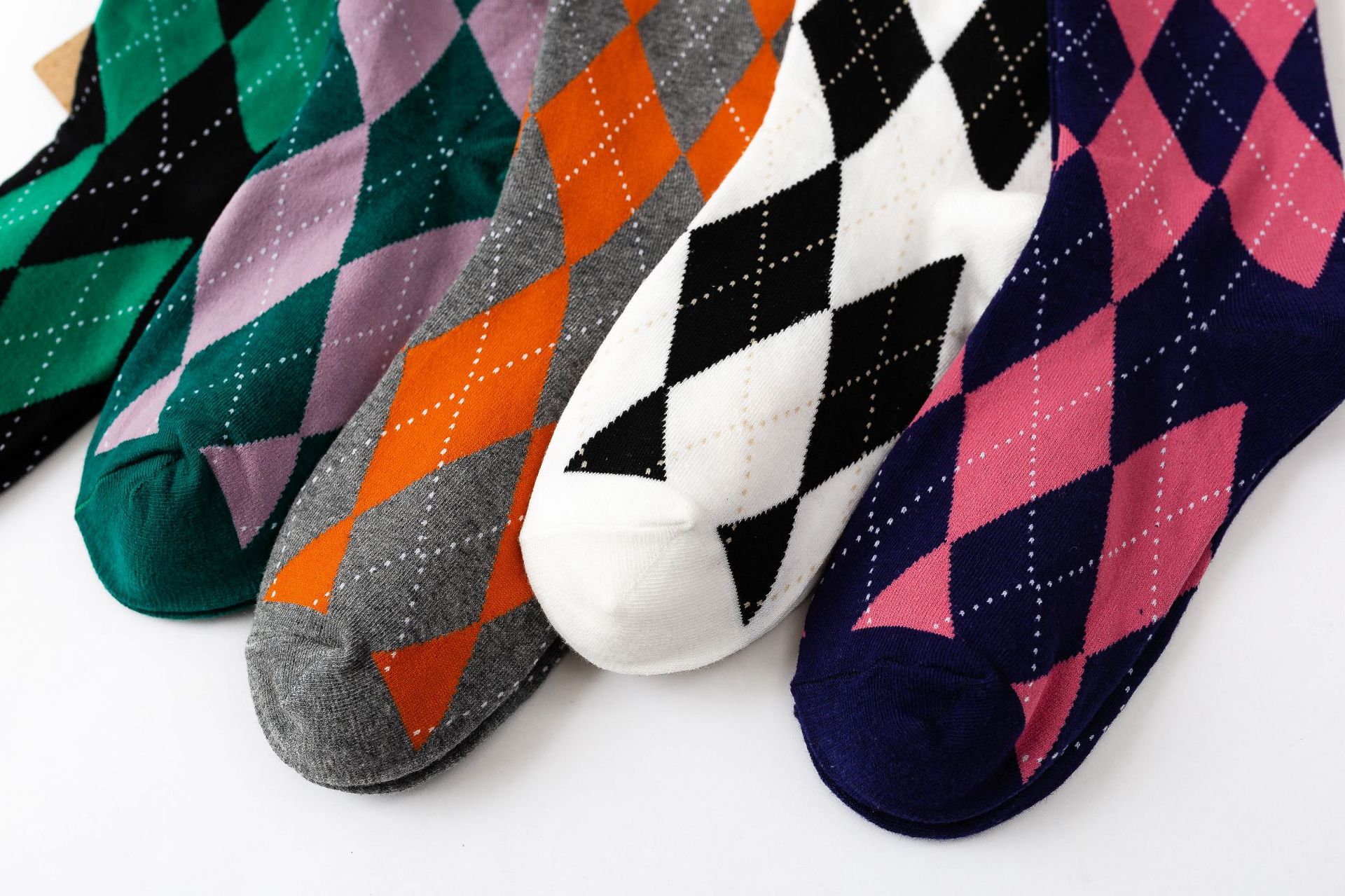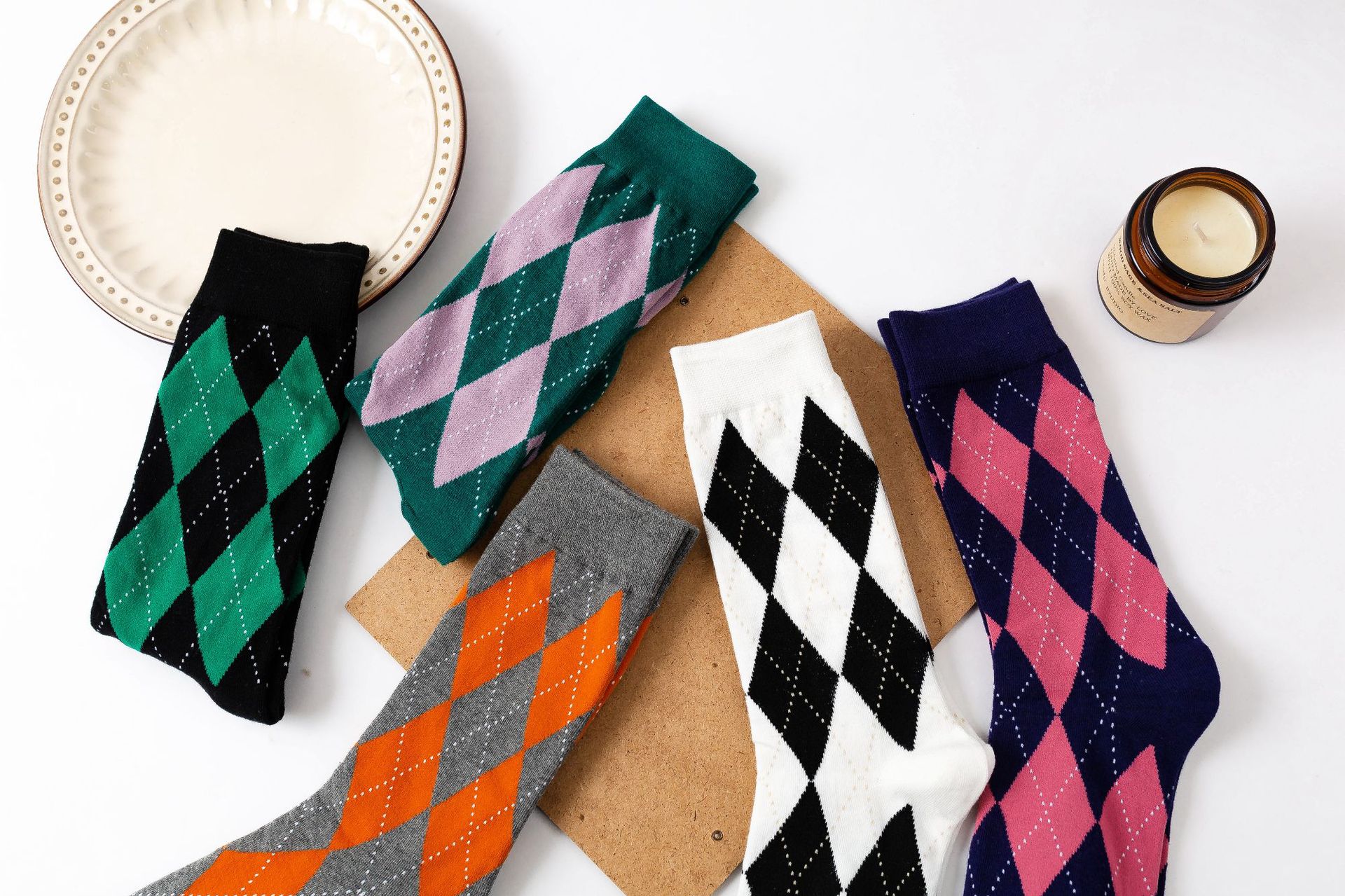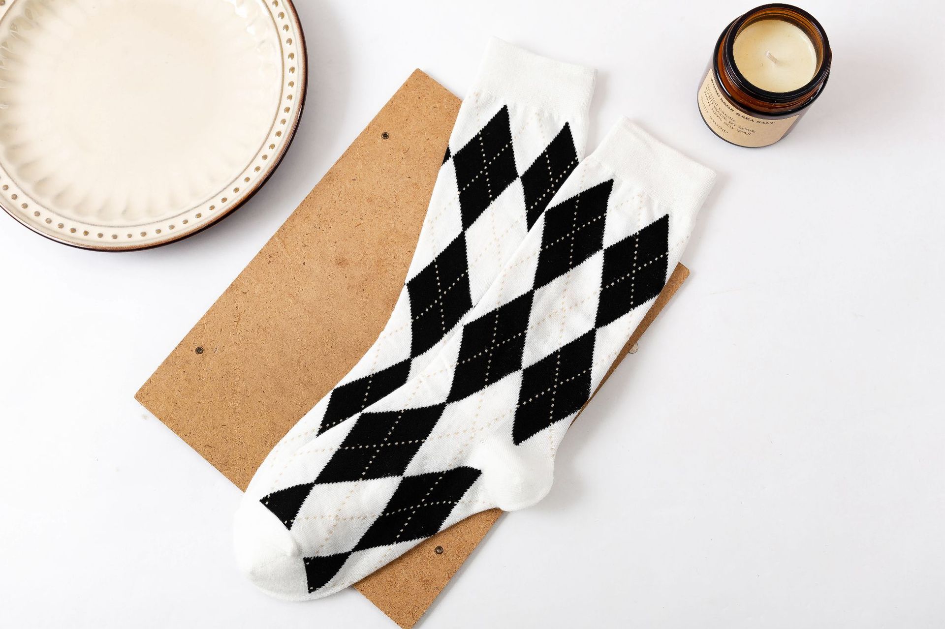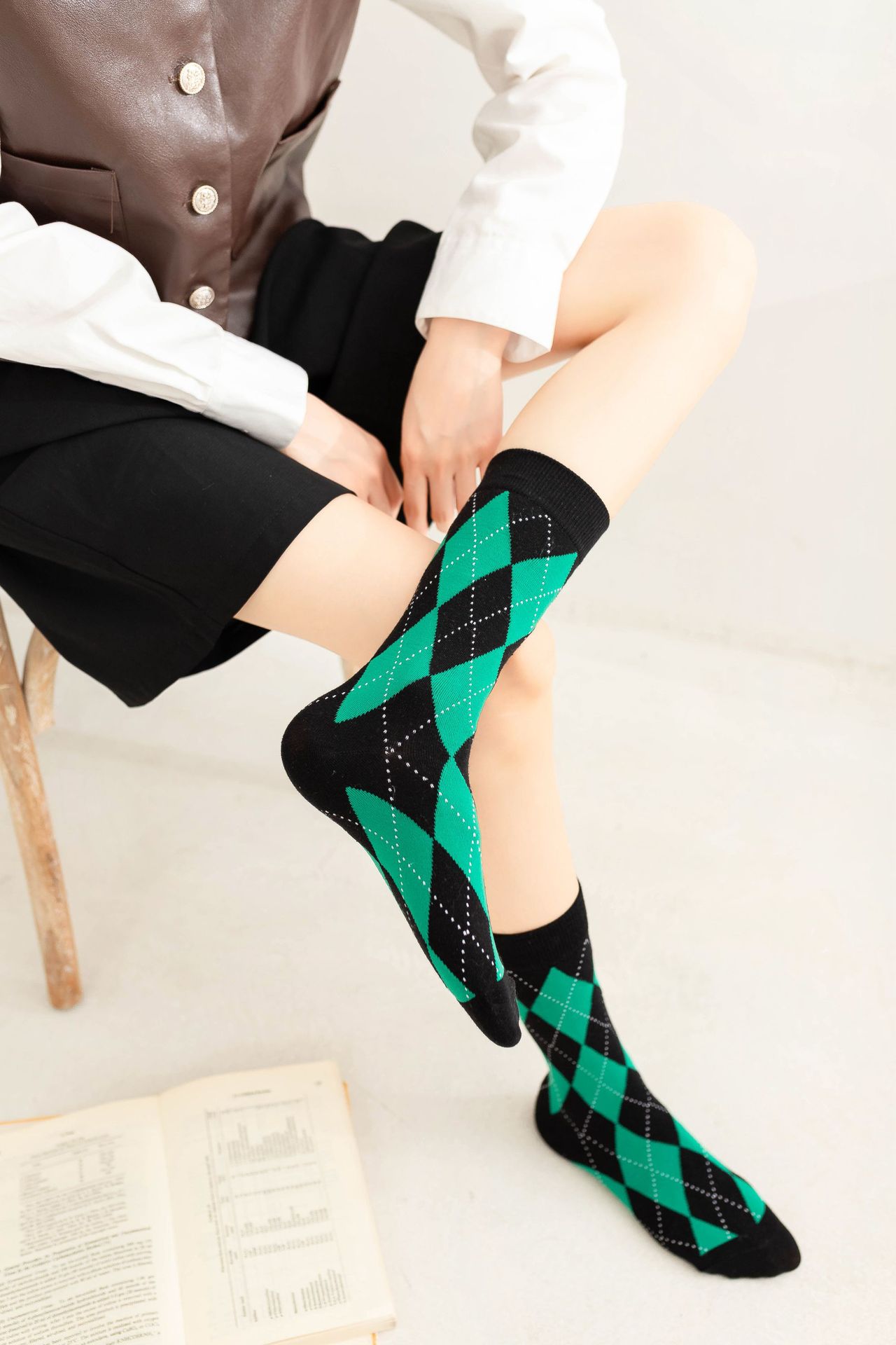 가을과 겨울 다재다능한 컬러 프레피 스타일 양말 높은 양말 클래식 마름모 송아지 양말면 긴 여성용 양말스토어 가기