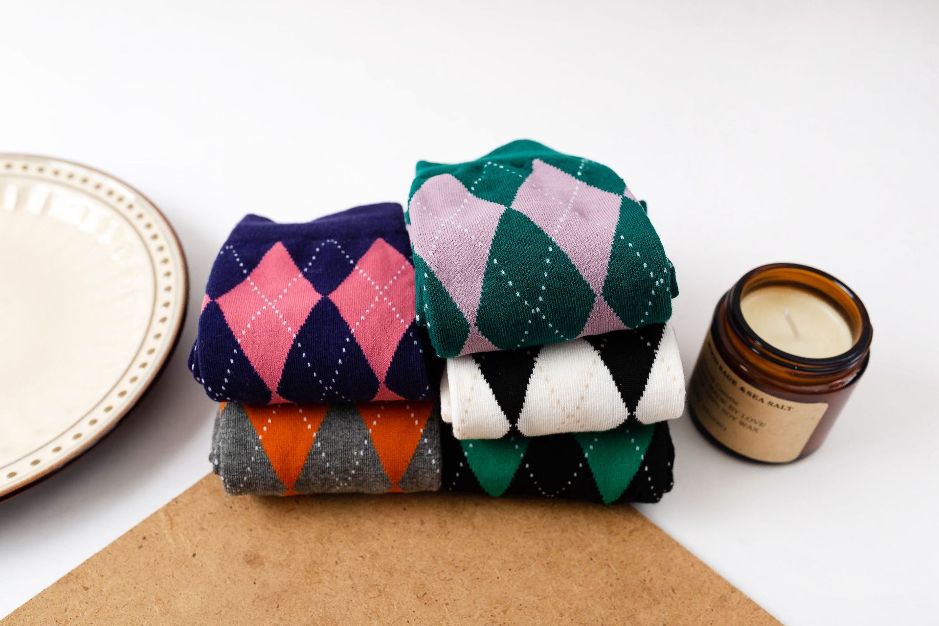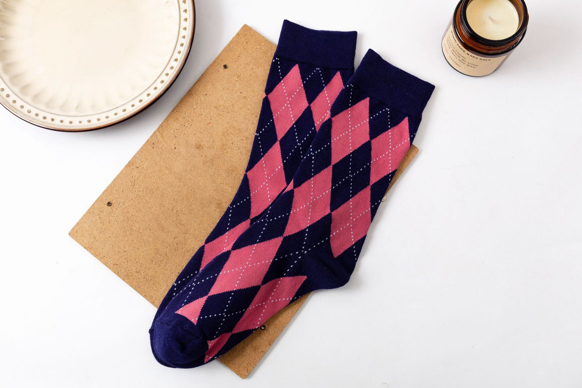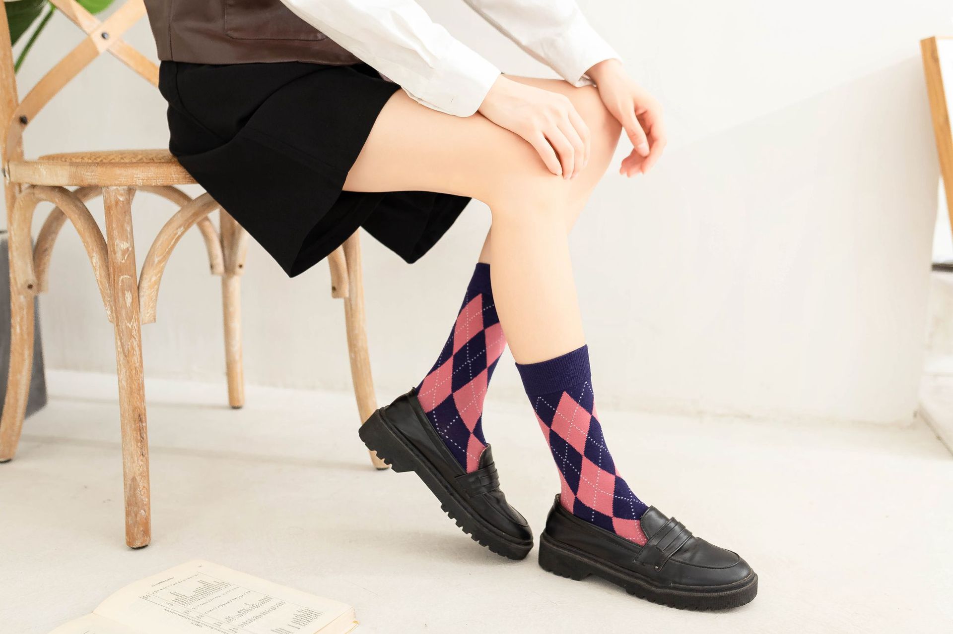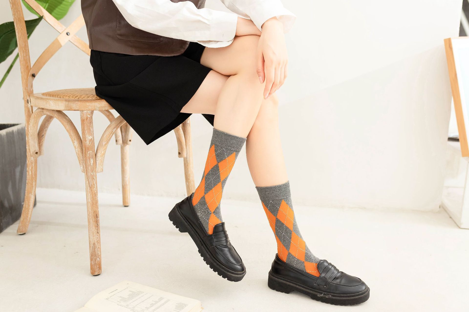 가을과 겨울 다재다능한 컬러 프레피 스타일 양말 높은 양말 클래식 마름모 송아지 양말면 긴 여성용 양말스토어 가기