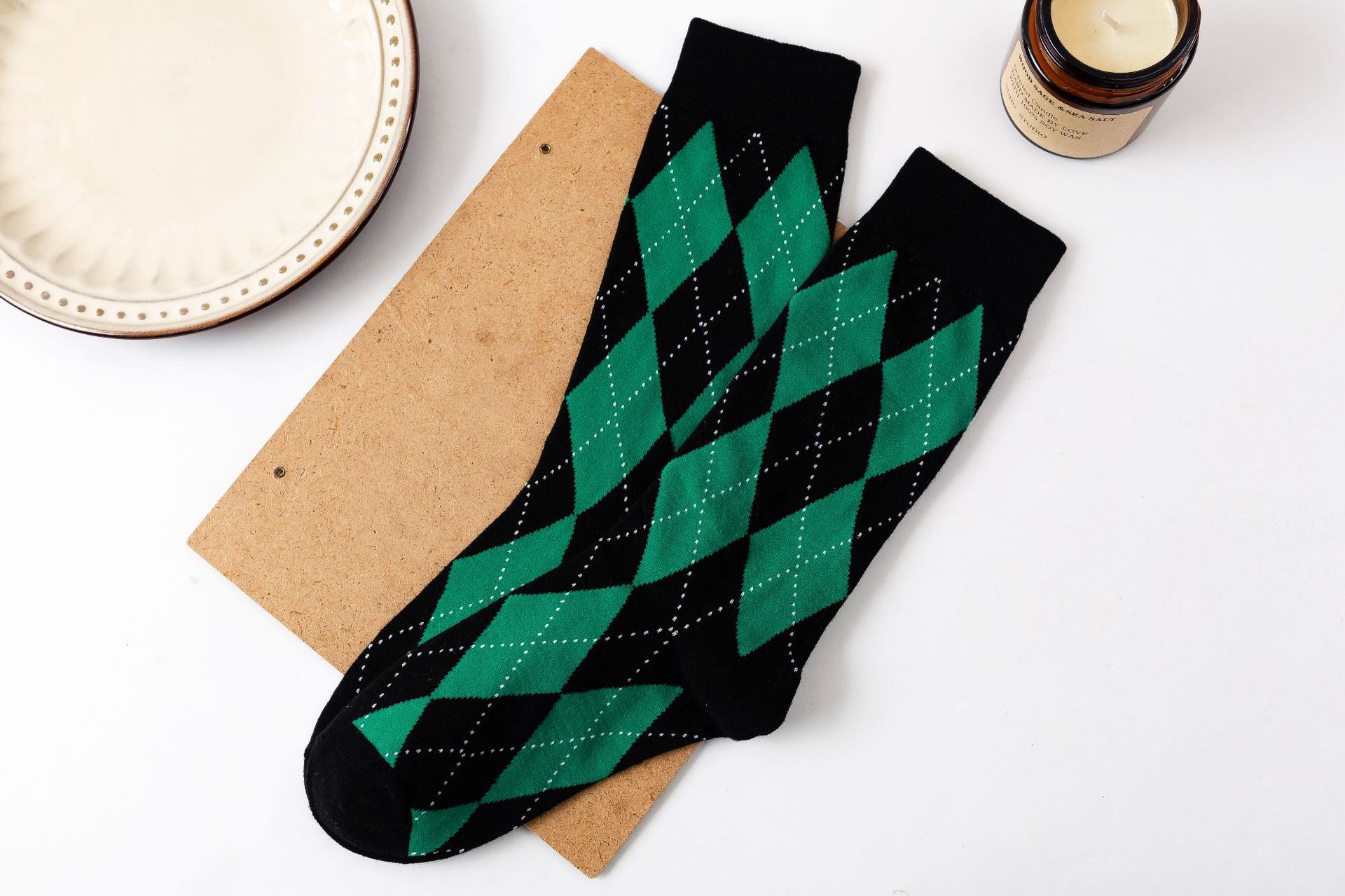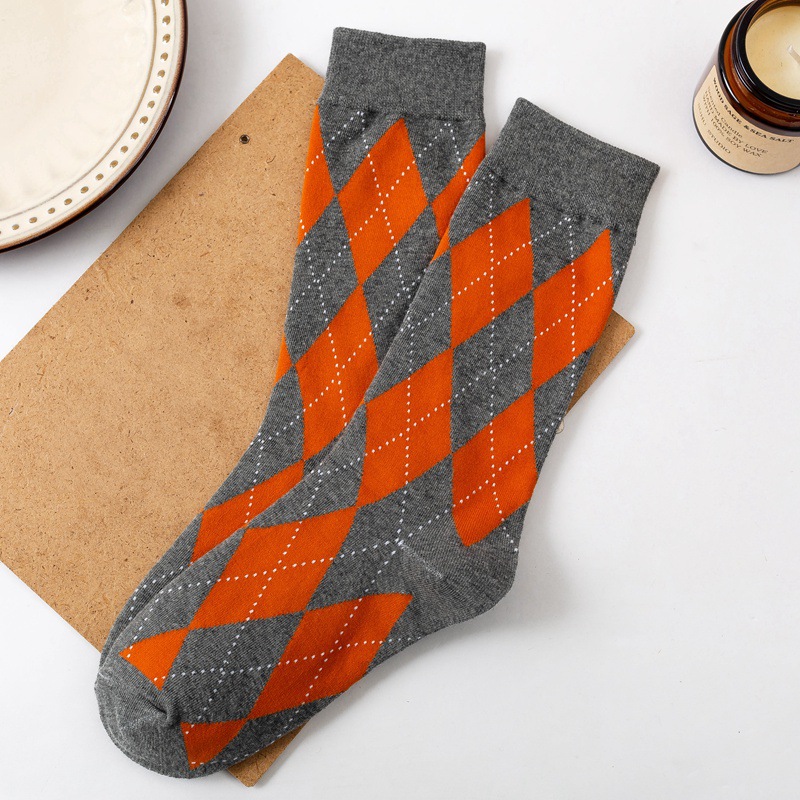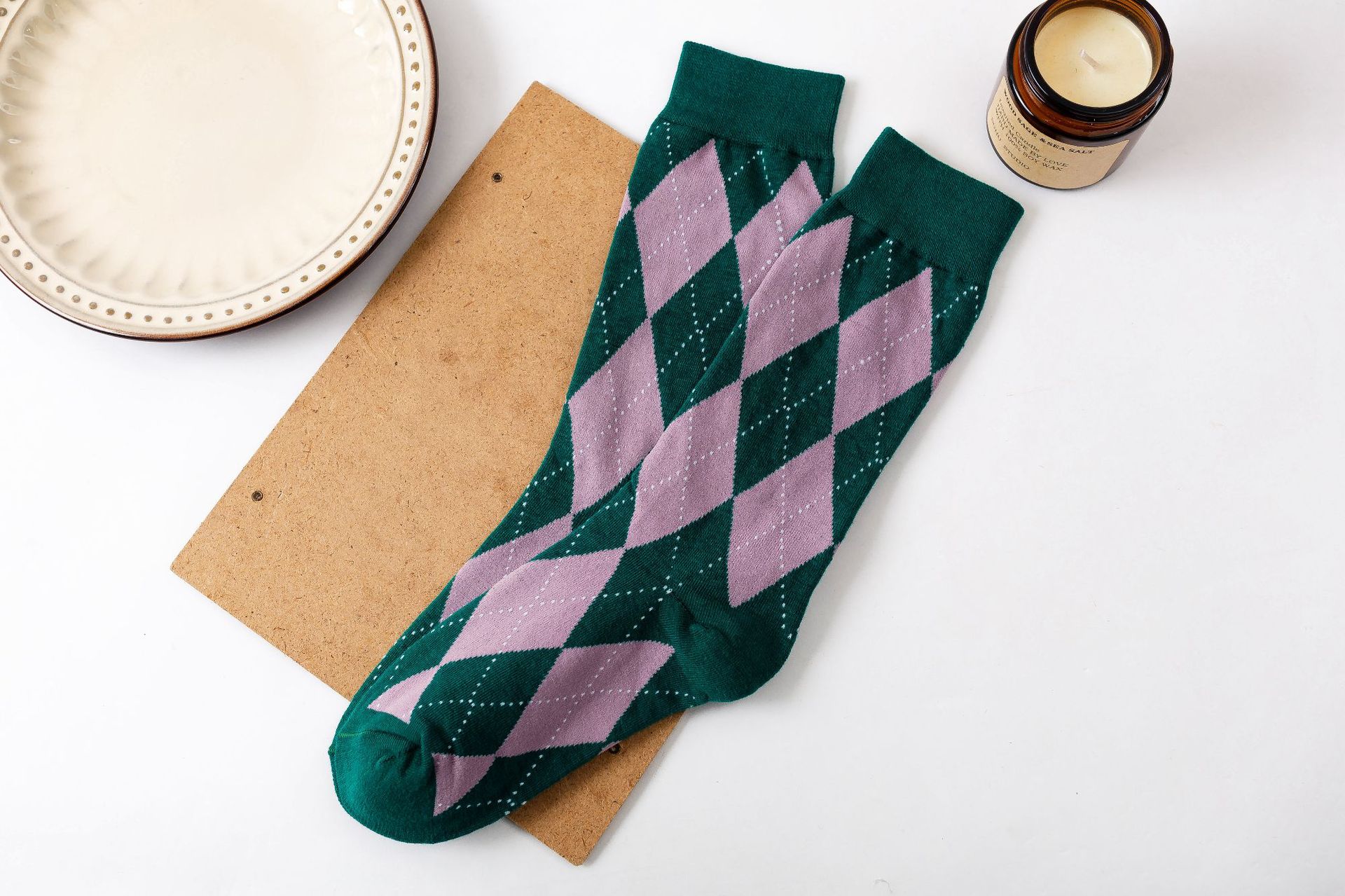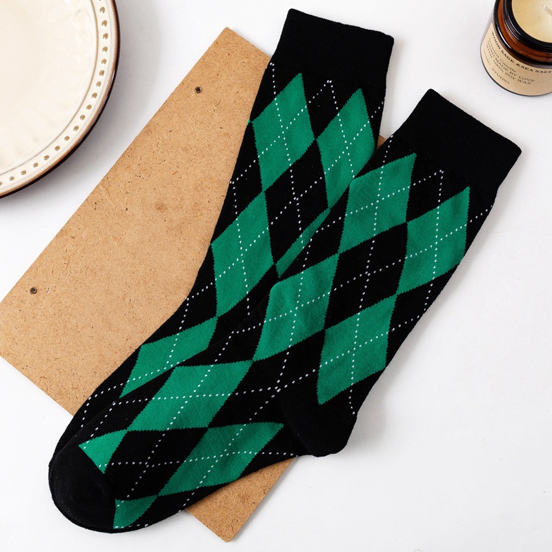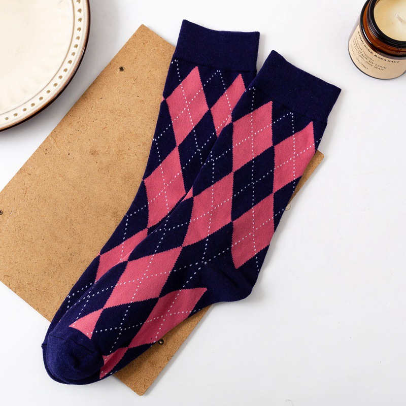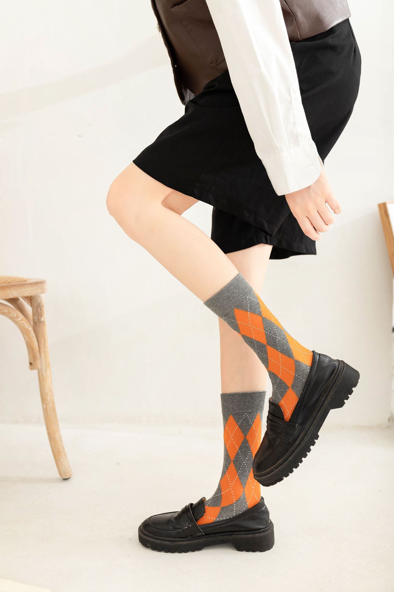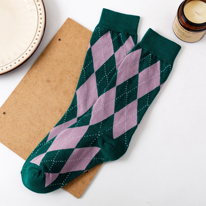 가을과 겨울 다재다능한 컬러 프레피 스타일 양말 높은 양말 클래식 마름모 송아지 양말면 긴 여성용 양말