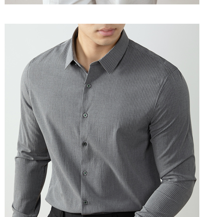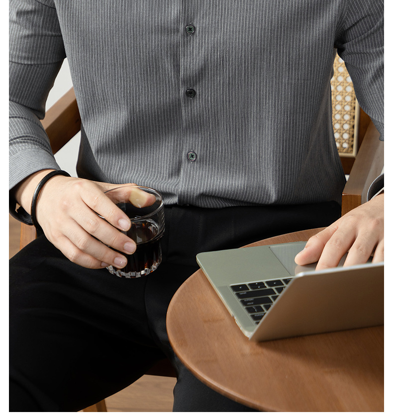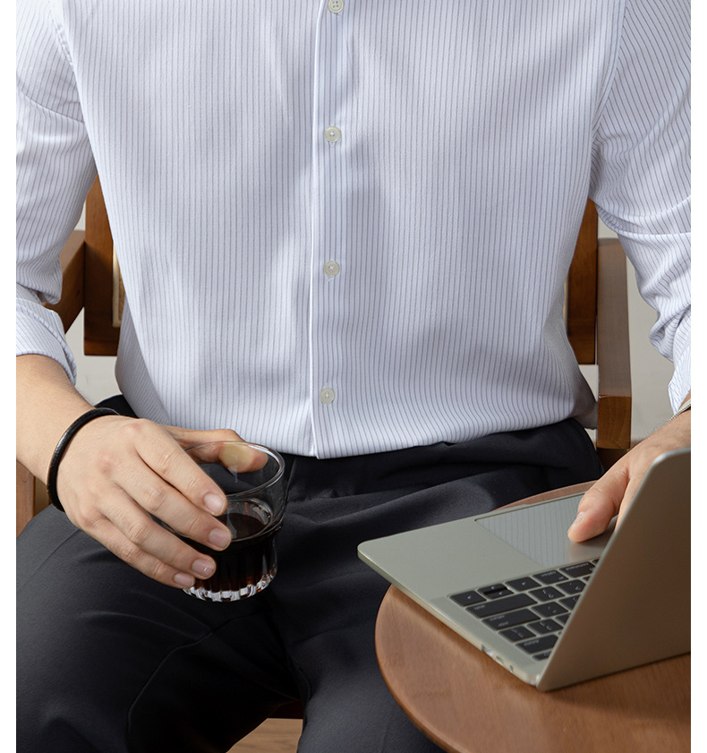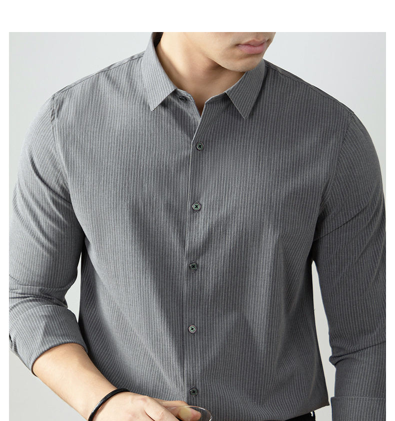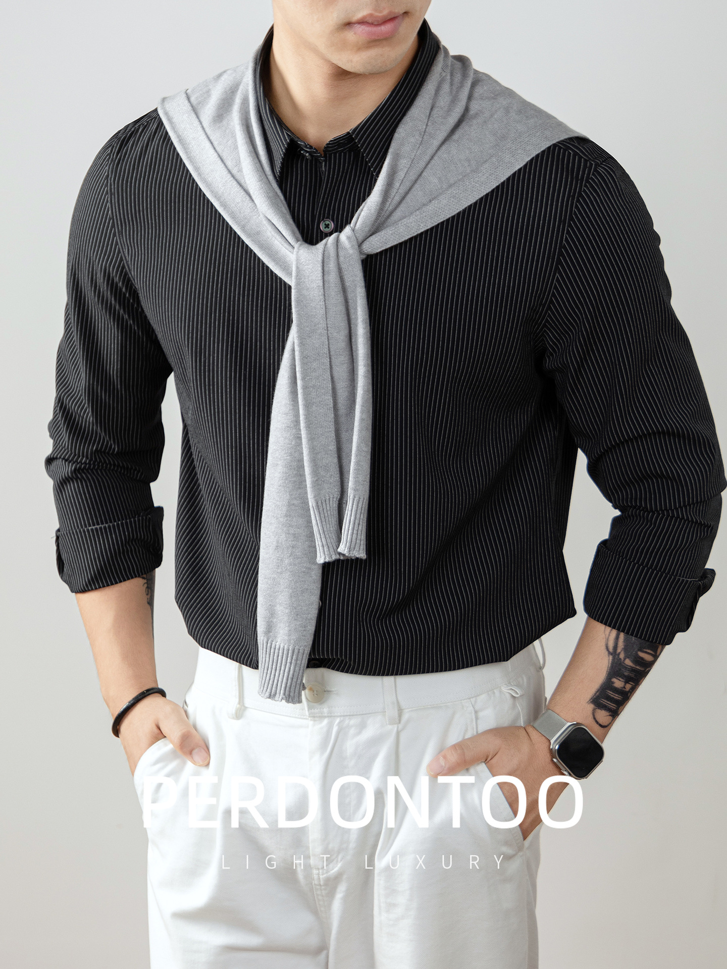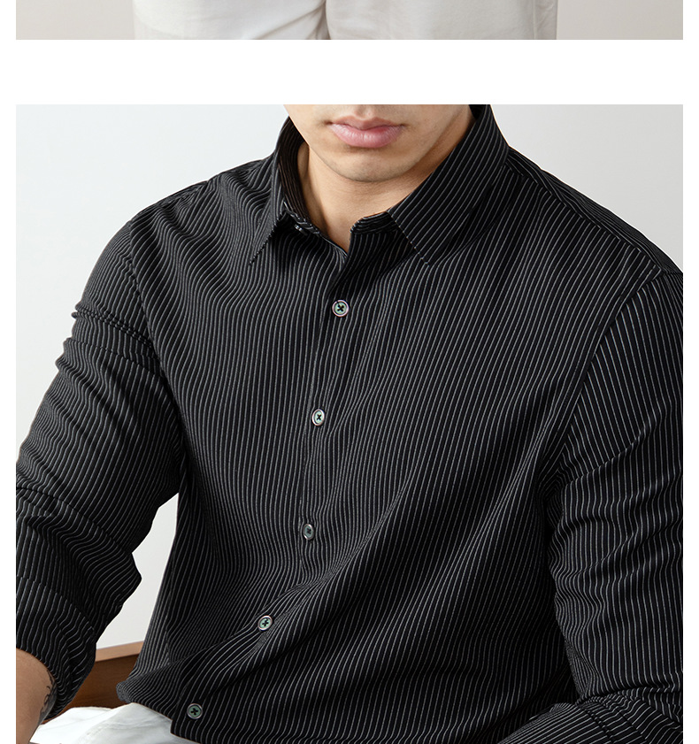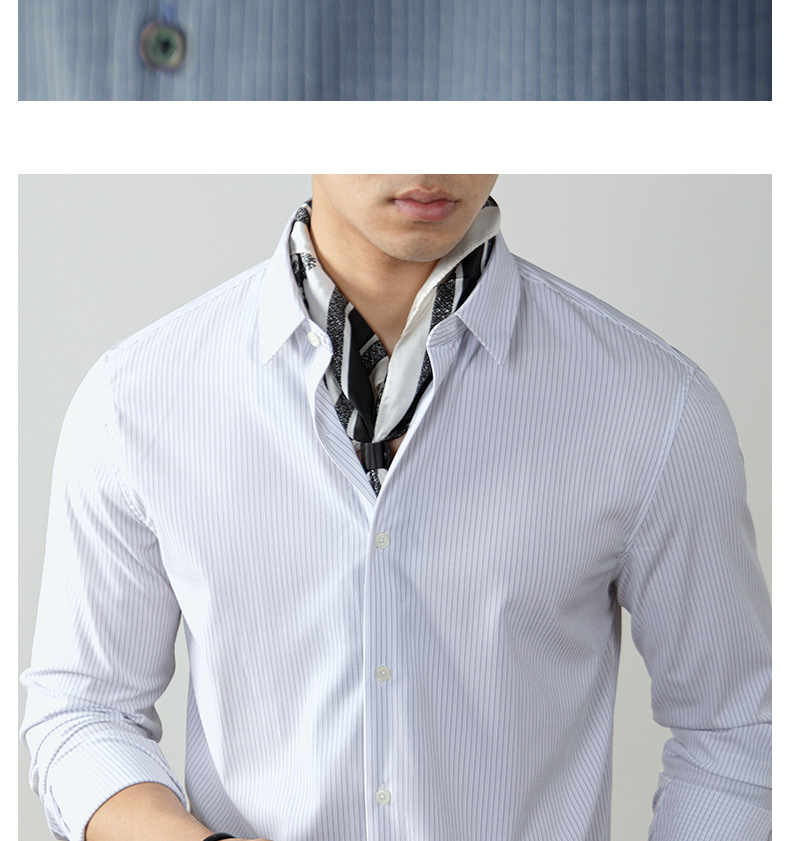 슬림버트 무다림 실크 스트라이프 셔츠 남성용 긴팔 봄 가을 라이트 럭셔리 비즈니스 출퇴근 셔츠스토어 가기