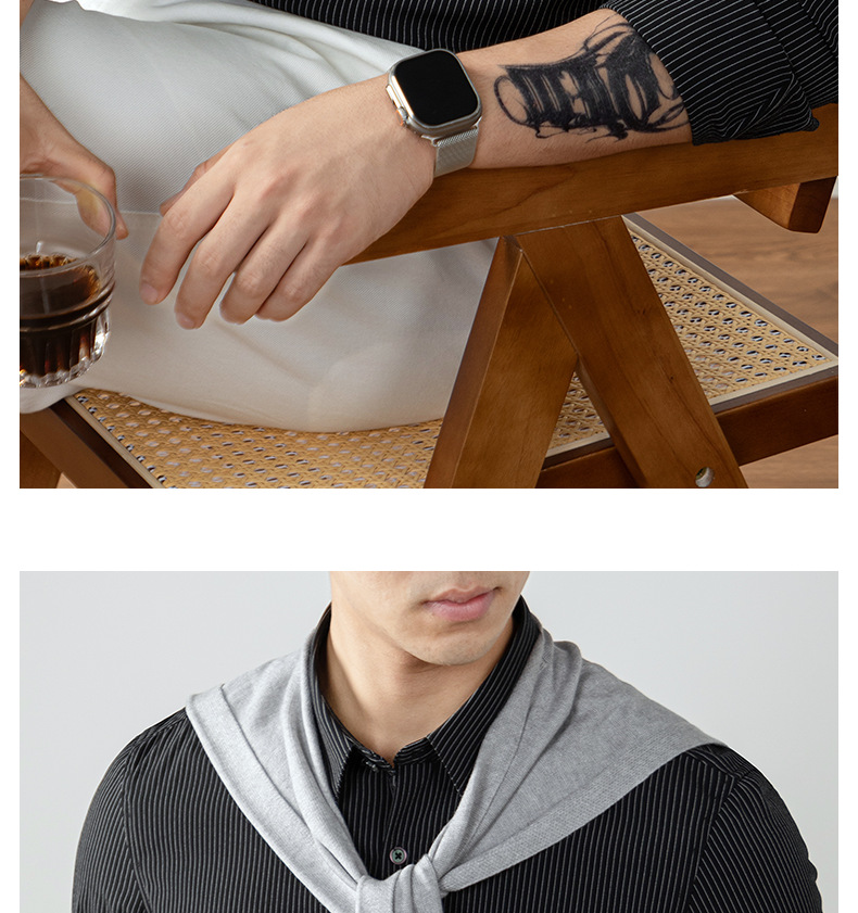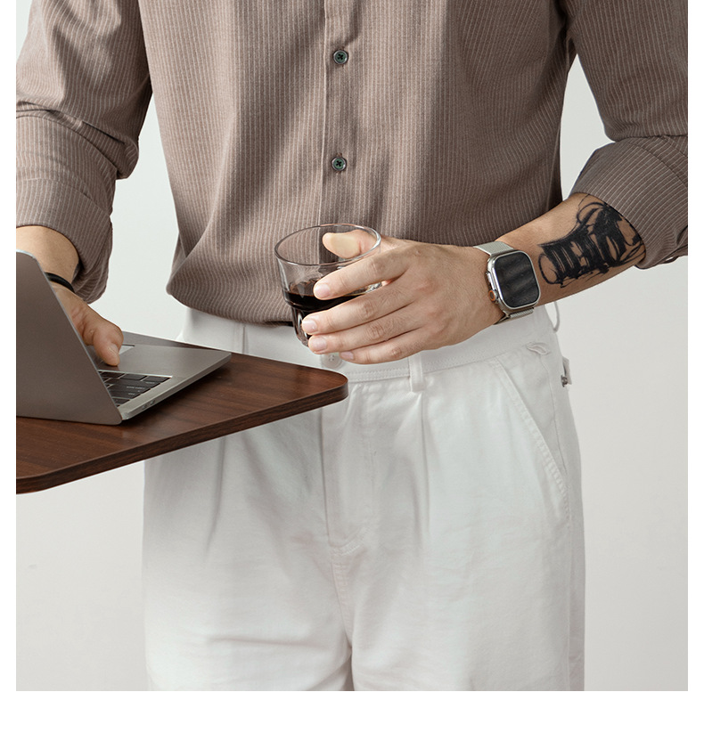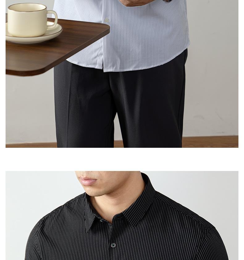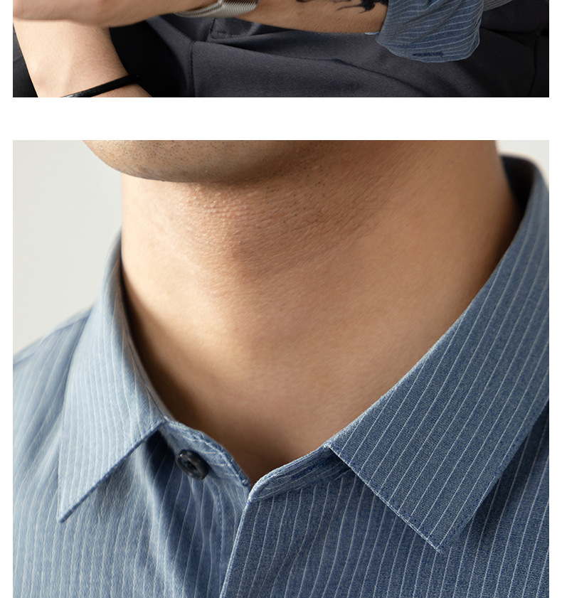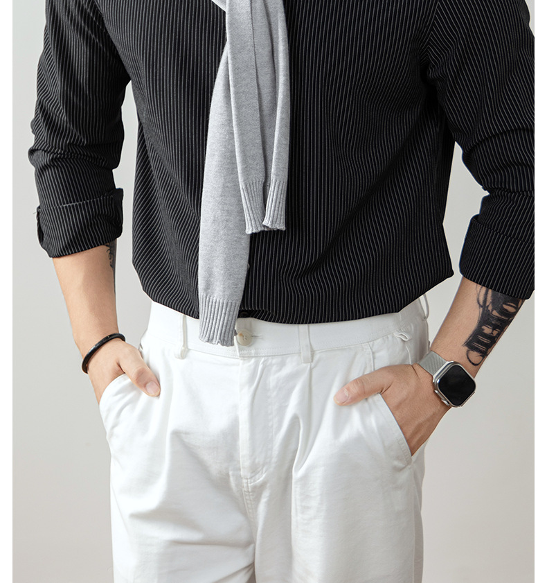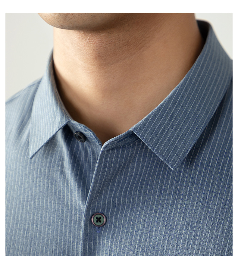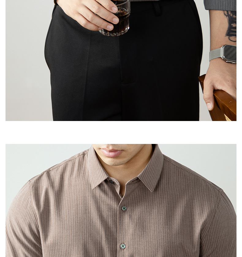 슬림버트 무다림 실크 스트라이프 셔츠 남성용 긴팔 봄 가을 라이트 럭셔리 비즈니스 출퇴근 셔츠스토어 가기