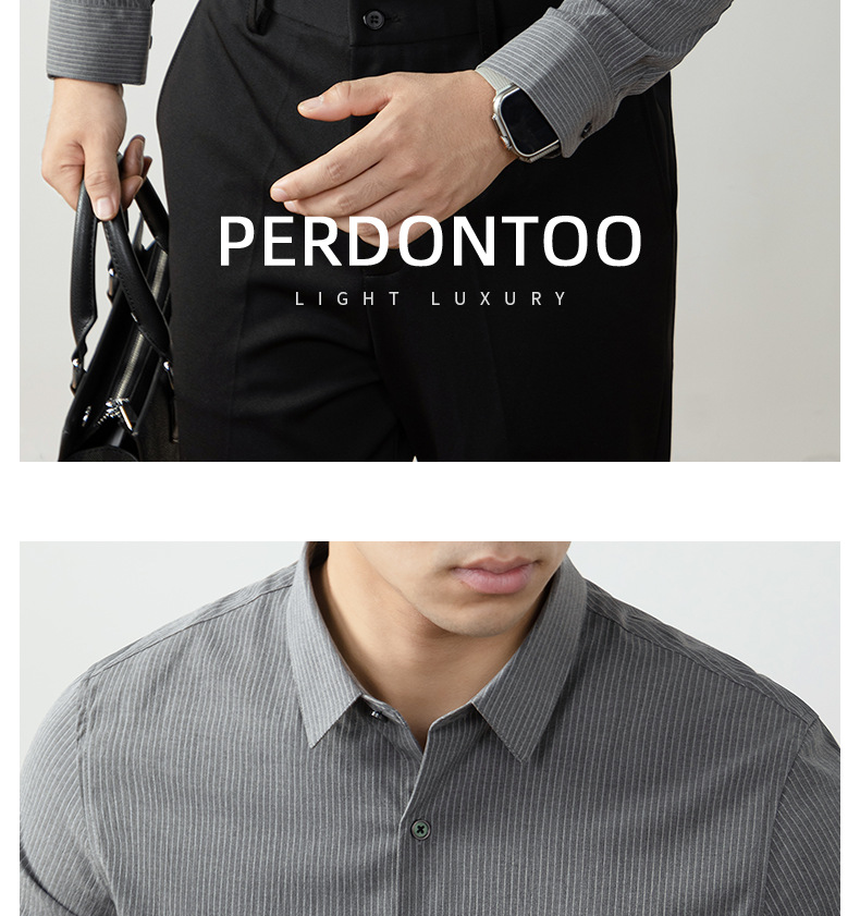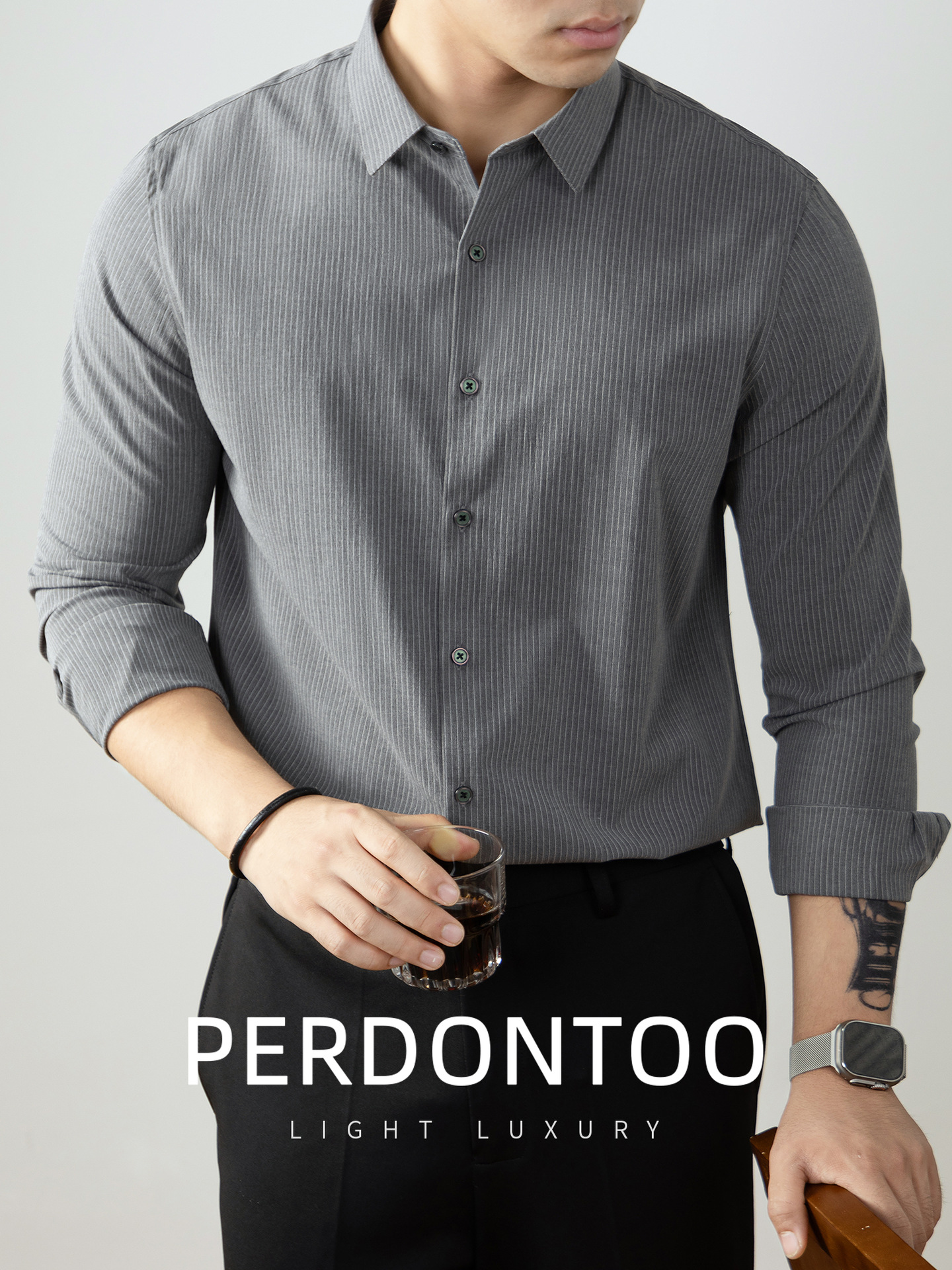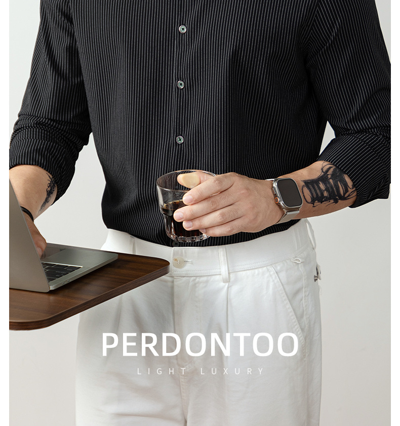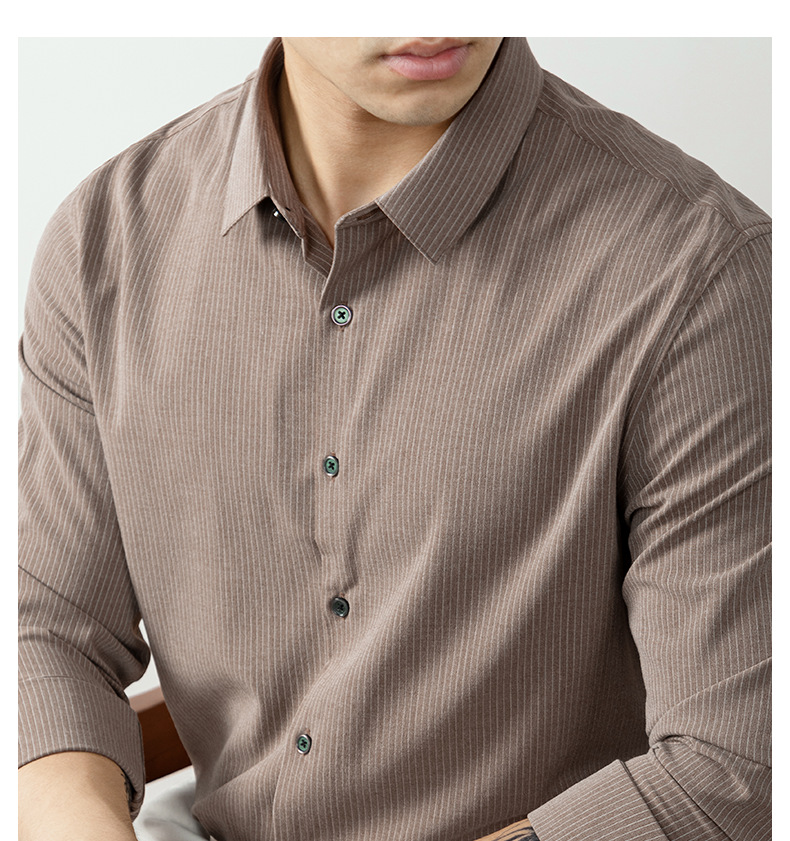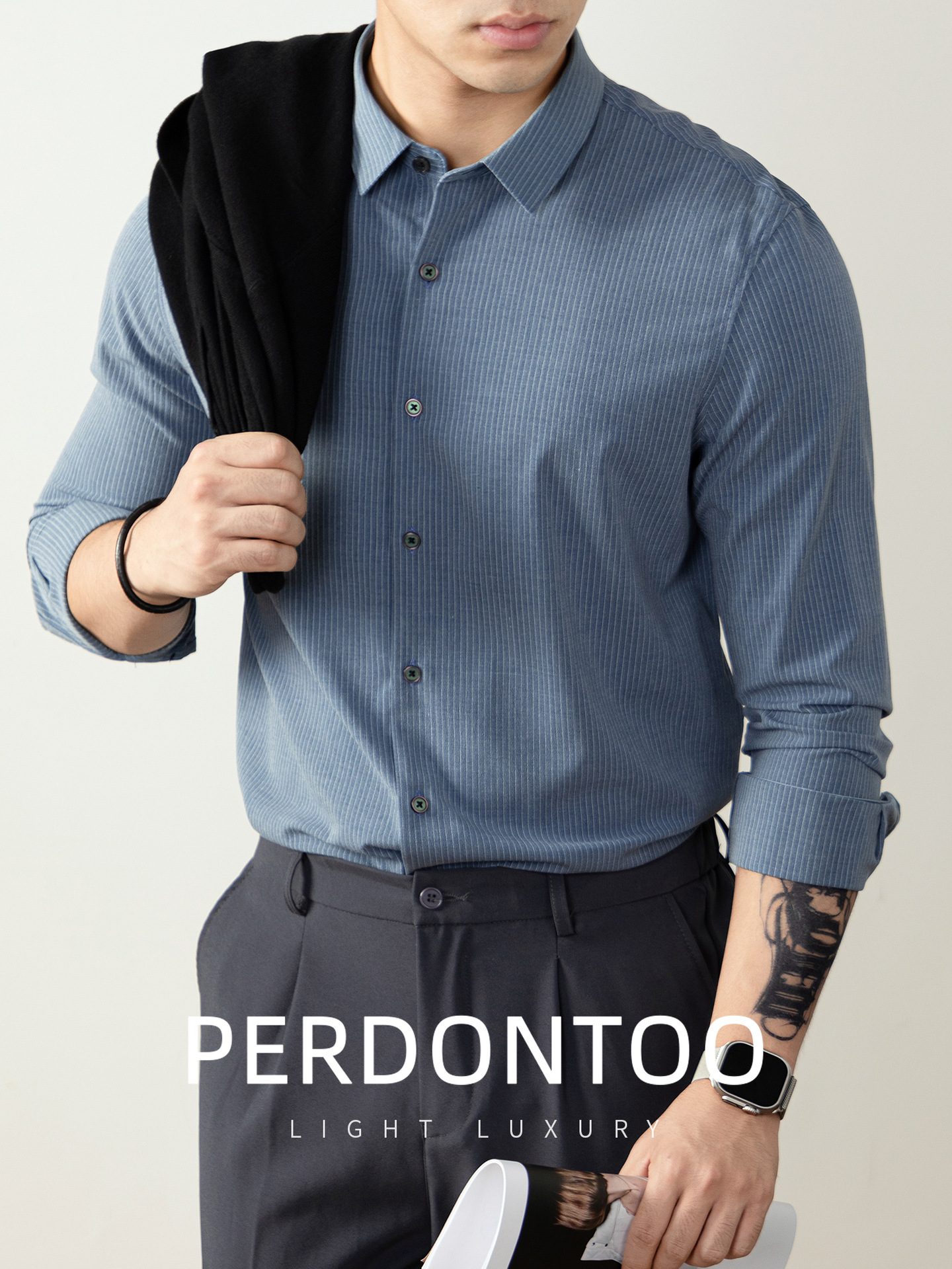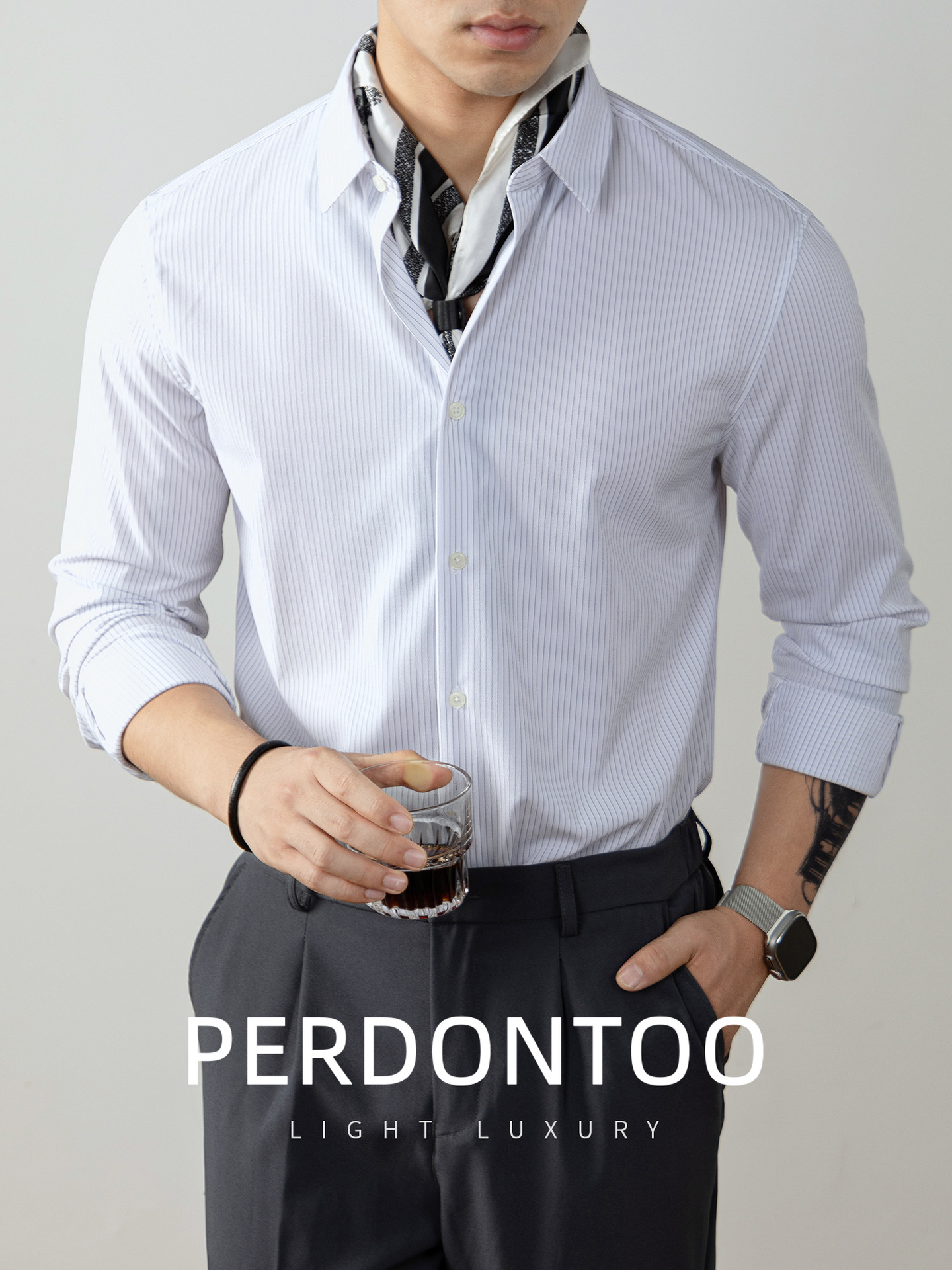 슬림버트 무다림 실크 스트라이프 셔츠 남성용 긴팔 봄 가을 라이트 럭셔리 비즈니스 출퇴근 셔츠