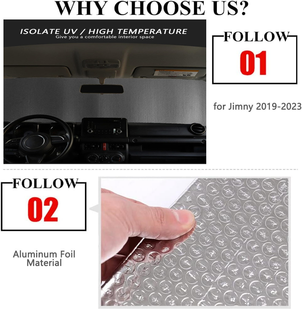 • 防晒 - – 适用于铃木 Jimny JB64 JB74W 2019 2020 2021 2022 挡风玻璃遮阳反射器就像一个太阳能罩一样工作,即使在炎热的夏季天气也能保持汽车内部凉爽。 在下车前将遮阳罩放在挡风玻璃上。 遮阳罩将阳光从车辆上转移出去,大大减少内部的热量。