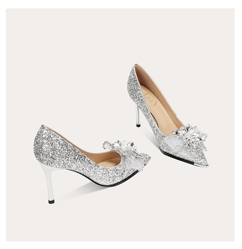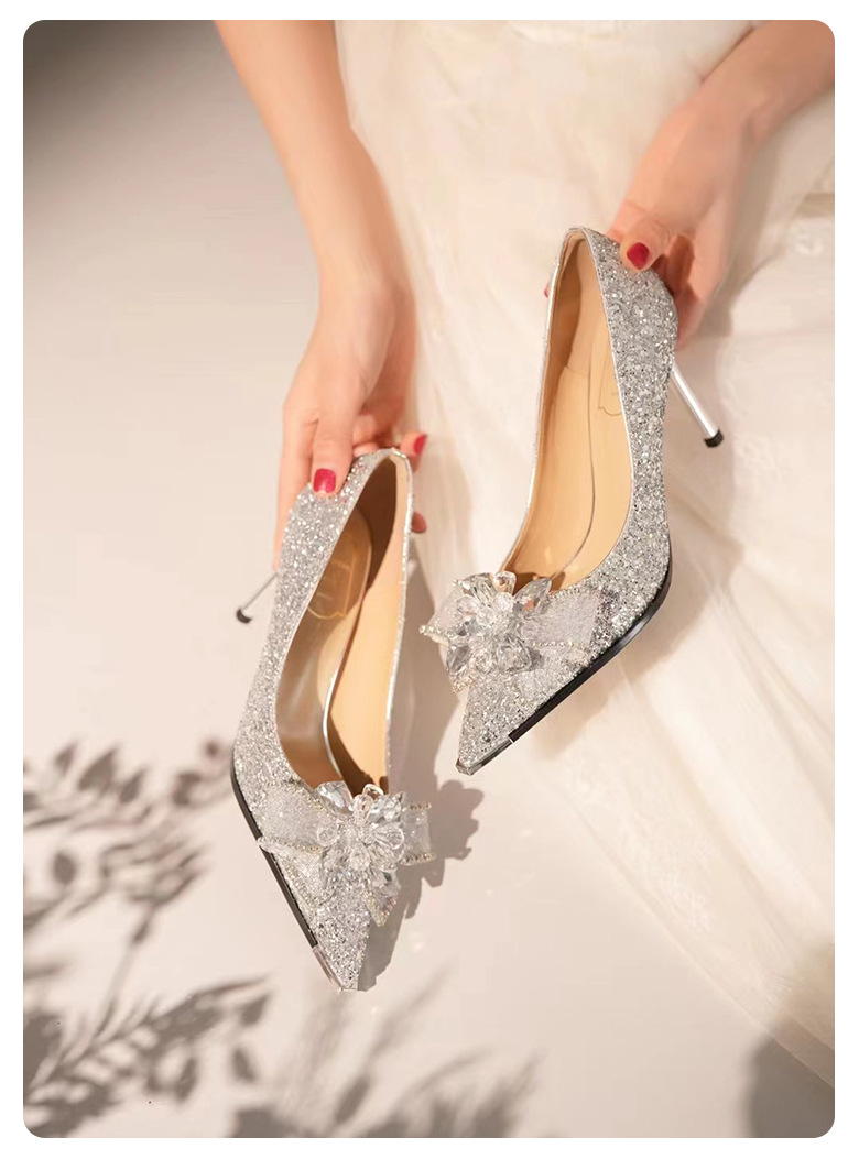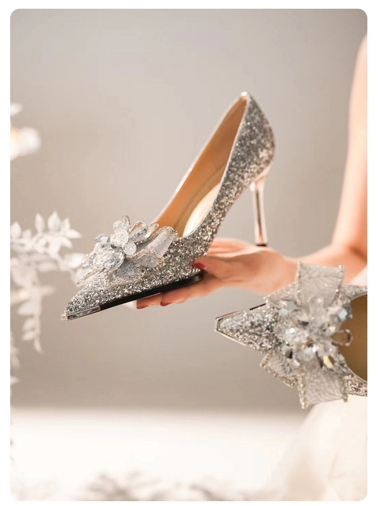 908-11 크리스탈 하이힐 요정 금속 뾰족한 스틸레토 힐 웨딩 슈즈 틈새 고급 연회 원피스 신발 싱글 레이어 신발스토어 가기
