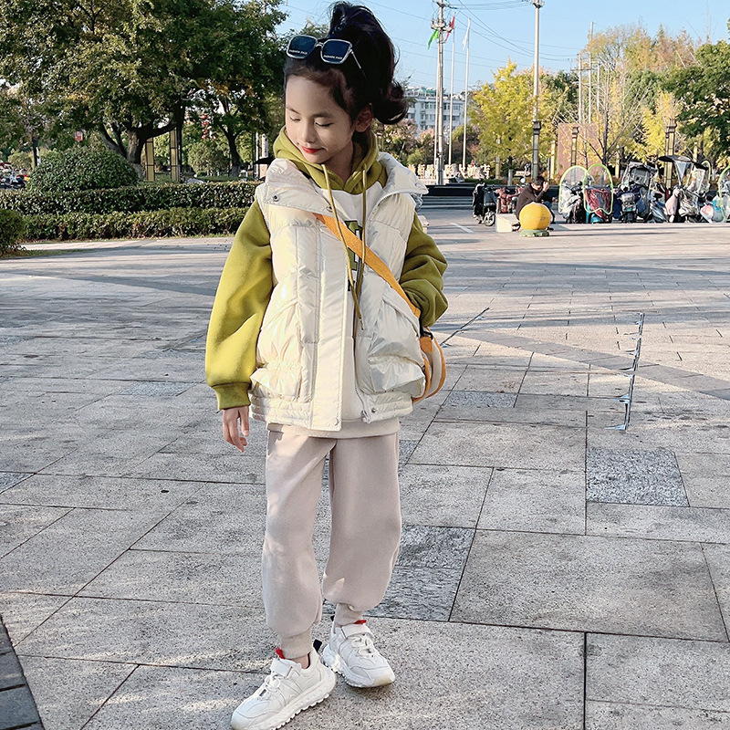 소녀 다운 코튼 조끼 가을과 겨울 2023 새로운 한국식 서양식 학교 유니폼 다용도 두꺼운 일회용 광택 조끼스토어 가기