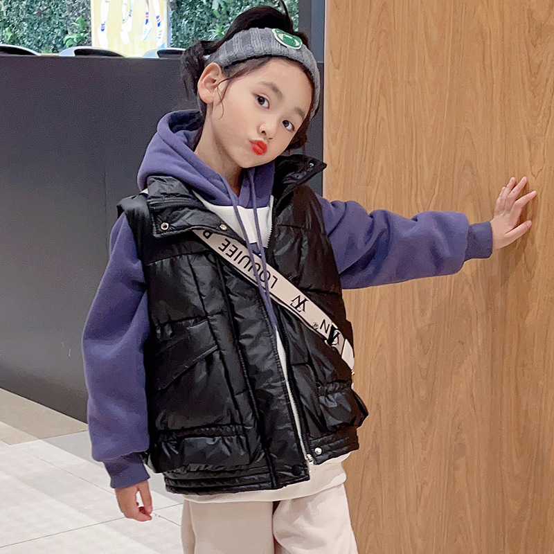 소녀 다운 코튼 조끼 가을과 겨울 2023 새로운 한국식 서양식 학교 유니폼 다용도 두꺼운 일회용 광택 조끼