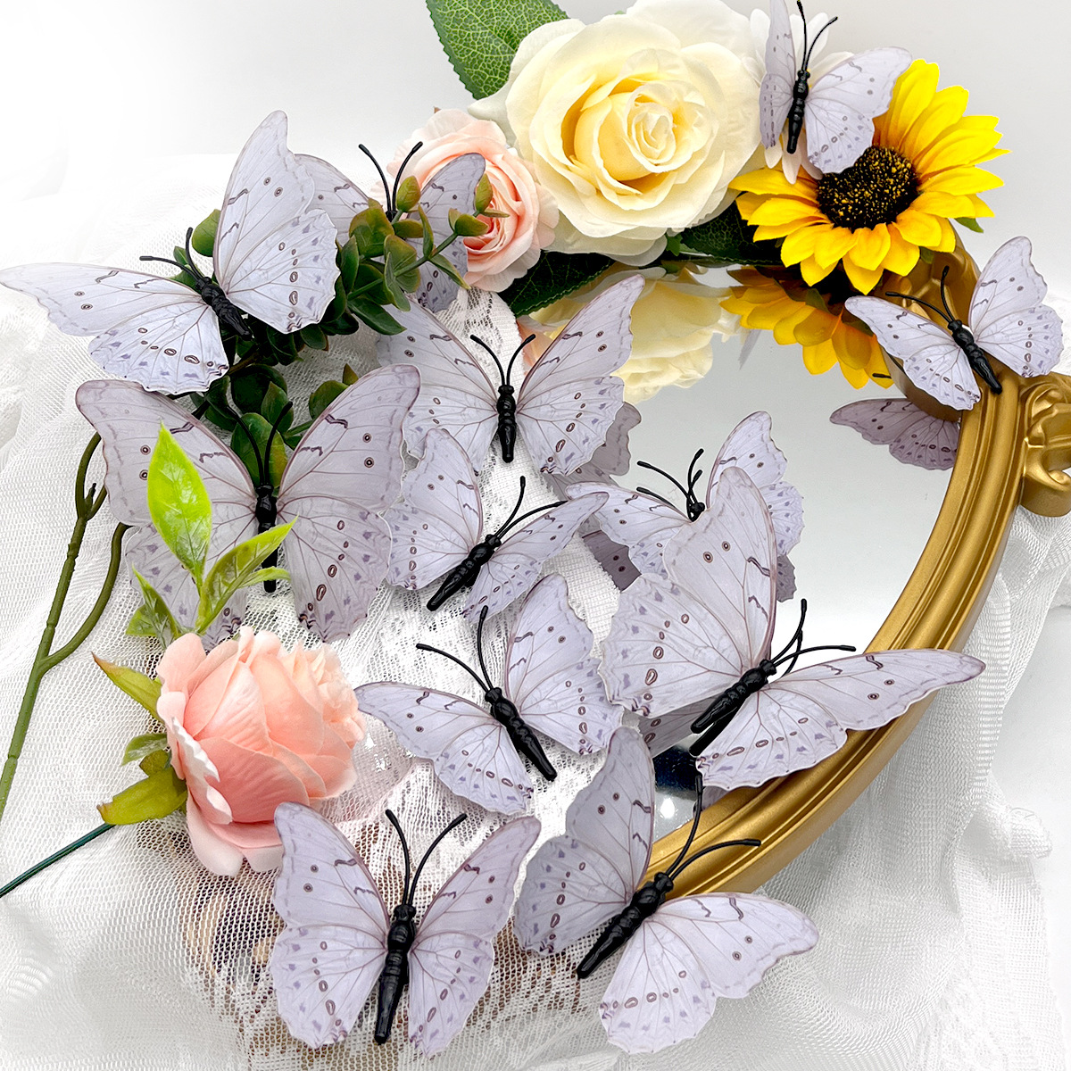PY4006-ZC 3D 나비 스티커 회색 흰색 점박이 나비 12 팩