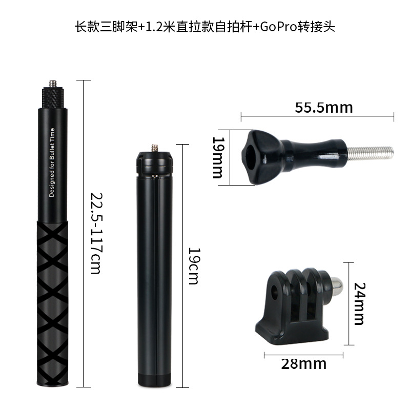 Insta360 ONE X3/RS 총알 시간 스텔스 스틱 GoPro 액션 카메라 스트레이트 풀 셀카 스틱