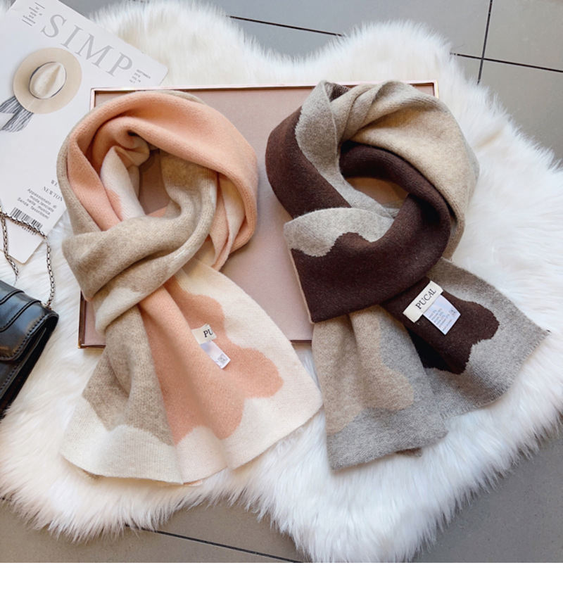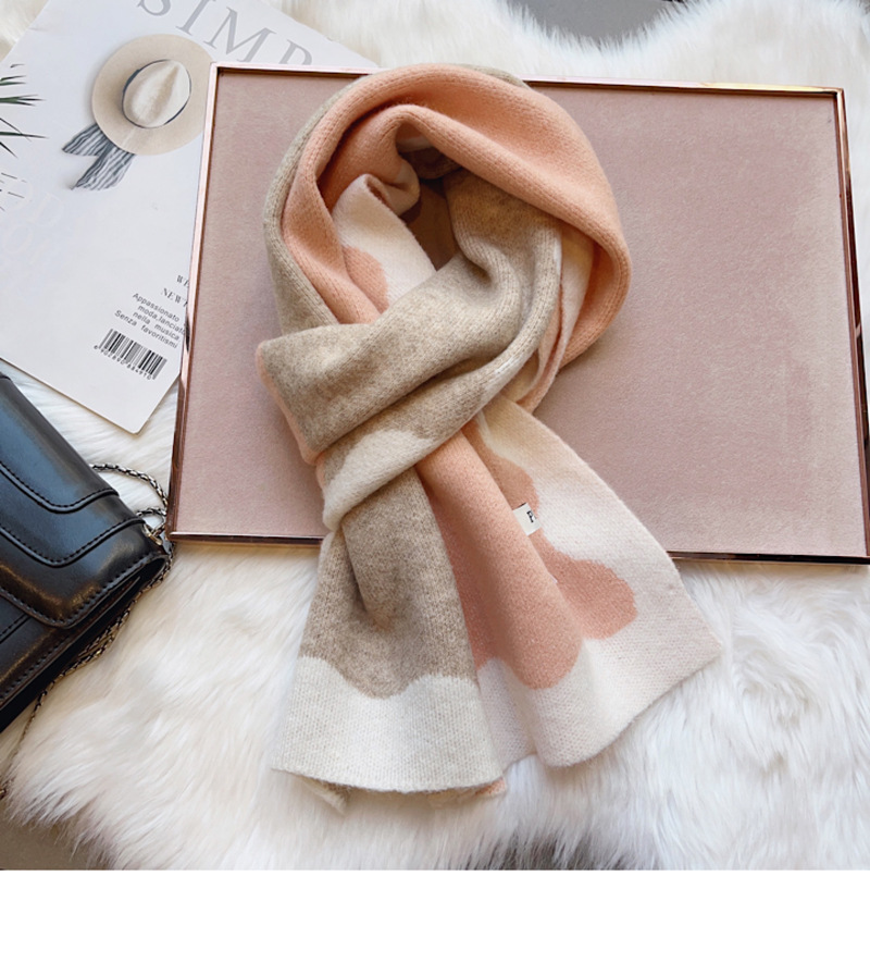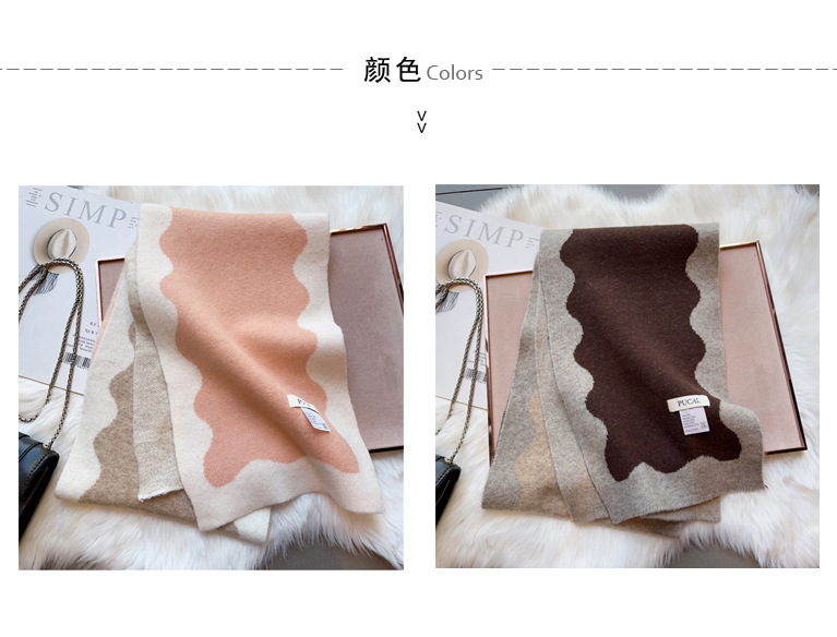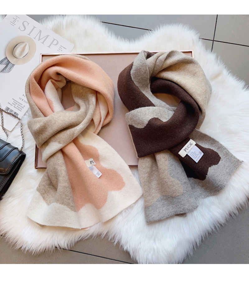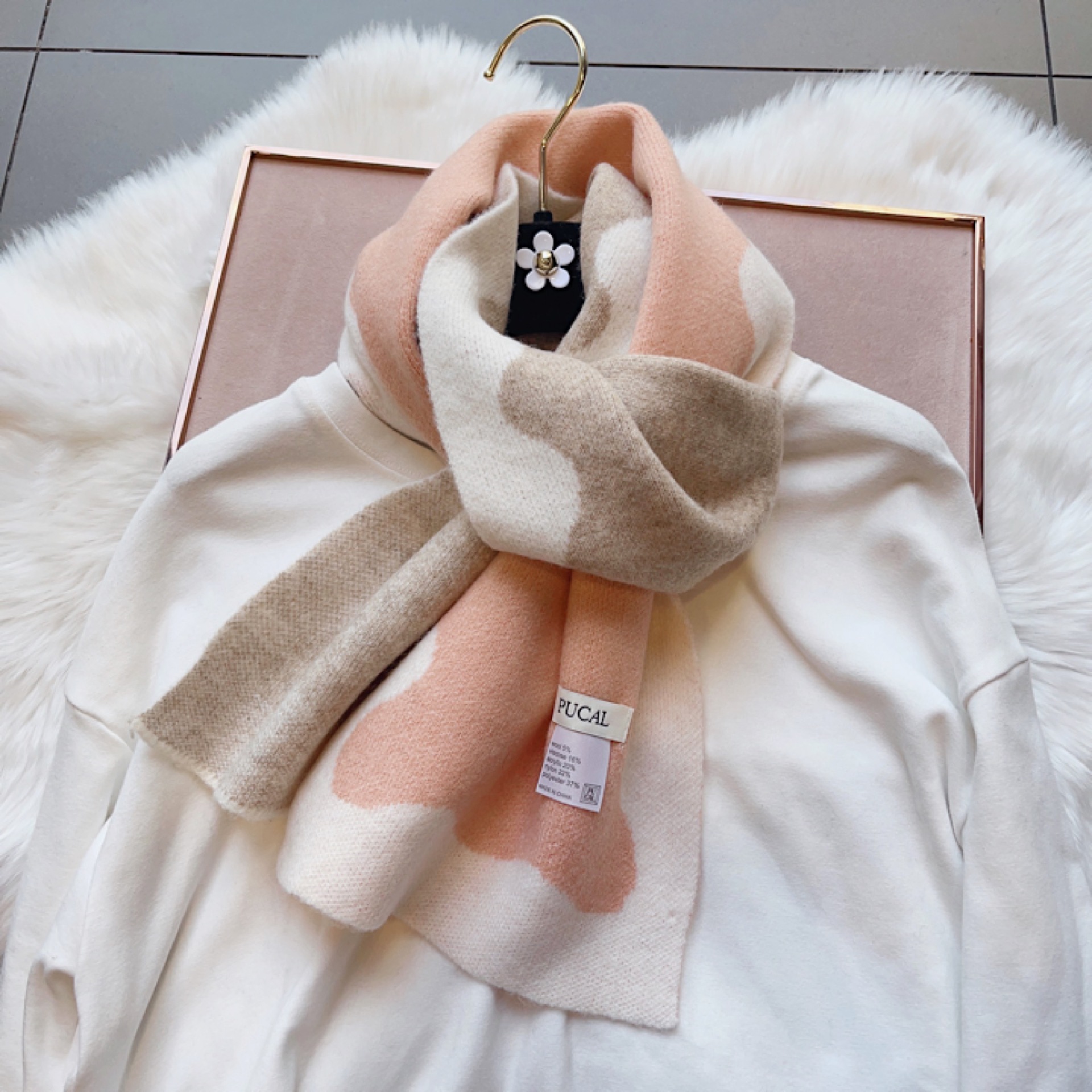 양모와 함께! 부드러운 흰색 색상 일치 양모 따뜻한 스카프 여성의 귀여운 학생 목 두꺼운 올매치 가을과 겨울스토어 가기