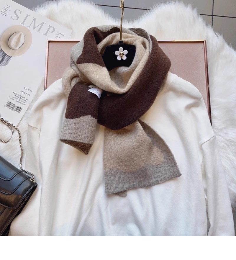 含羊毛!温柔显白拼色毛线保暖围巾女学生围脖加厚百搭长款冬季韩