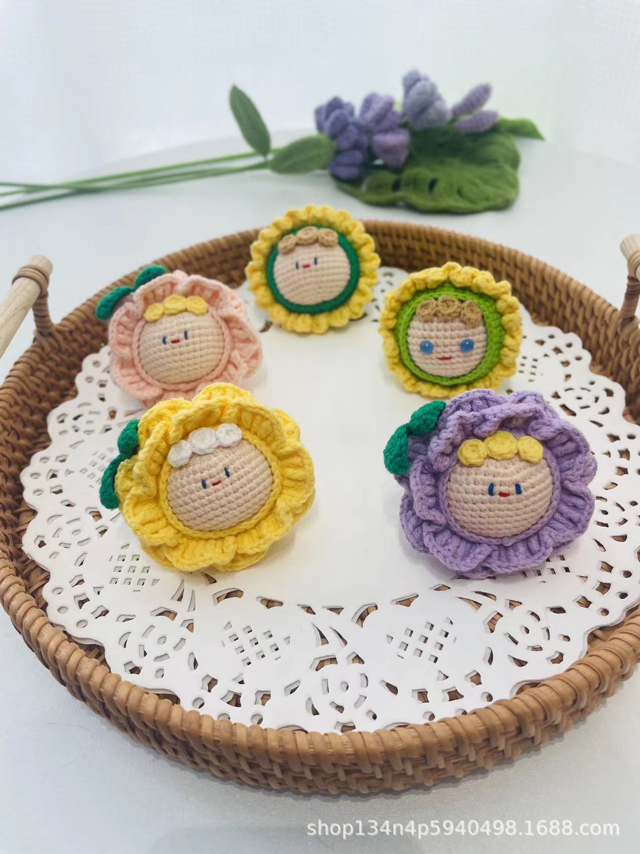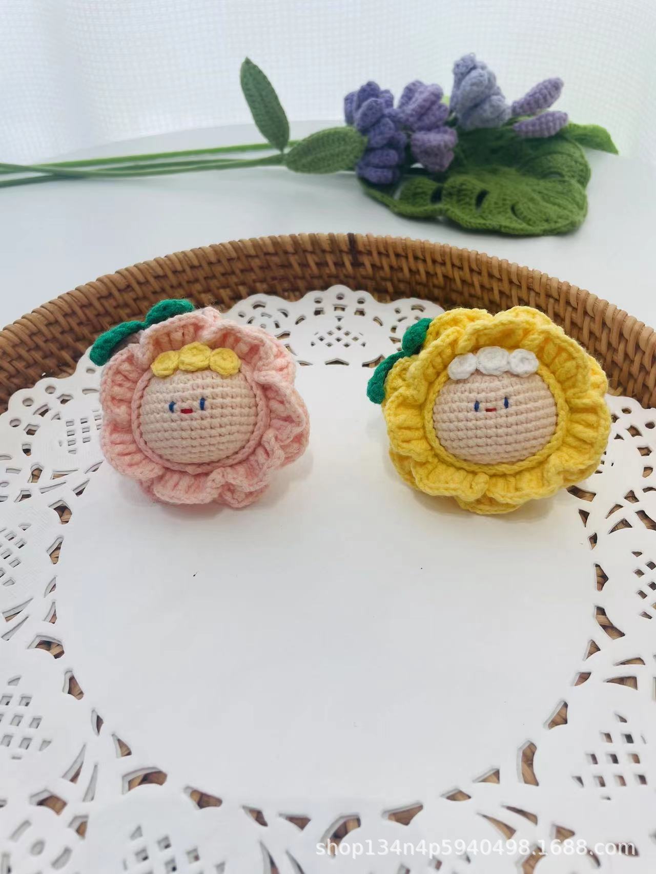 수제 양모 뜨개질 귀여운 인형 해바라기 만두 짠 녹색 양파 키 체인 펜던트 펜던트 펜던트 펜던트