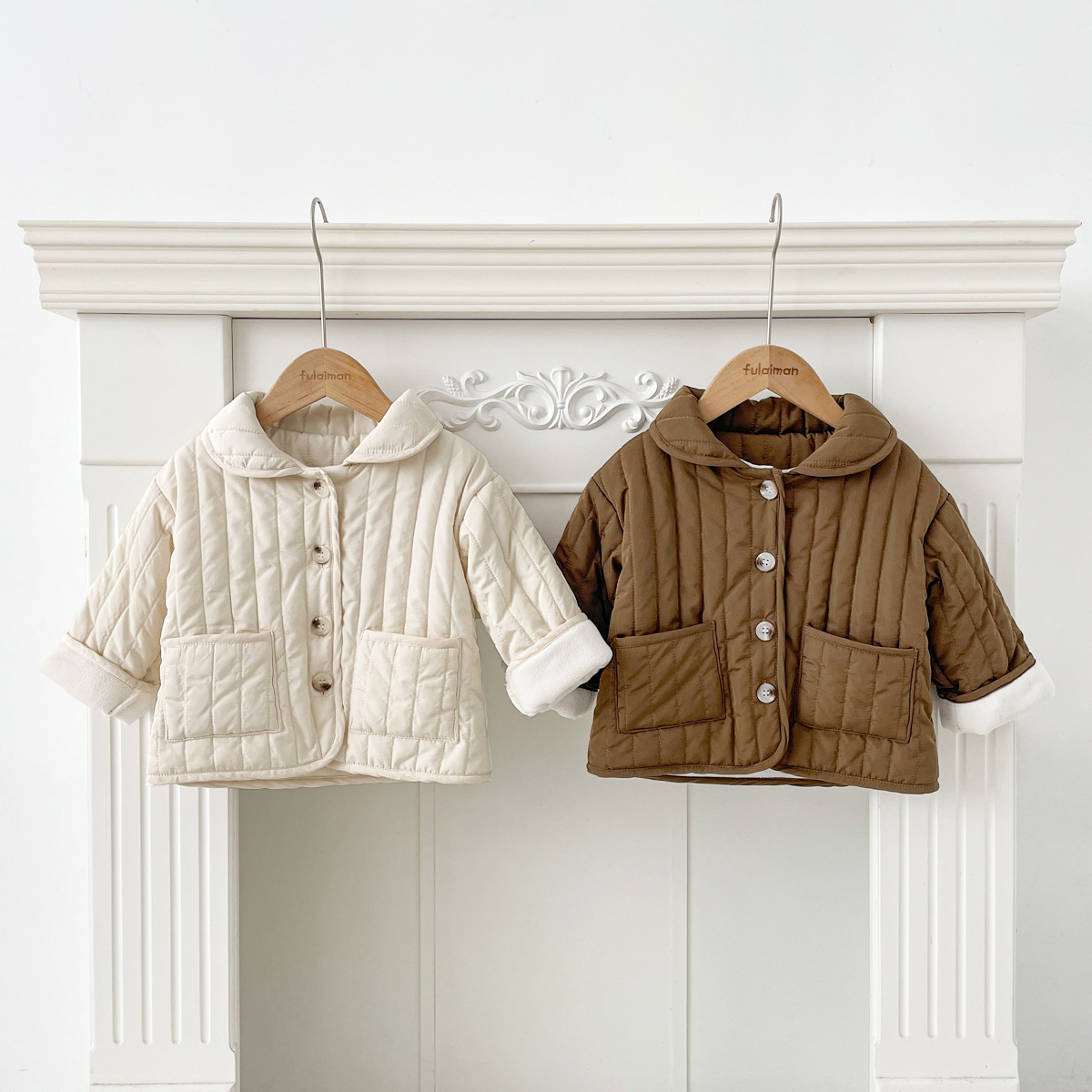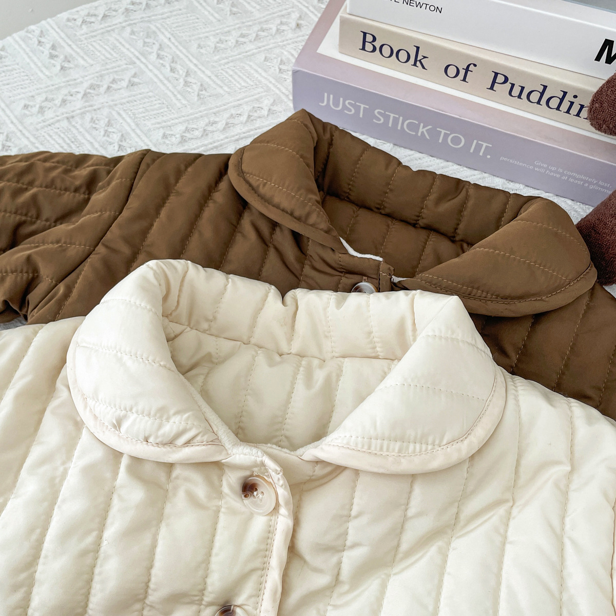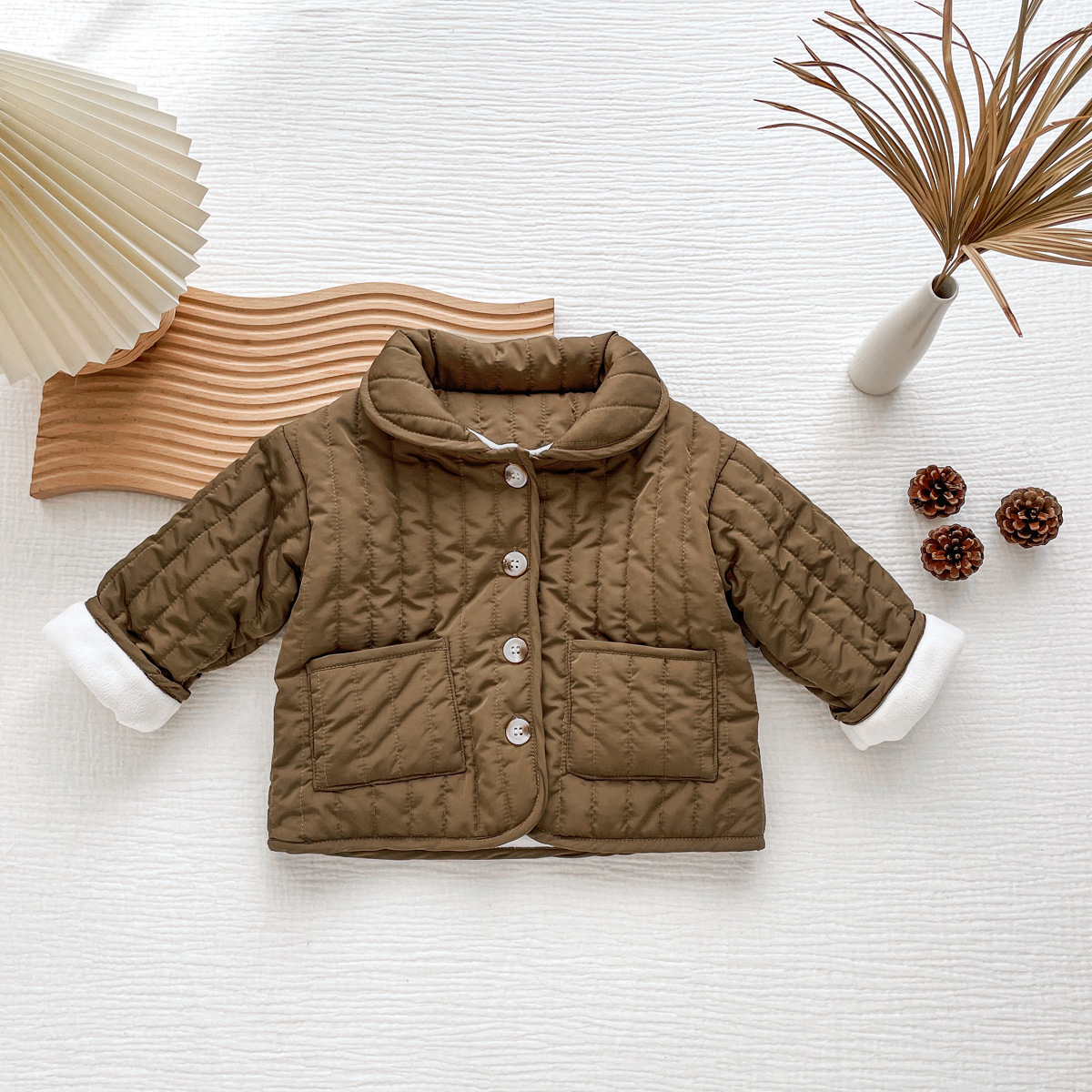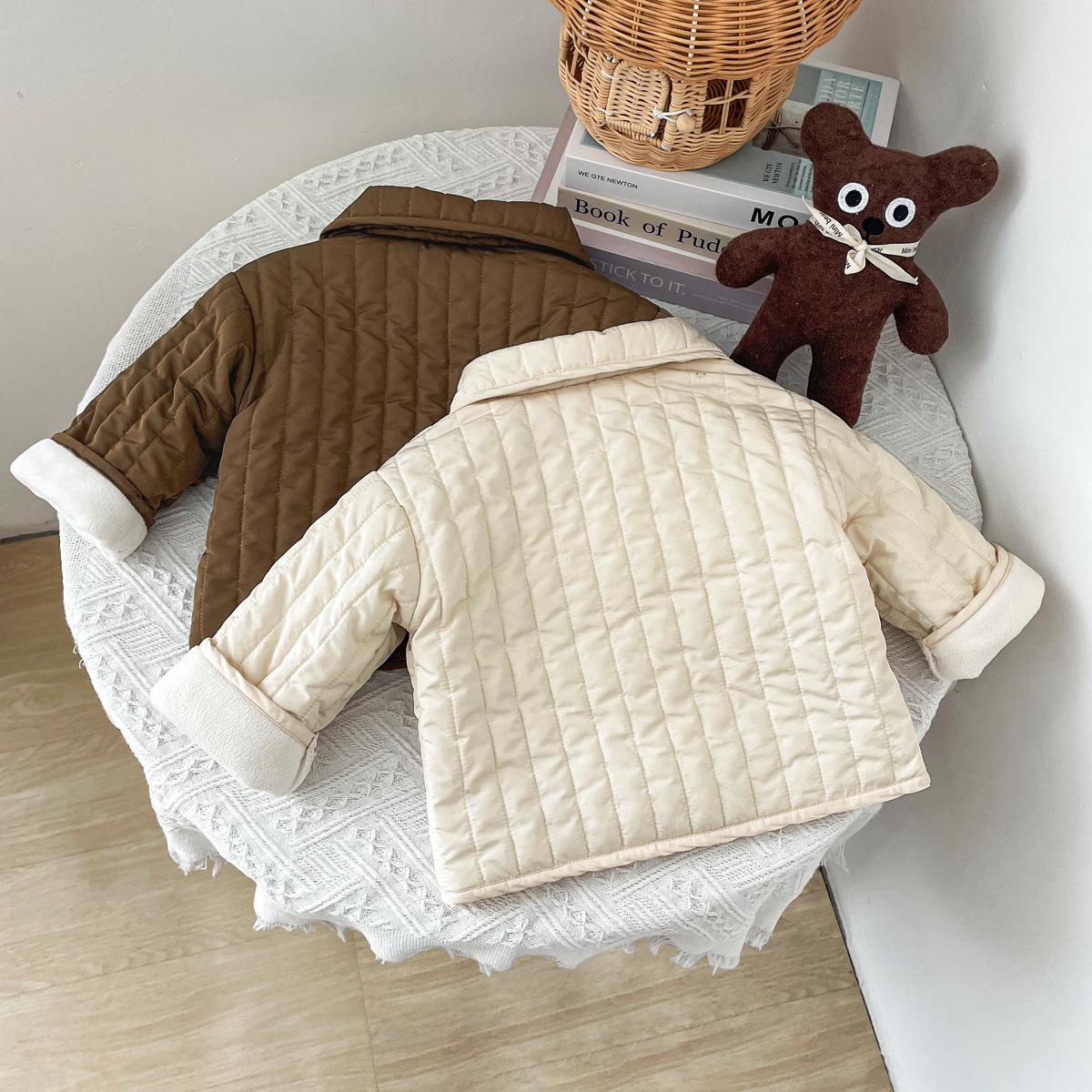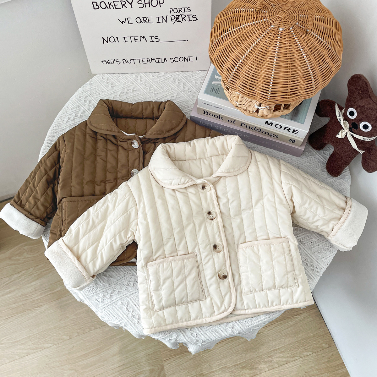 한국 스타일의 가을과 겨울 아기 기모 면화 패딩 코트 2023 어린이의 단색 옷깃이 두껍게 따뜻한면 패딩 코트 패션스토어 가기