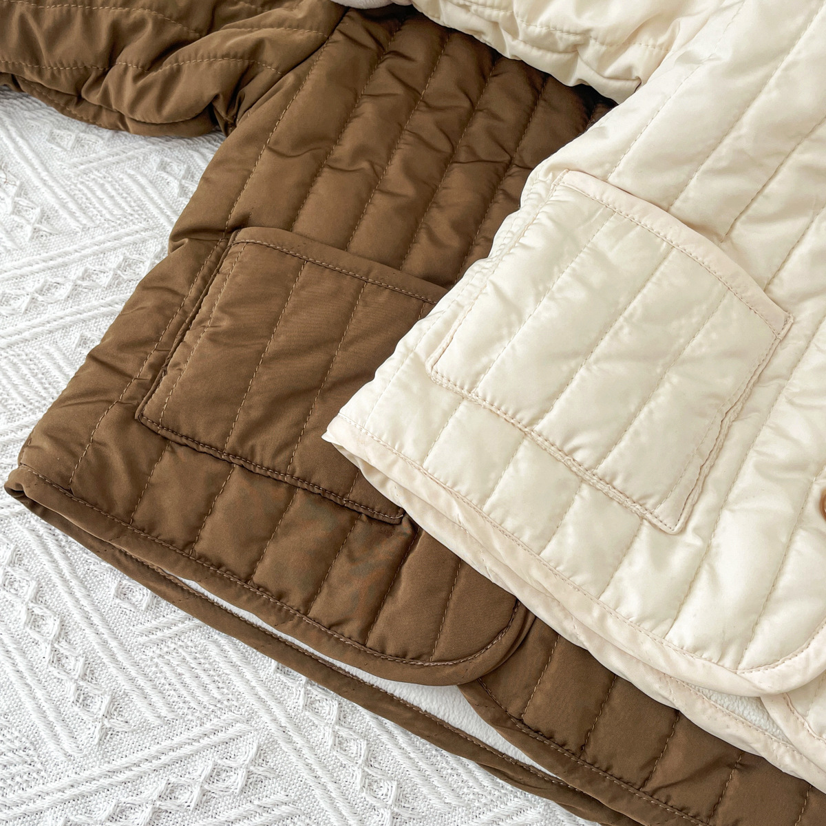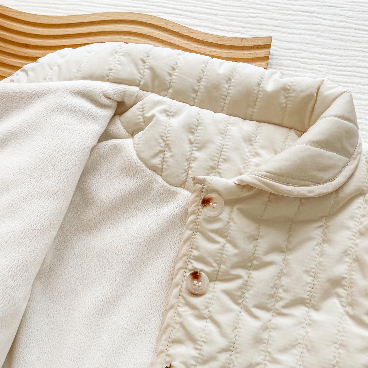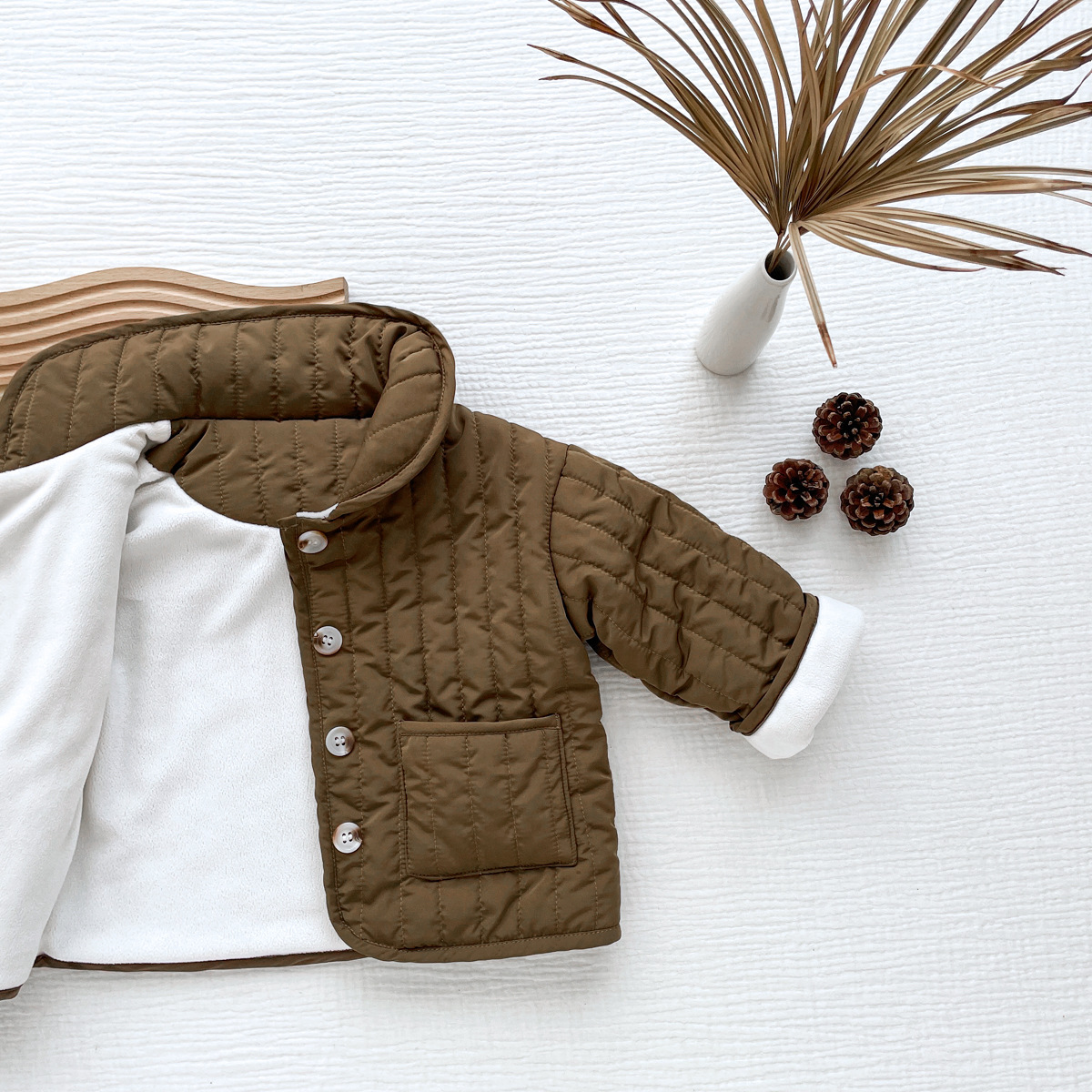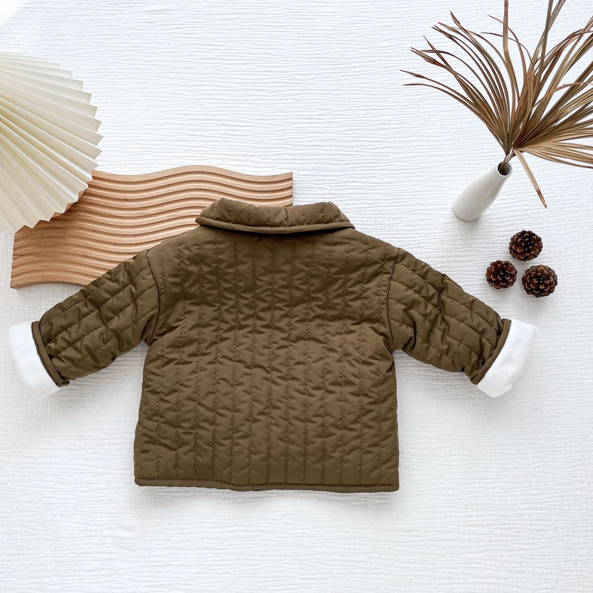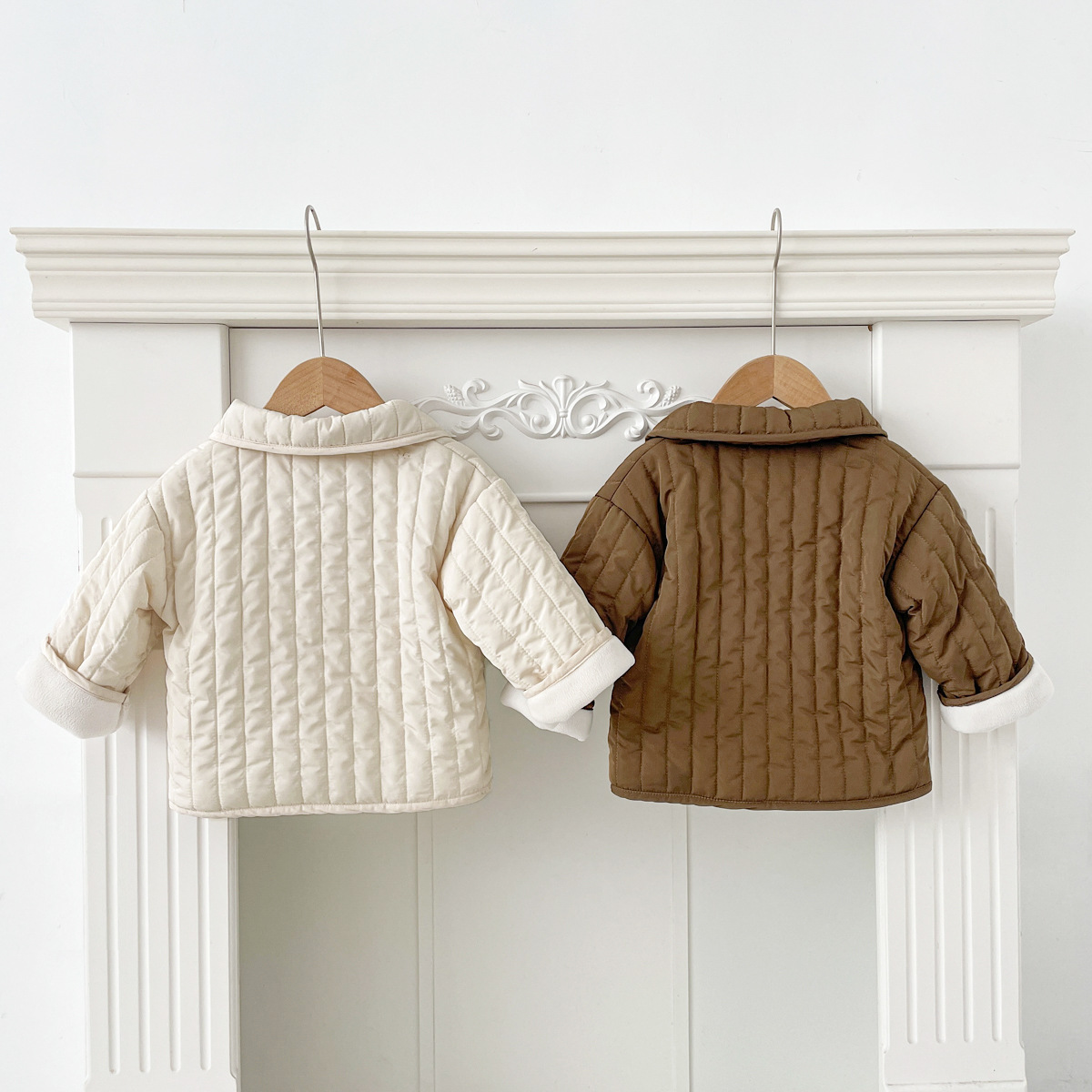 한국 스타일의 가을과 겨울 아기 기모 면화 패딩 코트 2023 어린이의 단색 옷깃이 두껍게 따뜻한면 패딩 코트 패션스토어 가기