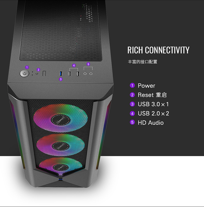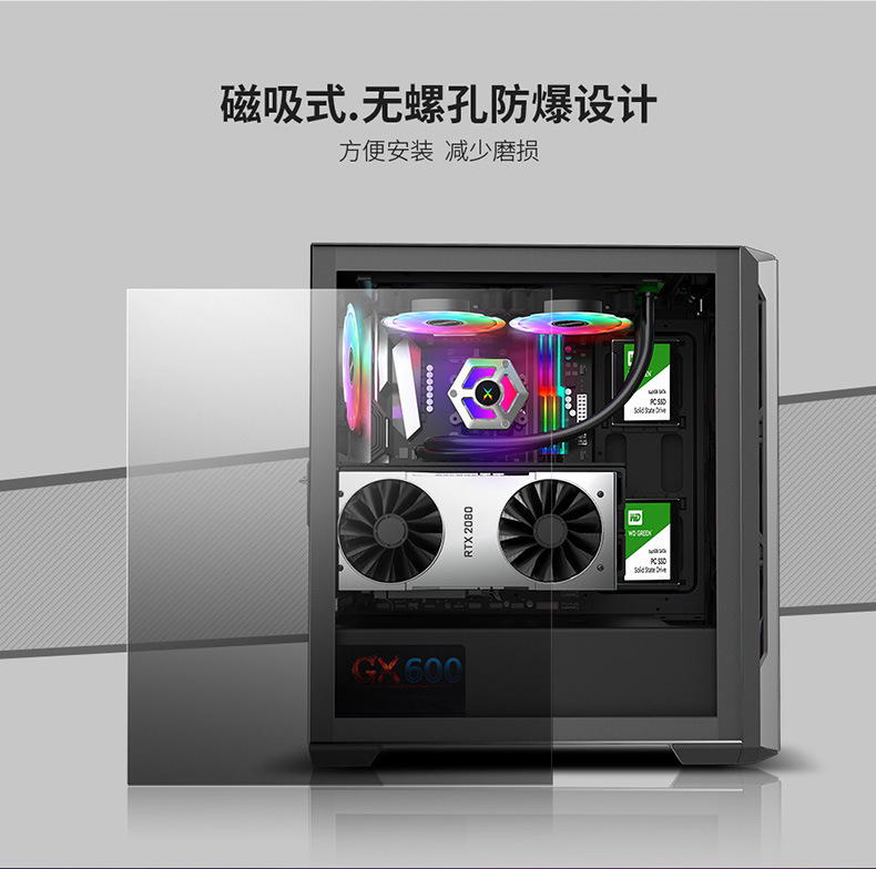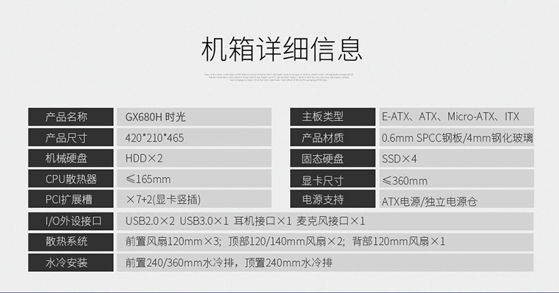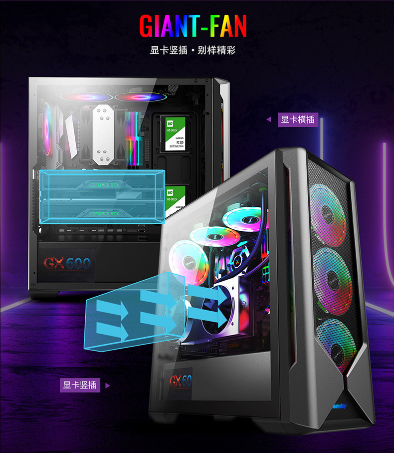 Hangjia GX680H 시간 e 스포츠 게임 섀시 강화 유리 측면 투명 수직 그래픽 카드 E-ATX 데스크탑 섀시스토어 가기