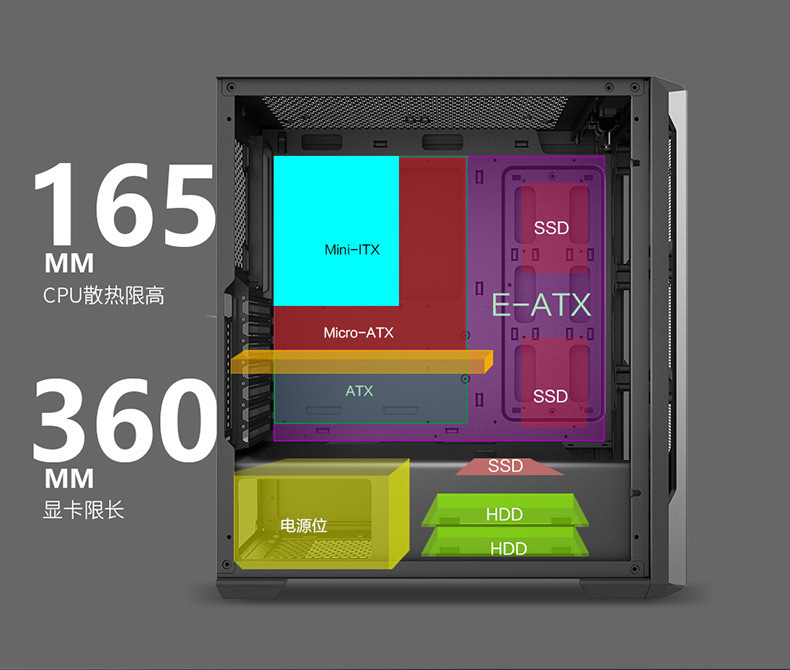 Hangjia GX680H 시간 e 스포츠 게임 섀시 강화 유리 측면 투명 수직 그래픽 카드 E-ATX 데스크탑 섀시