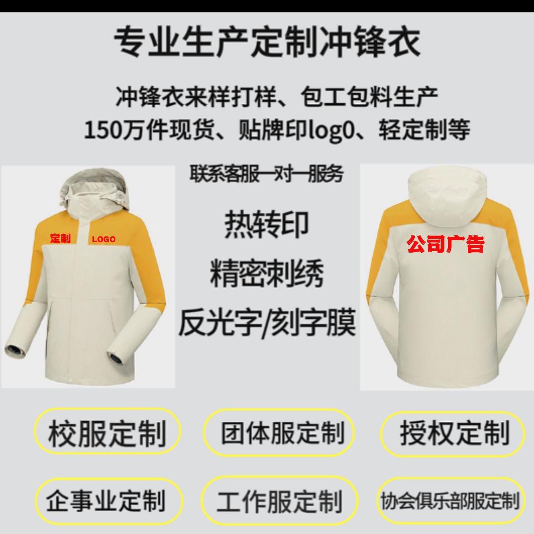 亲 你好 我们支持一件定制.印LOGO .印图.印字.这款冲锋衣有单夹克. 有三合一加摇粒绒的 请看细节图 如不清楚可以联系客服 谢谢