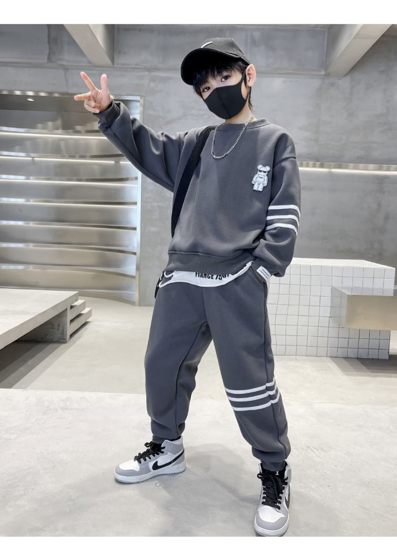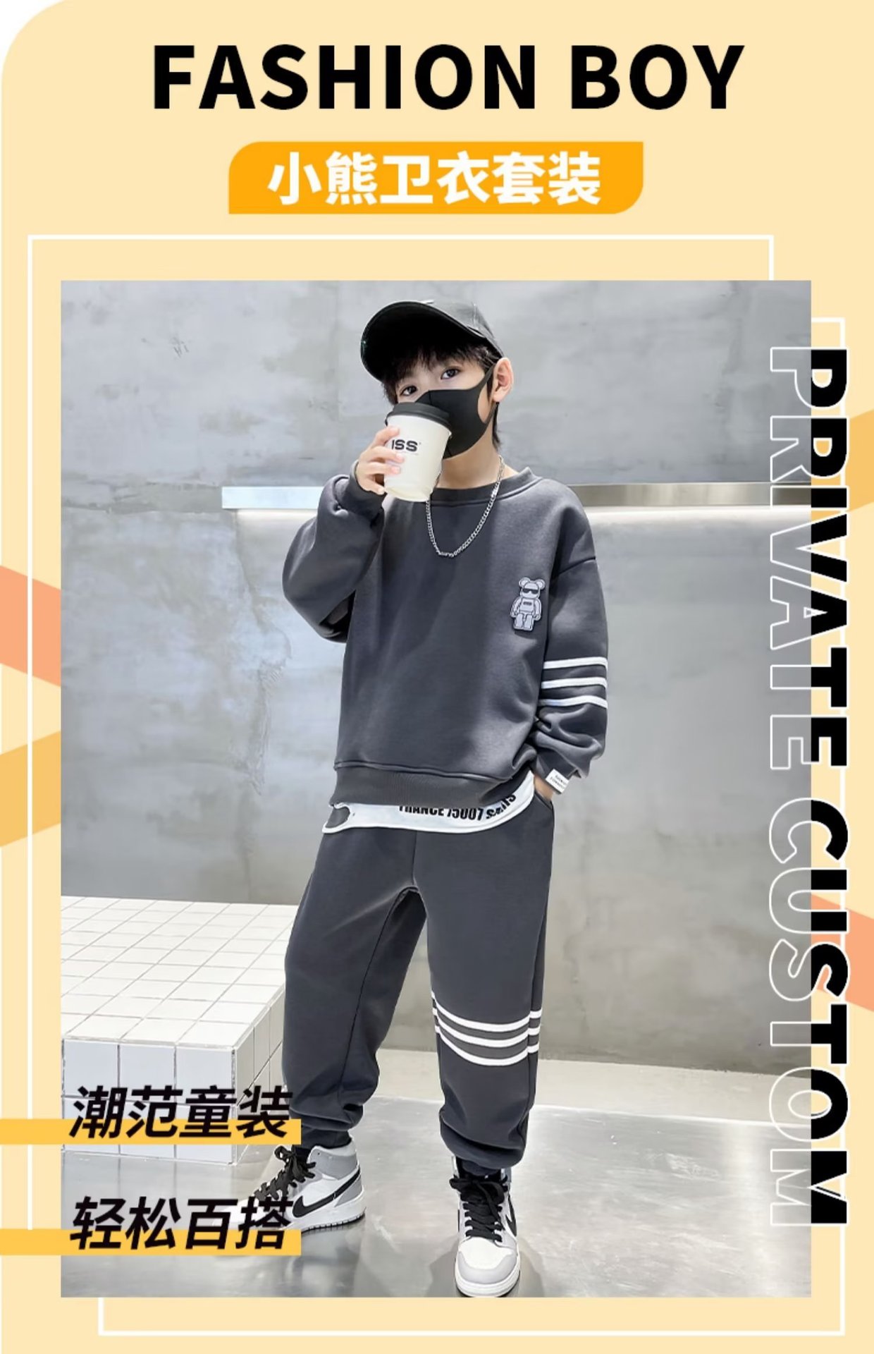 아동복 소년 가을 의류 세트 2023 가을, 겨울 새로운 스타일 중대형 어린이 소년 곰 운동복 아동 의류 투피스 세트스토어 가기