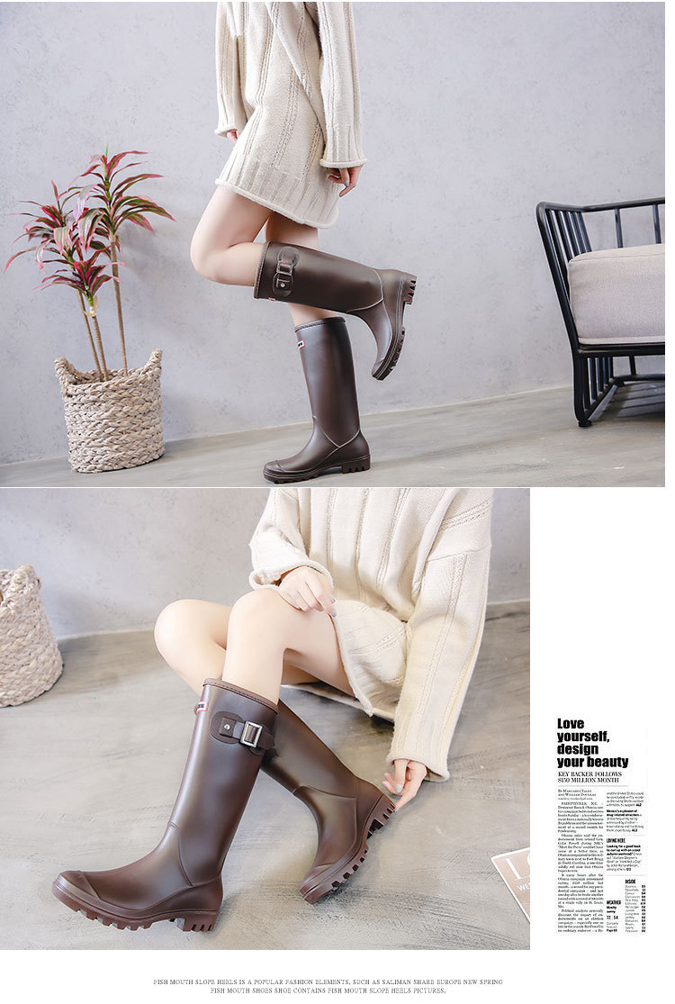 국경 간 패션 하이힐 비신발 여성 한국식 올매치 야외 방수 신발 두꺼운 밑창 내마모성 미끄럼 방지 주방 고무 신발 여성스토어 가기