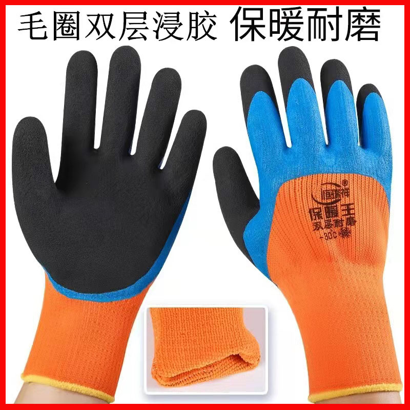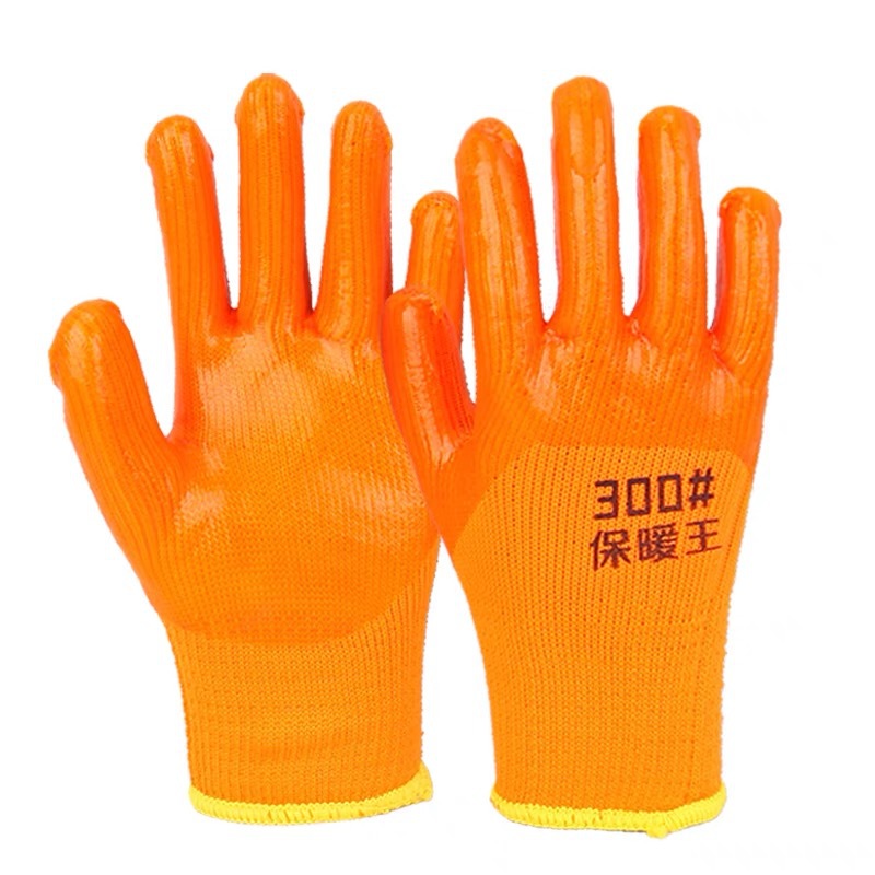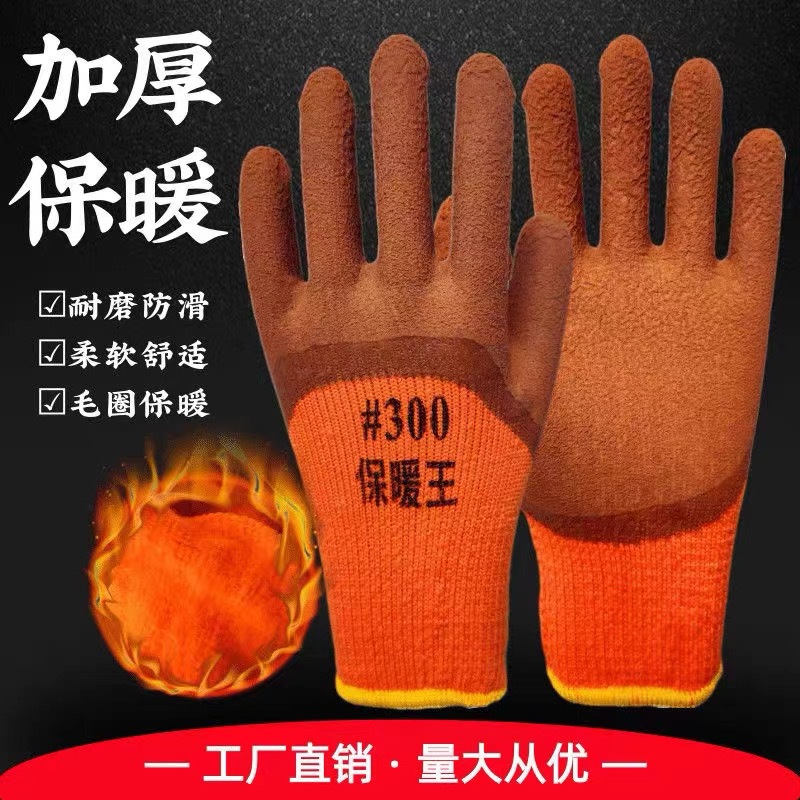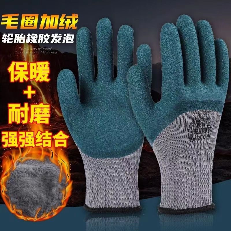 300 # 겨울 찬고에서 작업하는 남성용 고무가 있는 따뜻하고 내마모성이 뛰어난 벨벳 및 두꺼운 노동 보호 장갑, 방수 및 미끄럼 방지스토어 가기