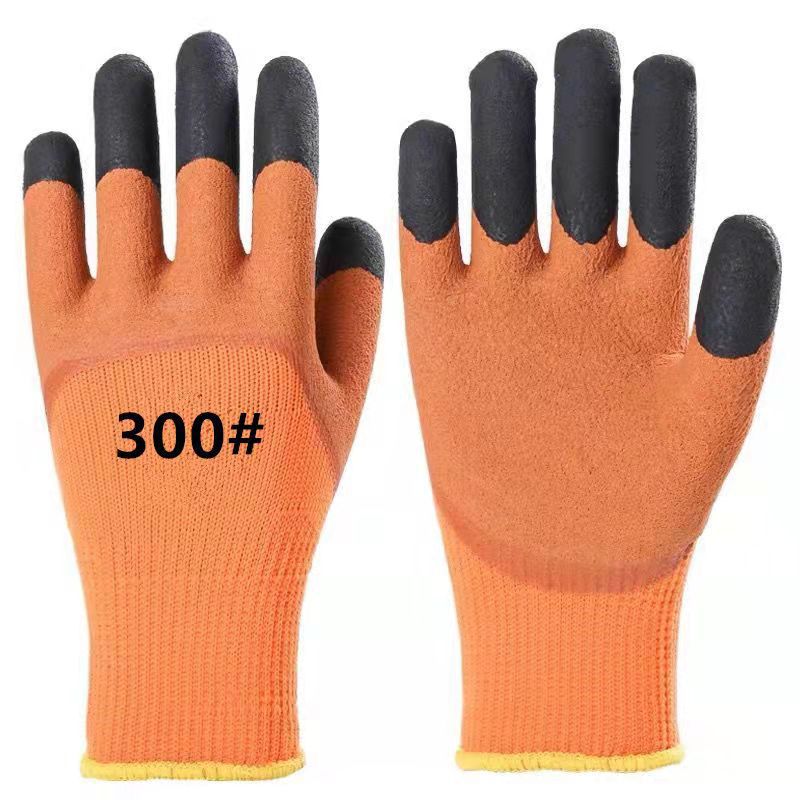 300 # 겨울 찬고에서 작업하는 남성용 고무가 있는 따뜻하고 내마모성이 뛰어난 벨벳 및 두꺼운 노동 보호 장갑, 방수 및 미끄럼 방지