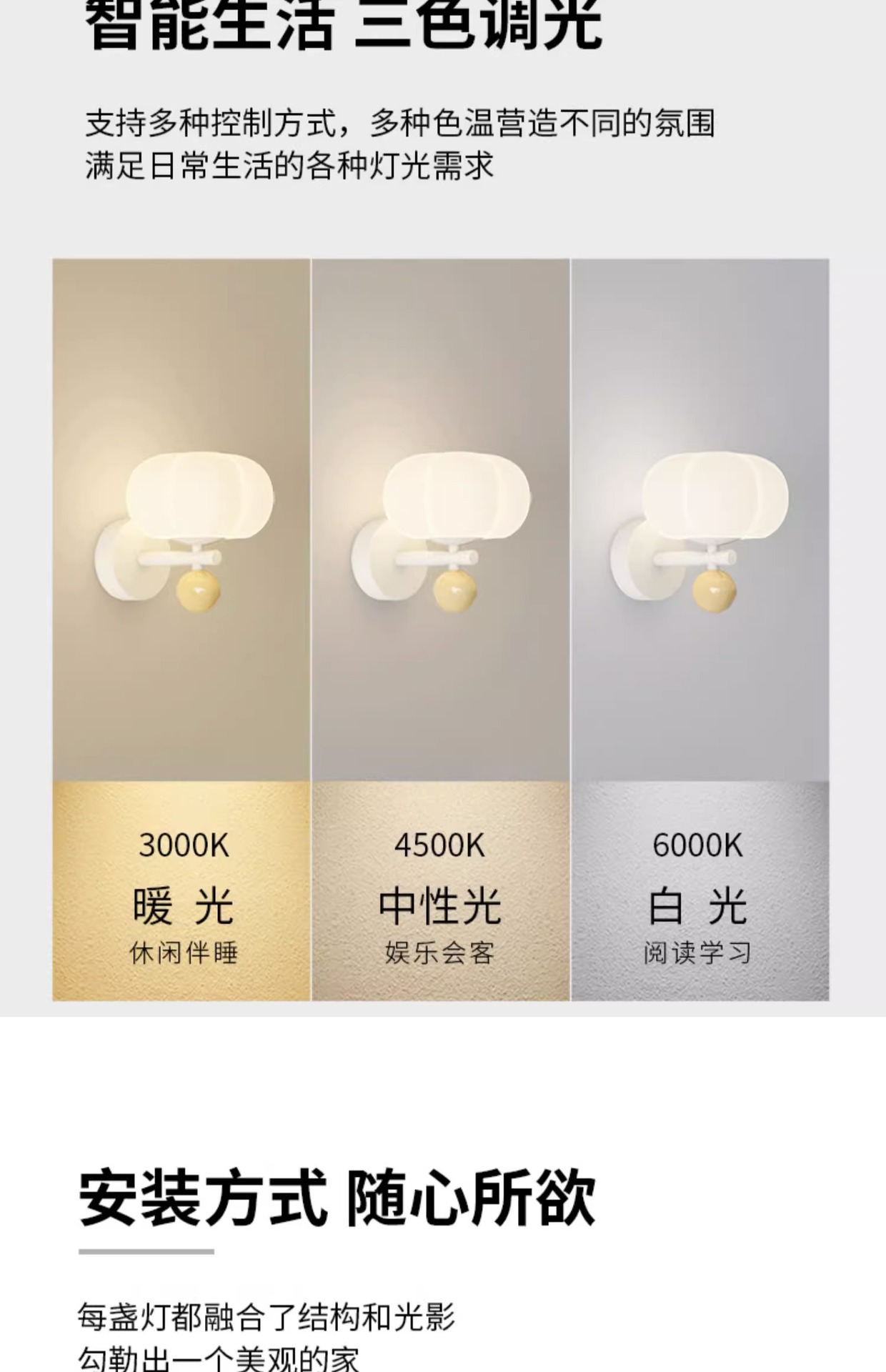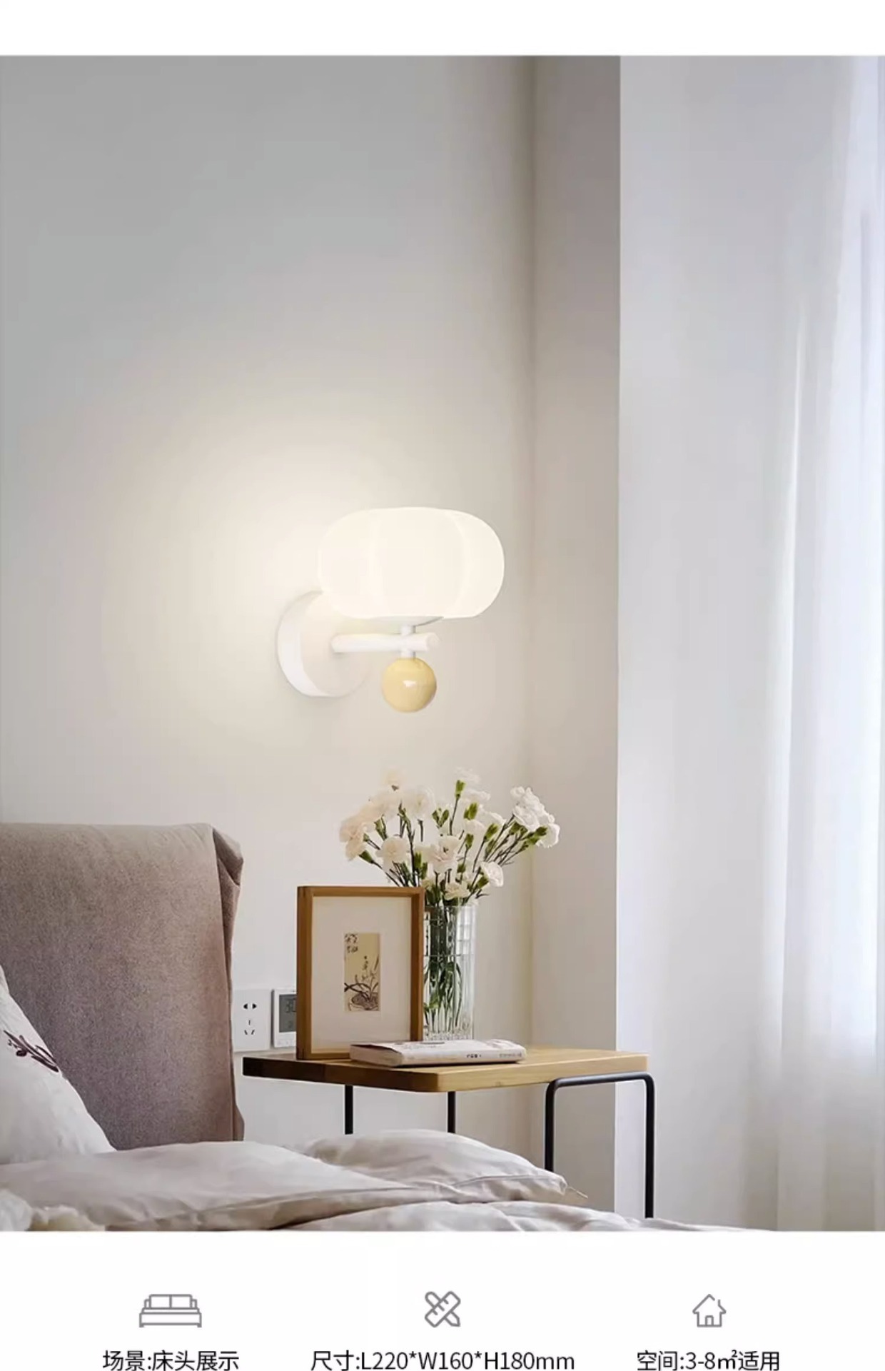 • 모래 흰색 + 베이지 벽 램프 22CM 3 색 빛 변화