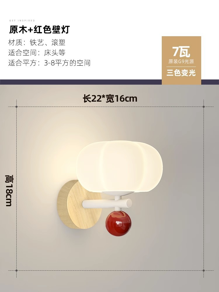 • 원래 나뭇결 + 밝은 붉은 벽 램프 22CM 3 색 빛 변화