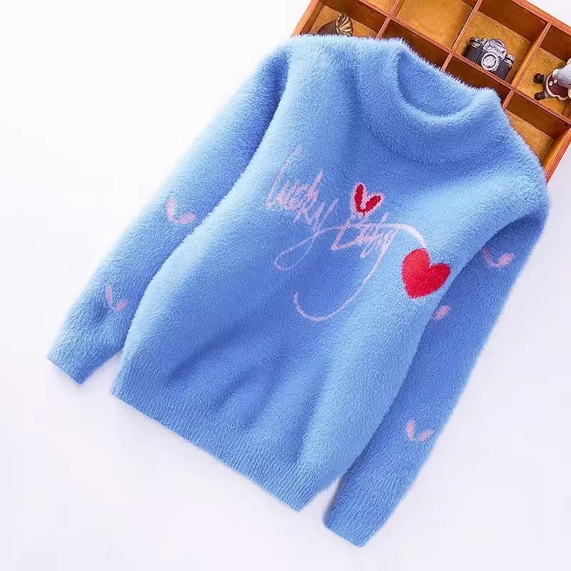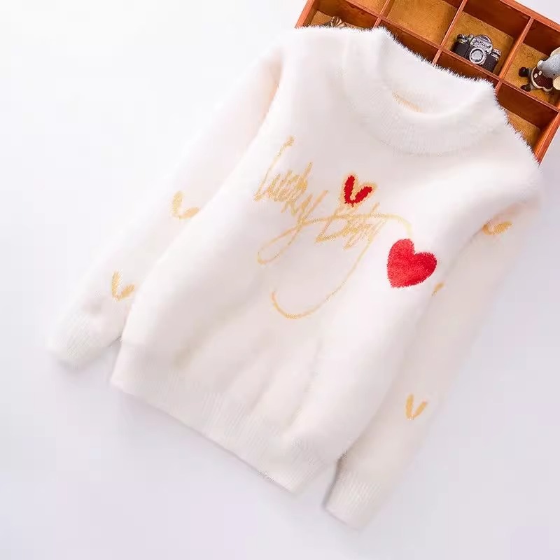 소녀 스웨터 밍크 벨벳 겨울 심플 2023 새로운 스타일 서양식 어린이 니트 셔츠