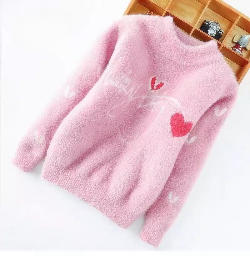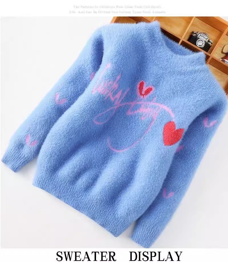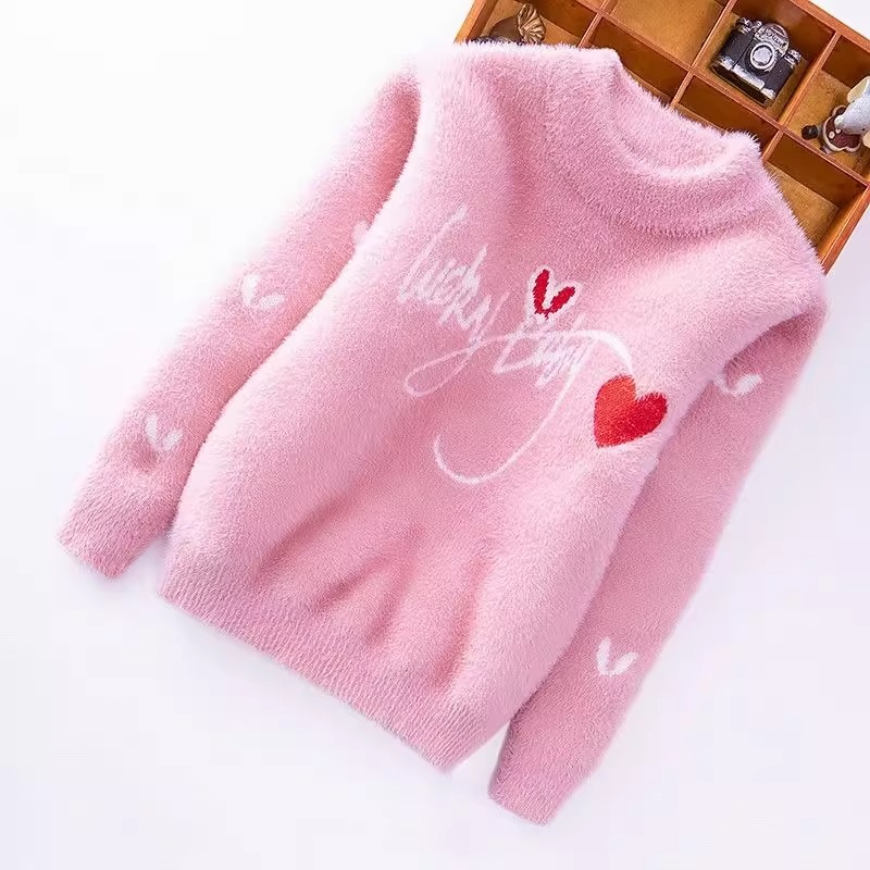 소녀 스웨터 밍크 벨벳 겨울 심플 2023 새로운 스타일 서양식 어린이 니트 셔츠스토어 가기