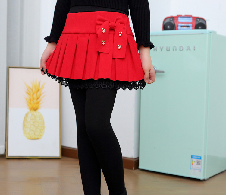 여자 가짜 투피스 퀼로트 활 구슬 레깅스 2024 겨울 어린이 슬림 핏 스트레치 슬리밍 따뜻한 바지