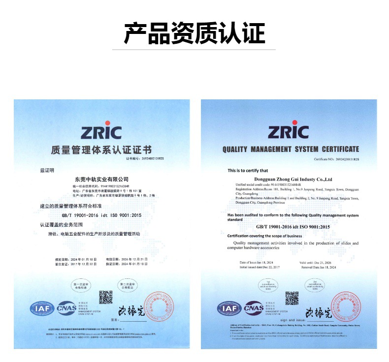 东莞中轨实业有限公司成立于2014年10月,位于东莞市东南部塘厦镇,是一家专业致力于机械自动化、电脑滑轨、五金模具、冲压制品及加工、螺丝螺柱等研发、生产、销售与服务为一体的综合性厂家。厂房占地面积 4000 平方米,员工人数 68人。本厂引进国内外先进技术及生产设备,选用优质原材料,严格按照各种质量执行标淮,以满足客户的各种需求,产品广泛用于电脑、家电、电子、玩具、多媒体音响、钟表、家具等多种行业。