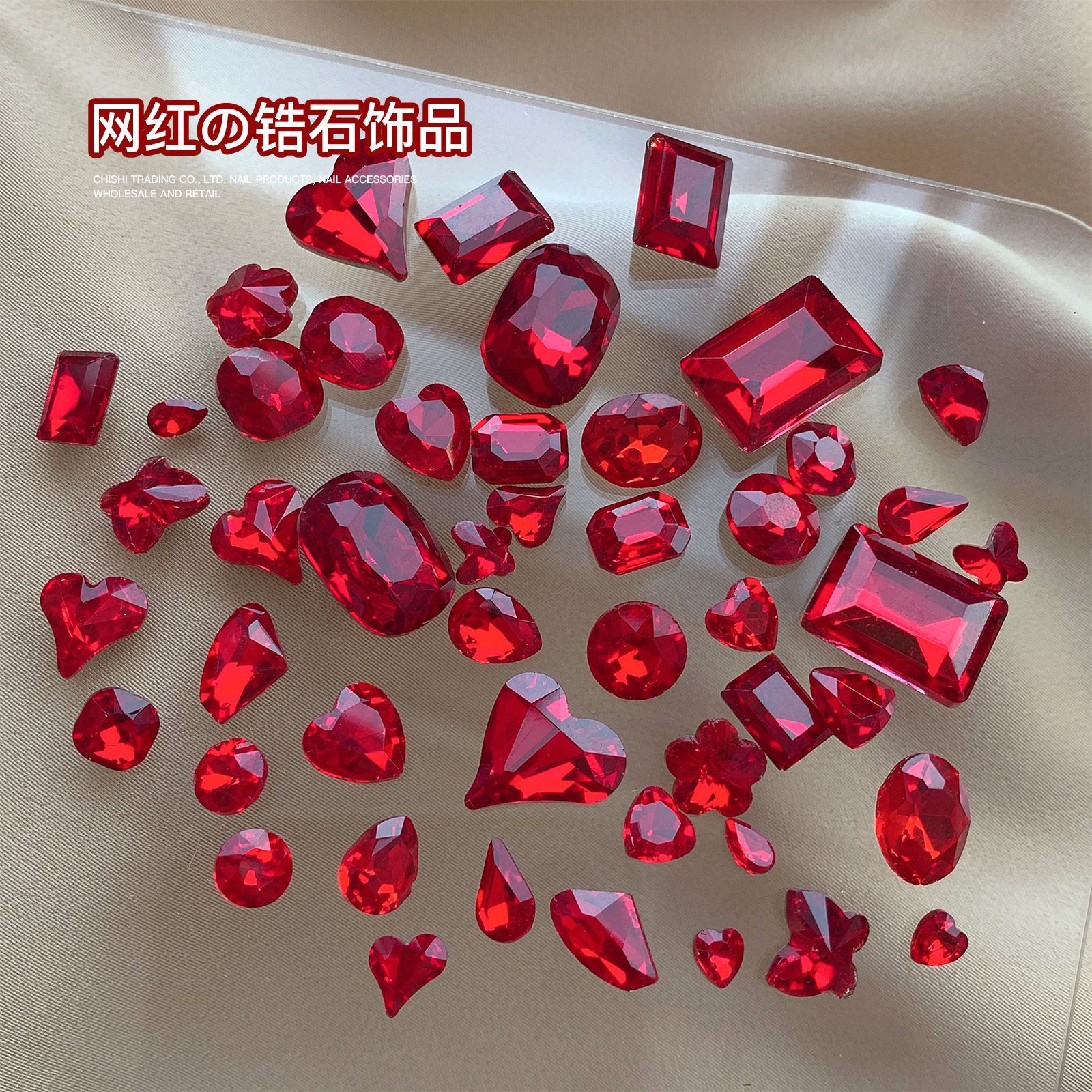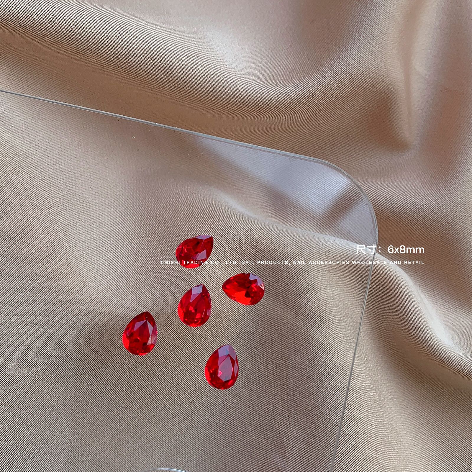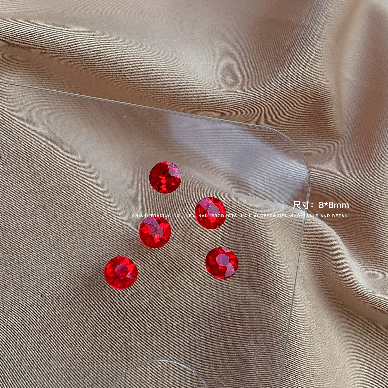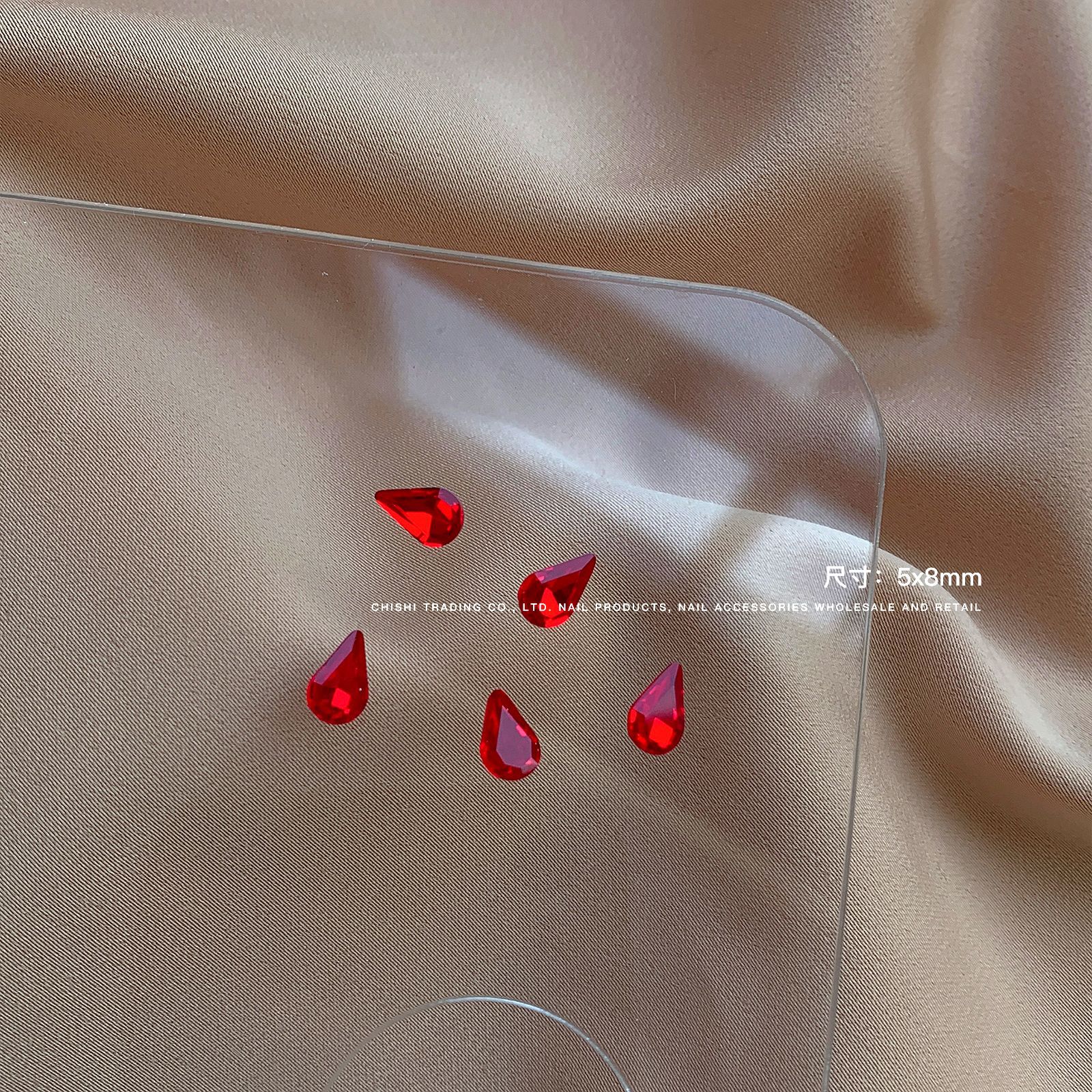 빨간색 뾰족한 바닥 특수 모양의 다이아몬드 네일 쥬얼리 신부 붉은 사랑 지방 스퀘어 다이아몬드 중국 붉은 황소 붉은 혈액 네일 드릴 도매
