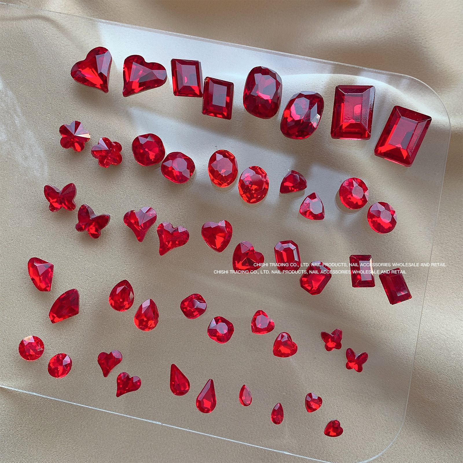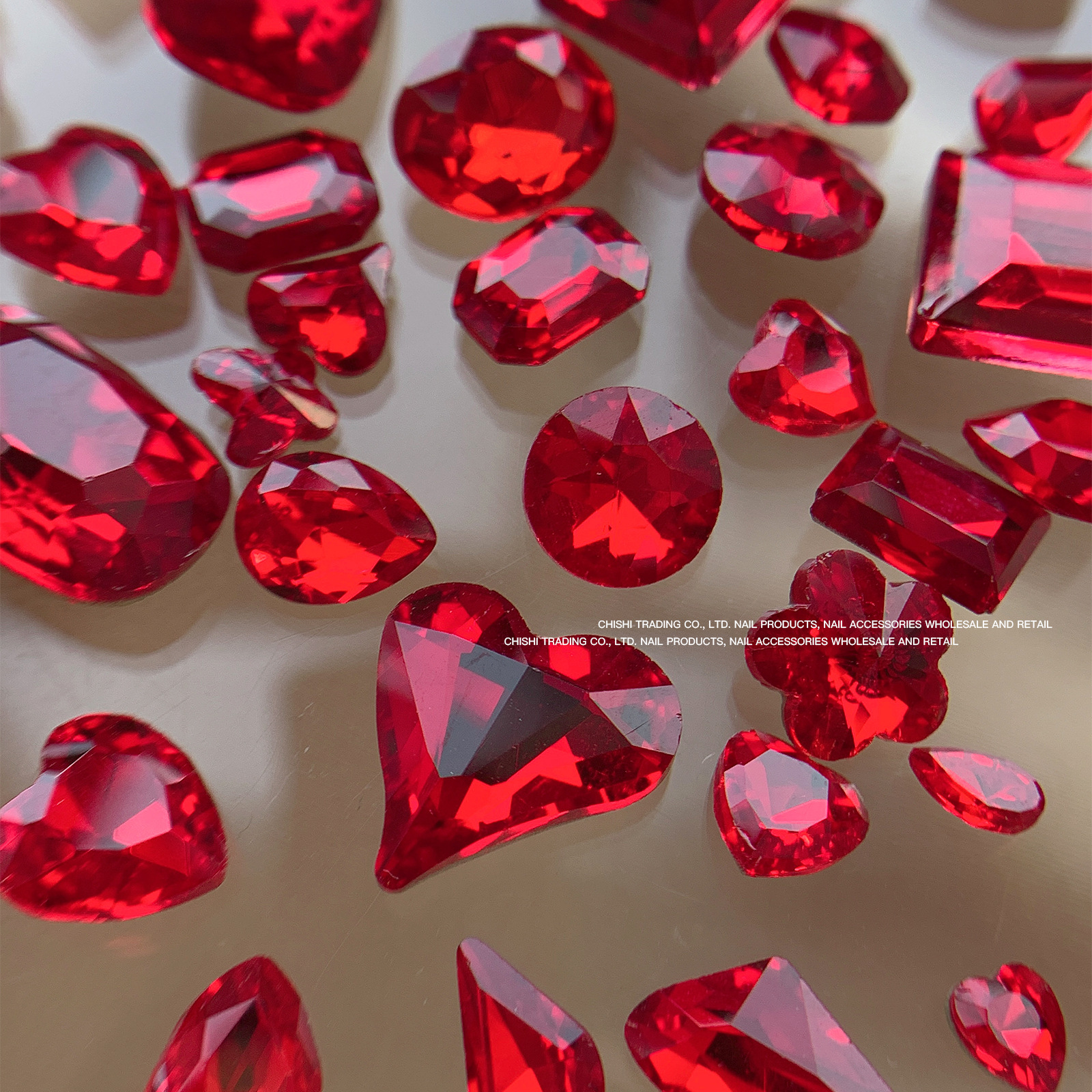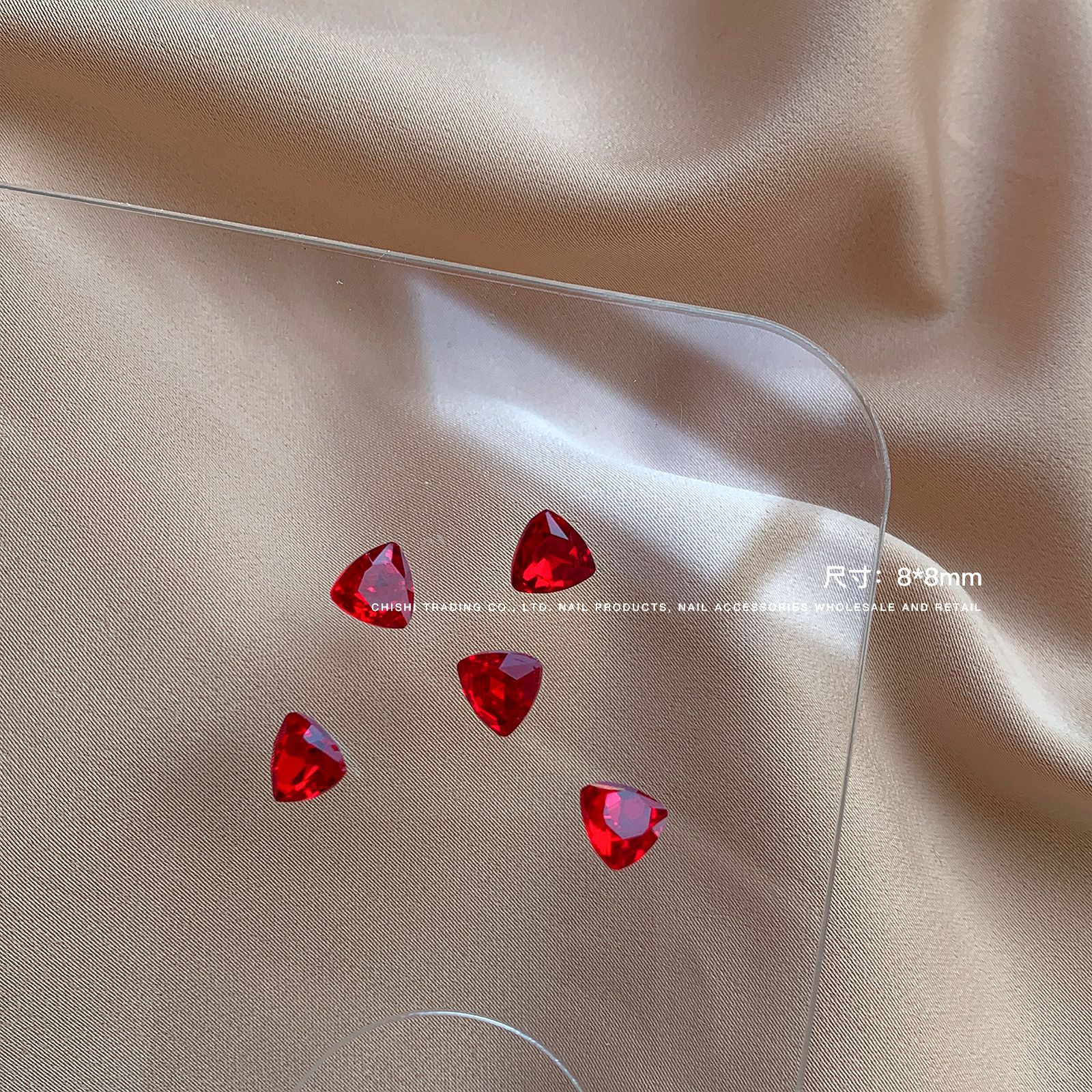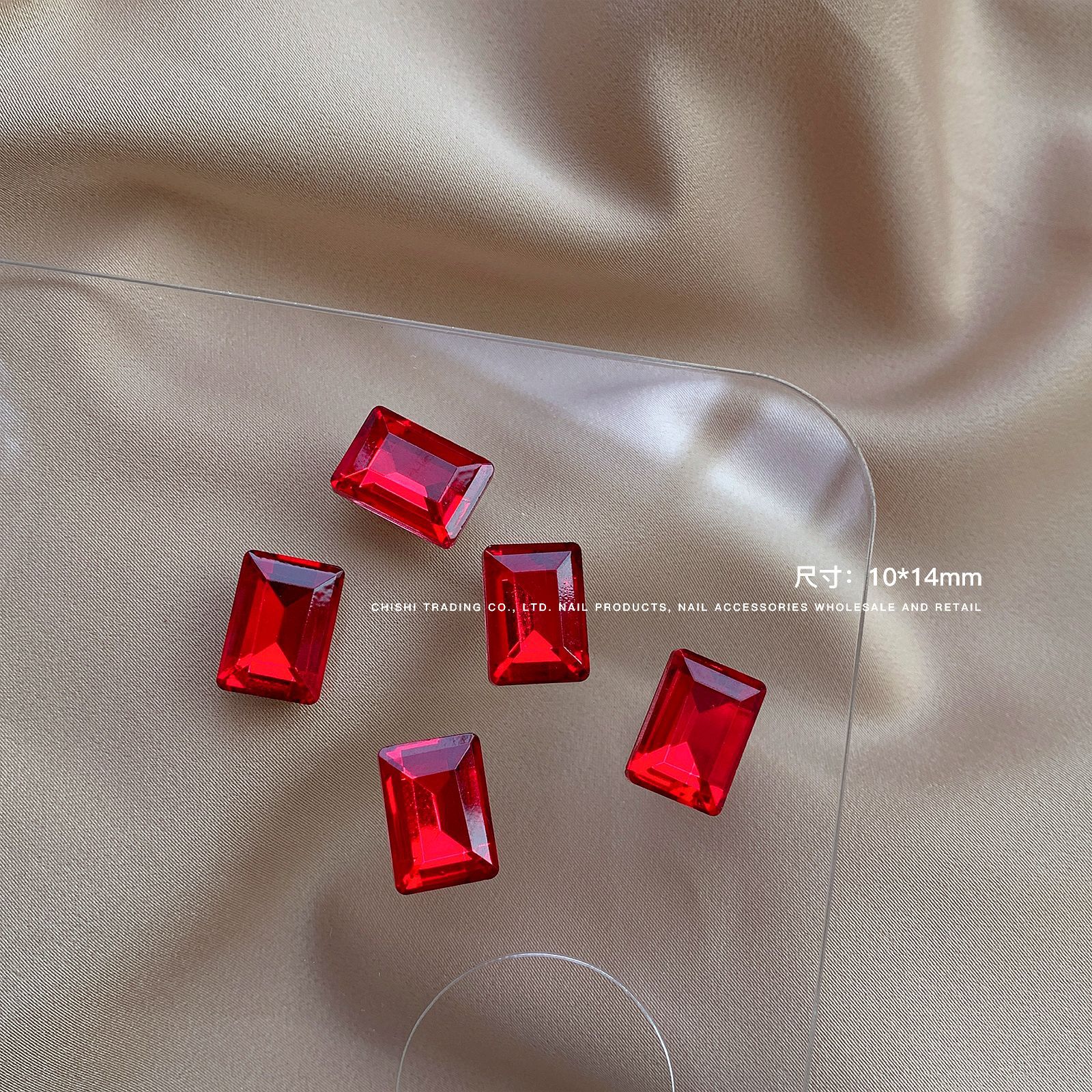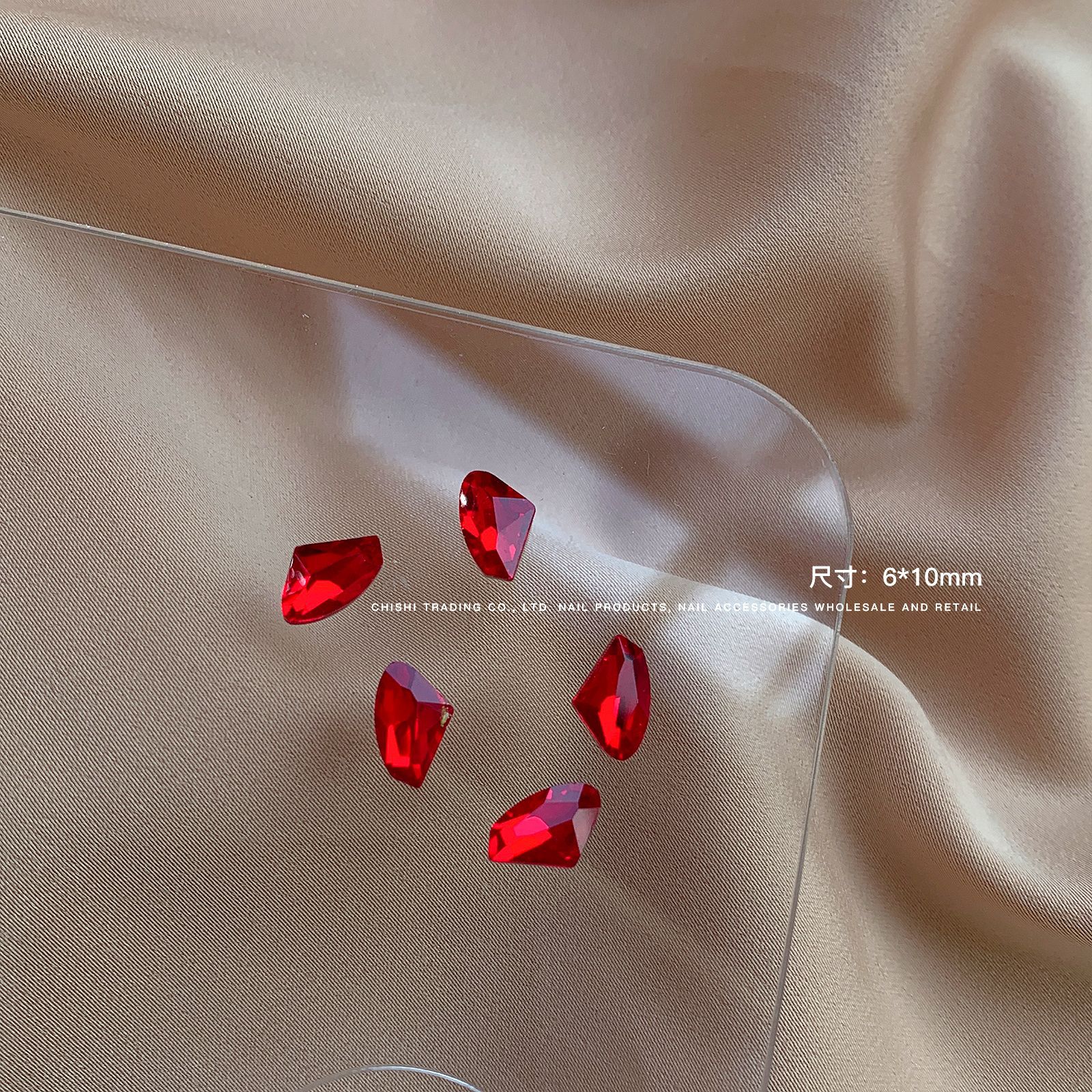 빨간색 뾰족한 바닥 특수 모양의 다이아몬드 네일 쥬얼리 신부 붉은 사랑 지방 스퀘어 다이아몬드 중국 붉은 황소 붉은 혈액 네일 드릴 도매