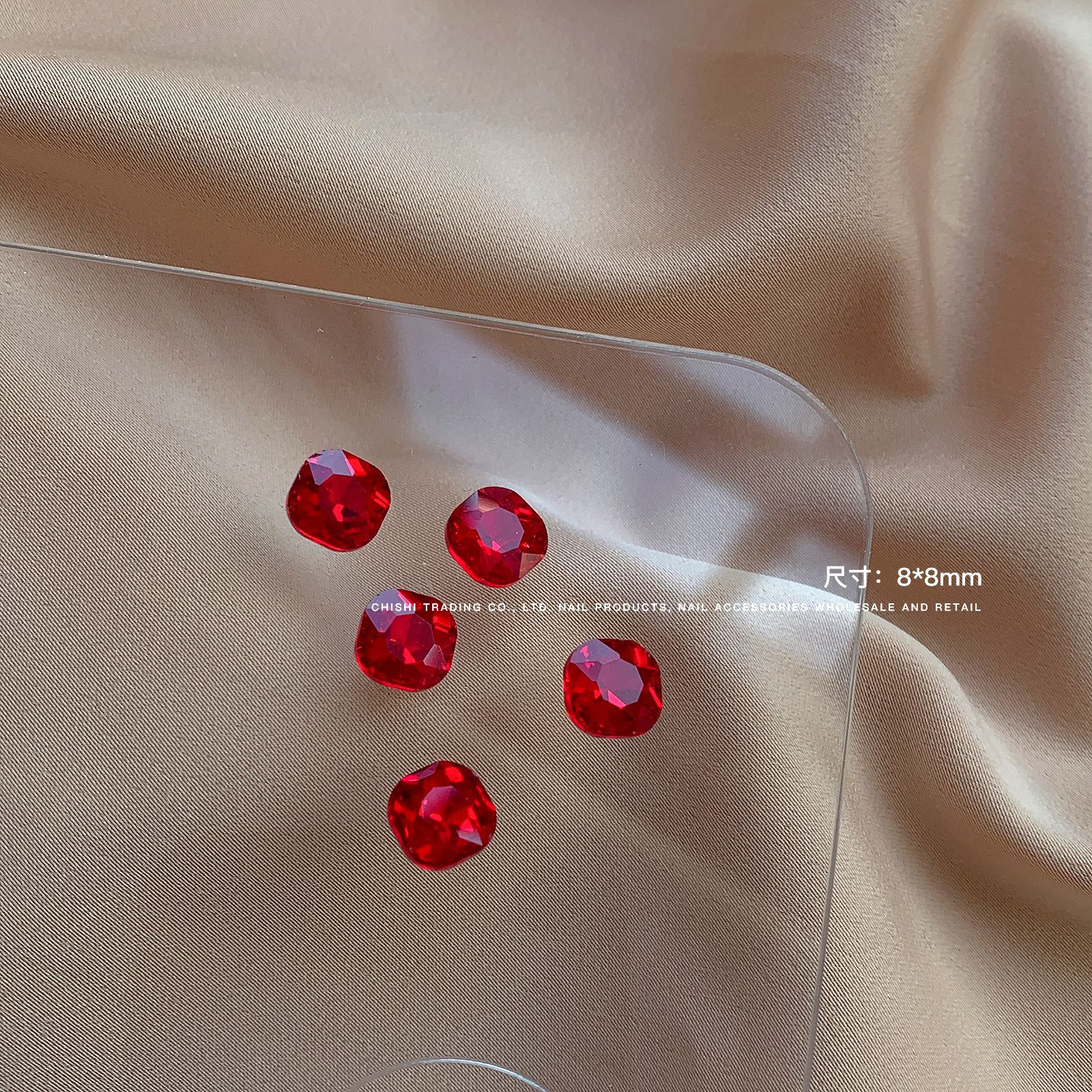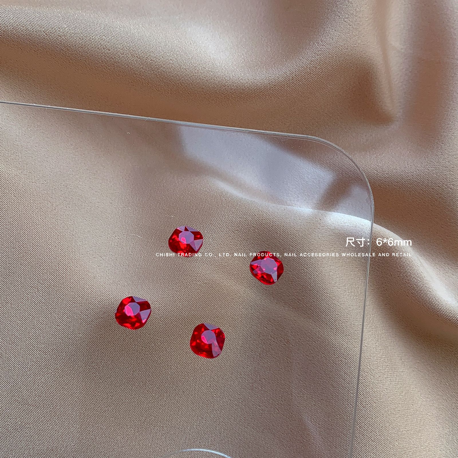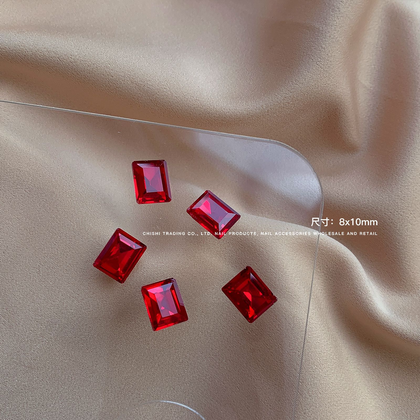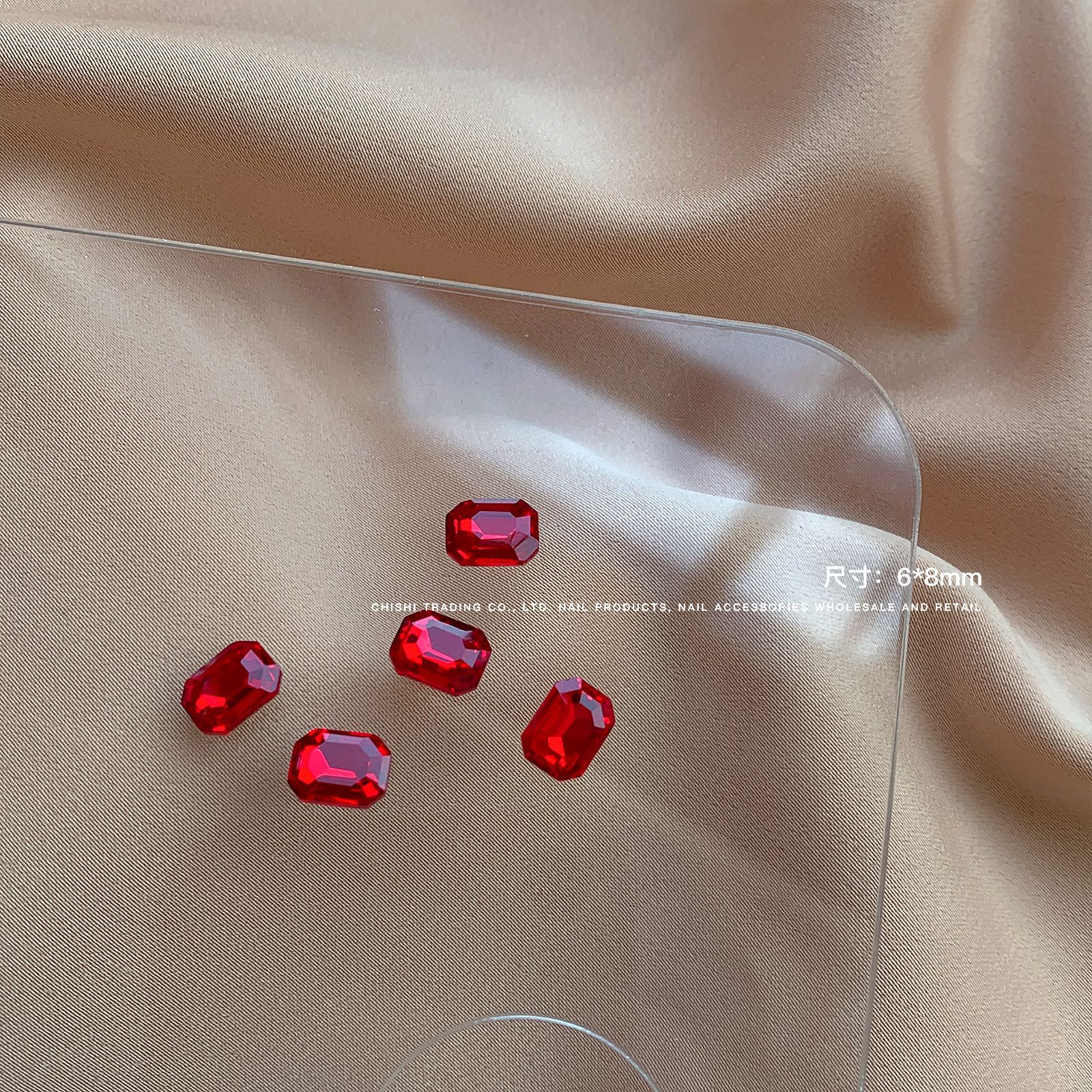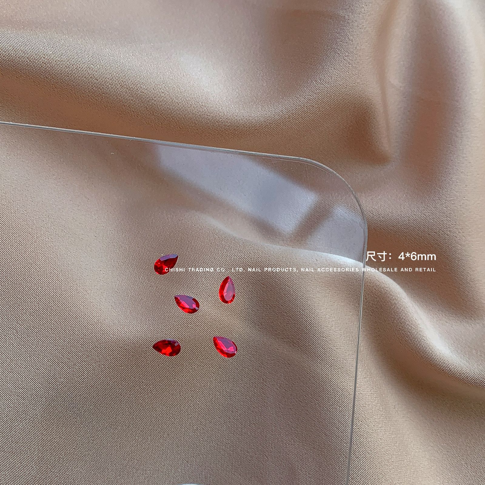 빨간색 뾰족한 바닥 특수 모양의 다이아몬드 네일 쥬얼리 신부 붉은 사랑 지방 스퀘어 다이아몬드 중국 붉은 황소 붉은 혈액 네일 드릴 도매스토어 가기