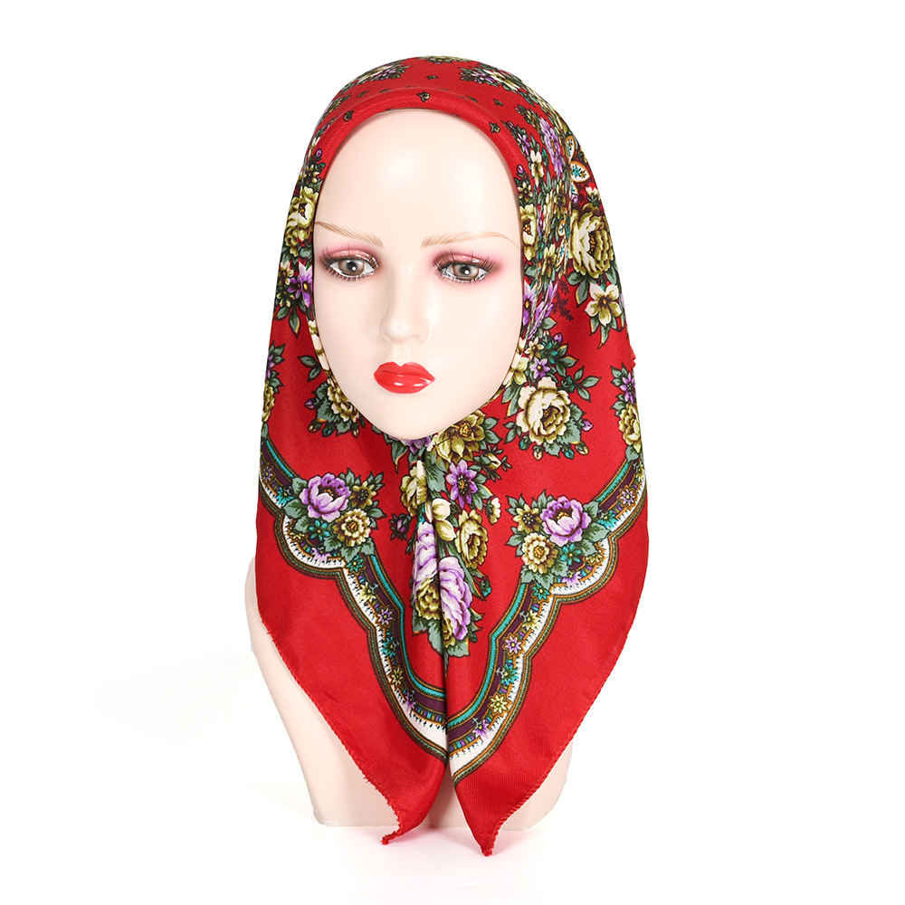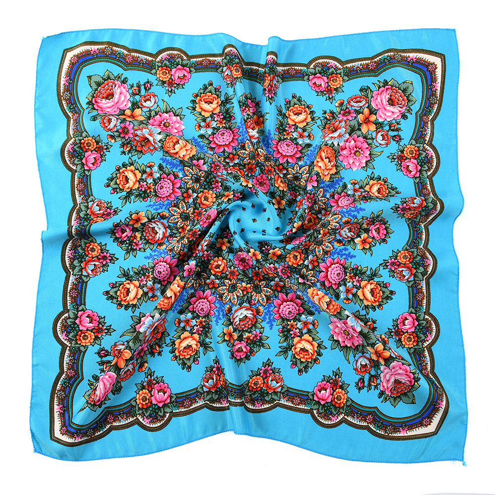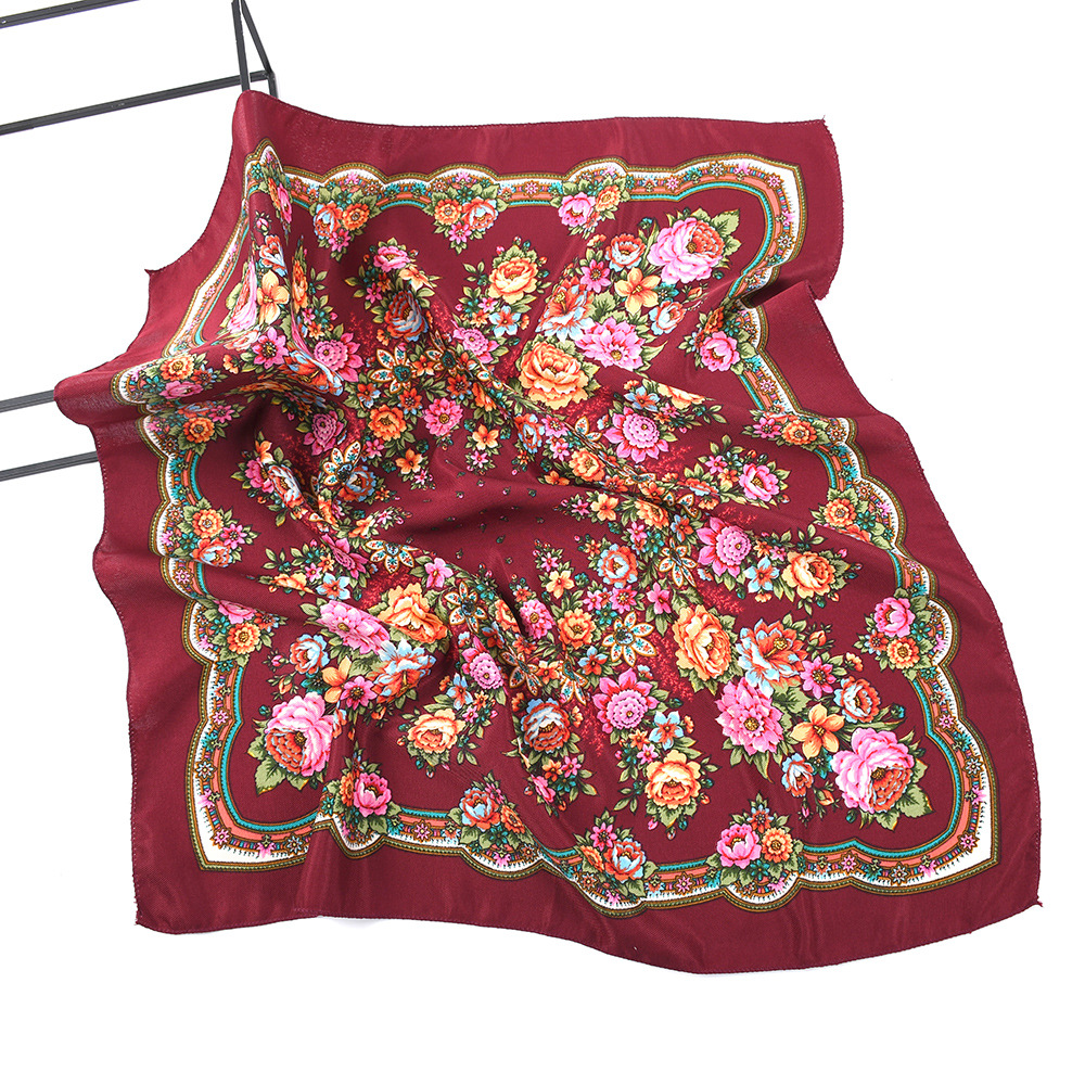 새로운 패션 작은 꽃 인쇄 러시아 스타일 작은 사각형 스카프 70cm 레이온 따뜻한 스카프