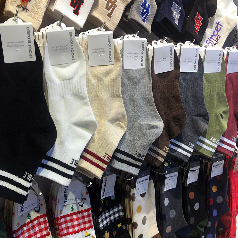 한국 수입 양말 프레피 스타일 2 바 줄무늬 TB 소녀 양말 편지 SMILE 중간 송아지 길이 양말 동대문면 양말스토어 가기