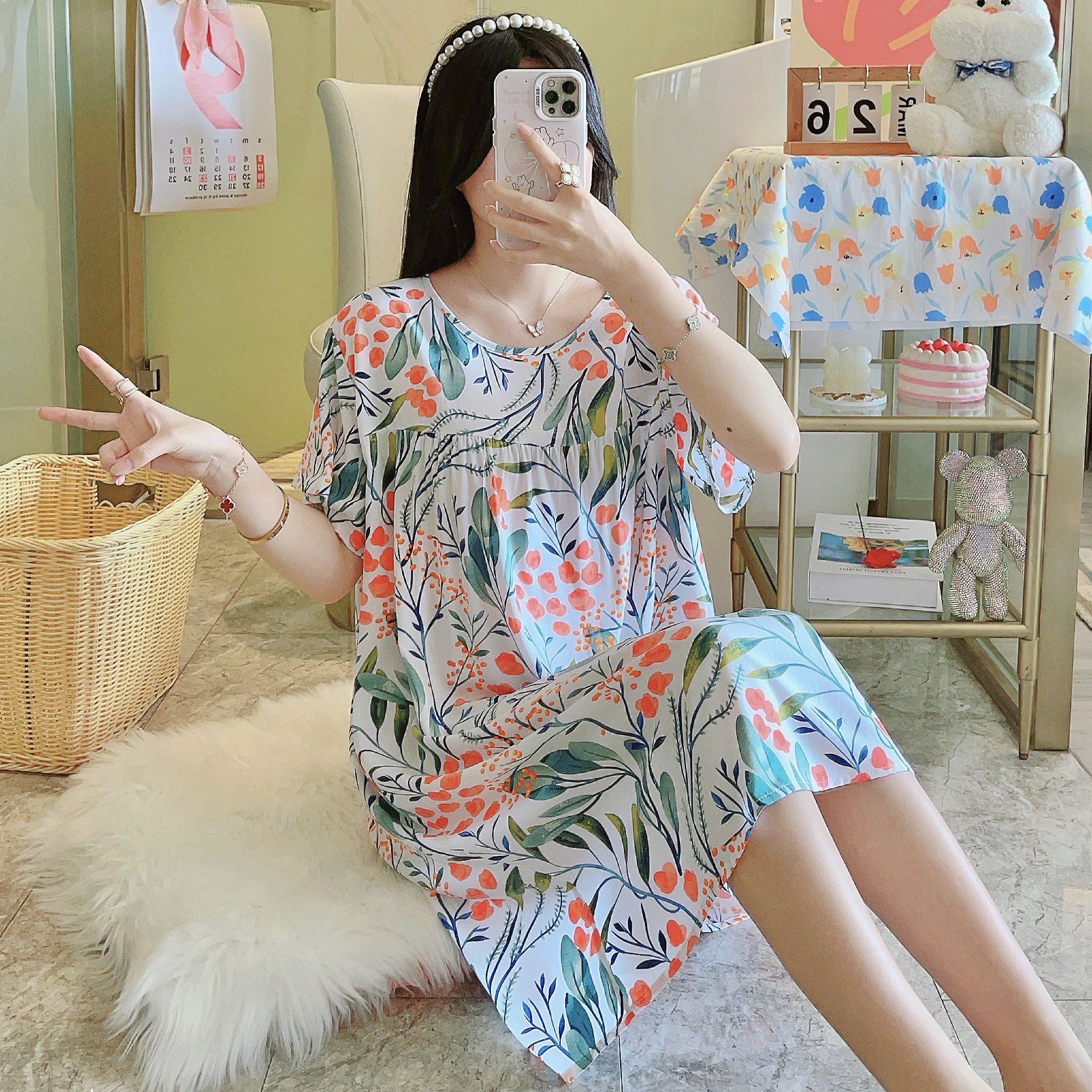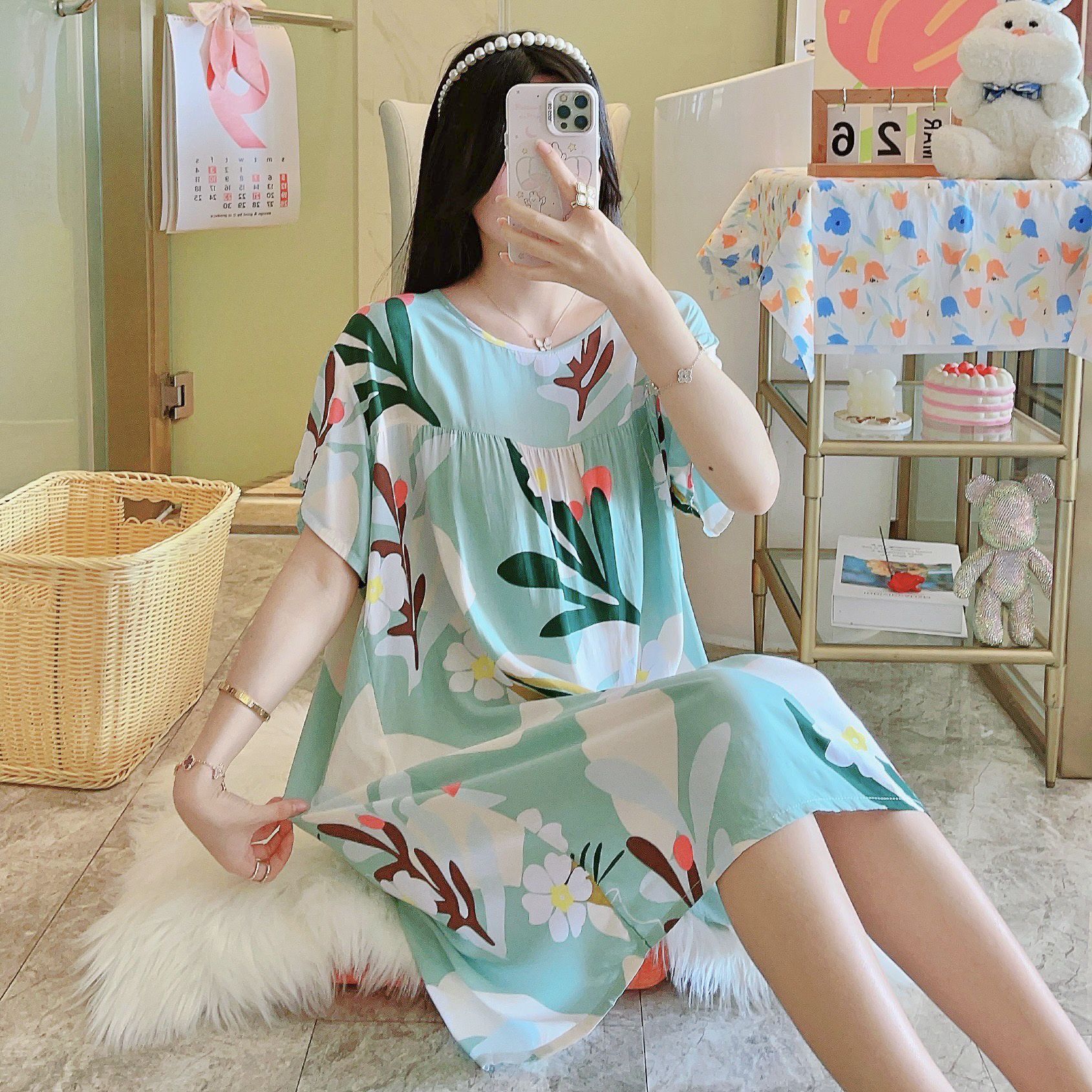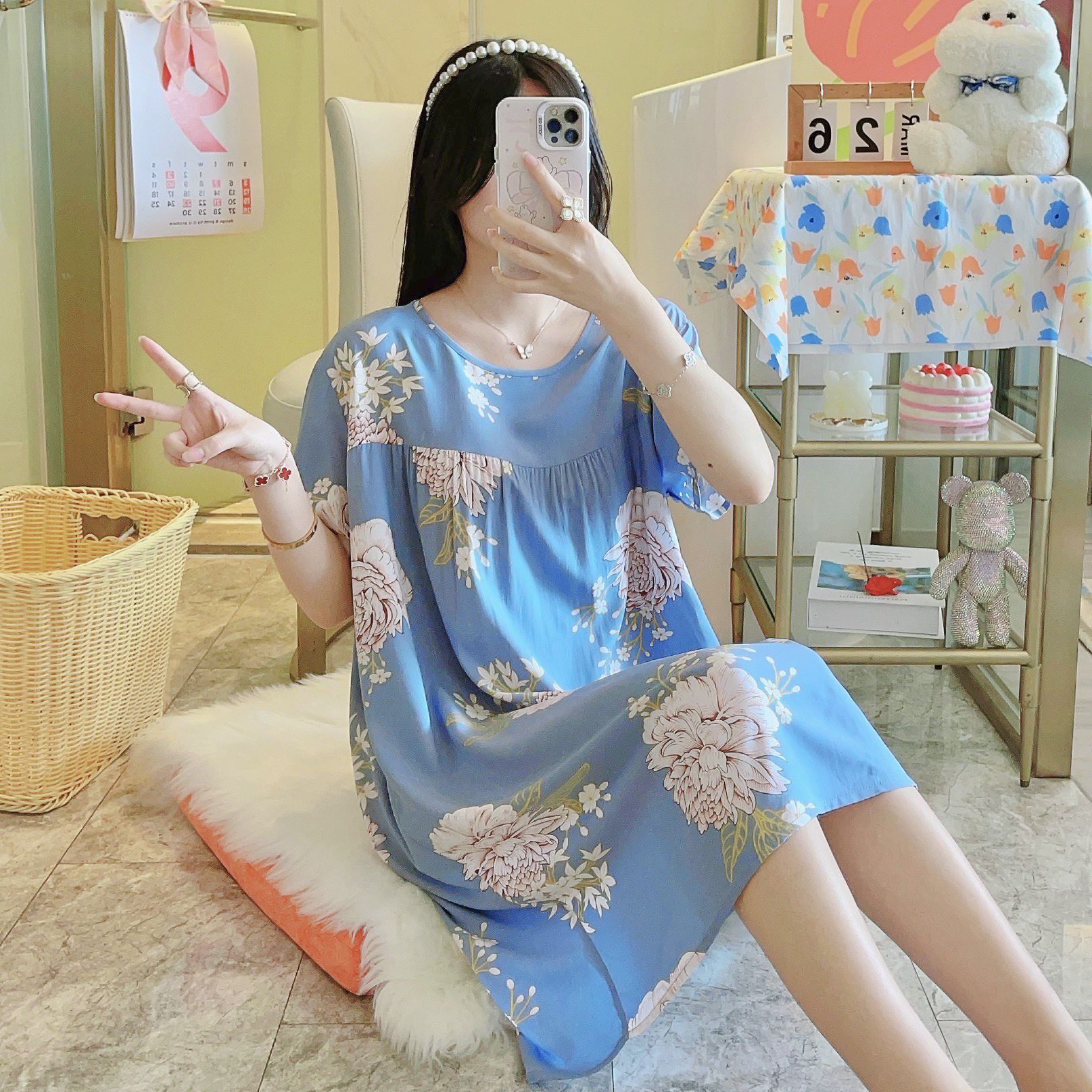 면 실크 잠옷 여성 봄 가을 여름 얇은 잠옷 한국 달콤한 소녀 온라인 축하 라이브 폭발 홈 아웃웨어 스커트스토어 가기