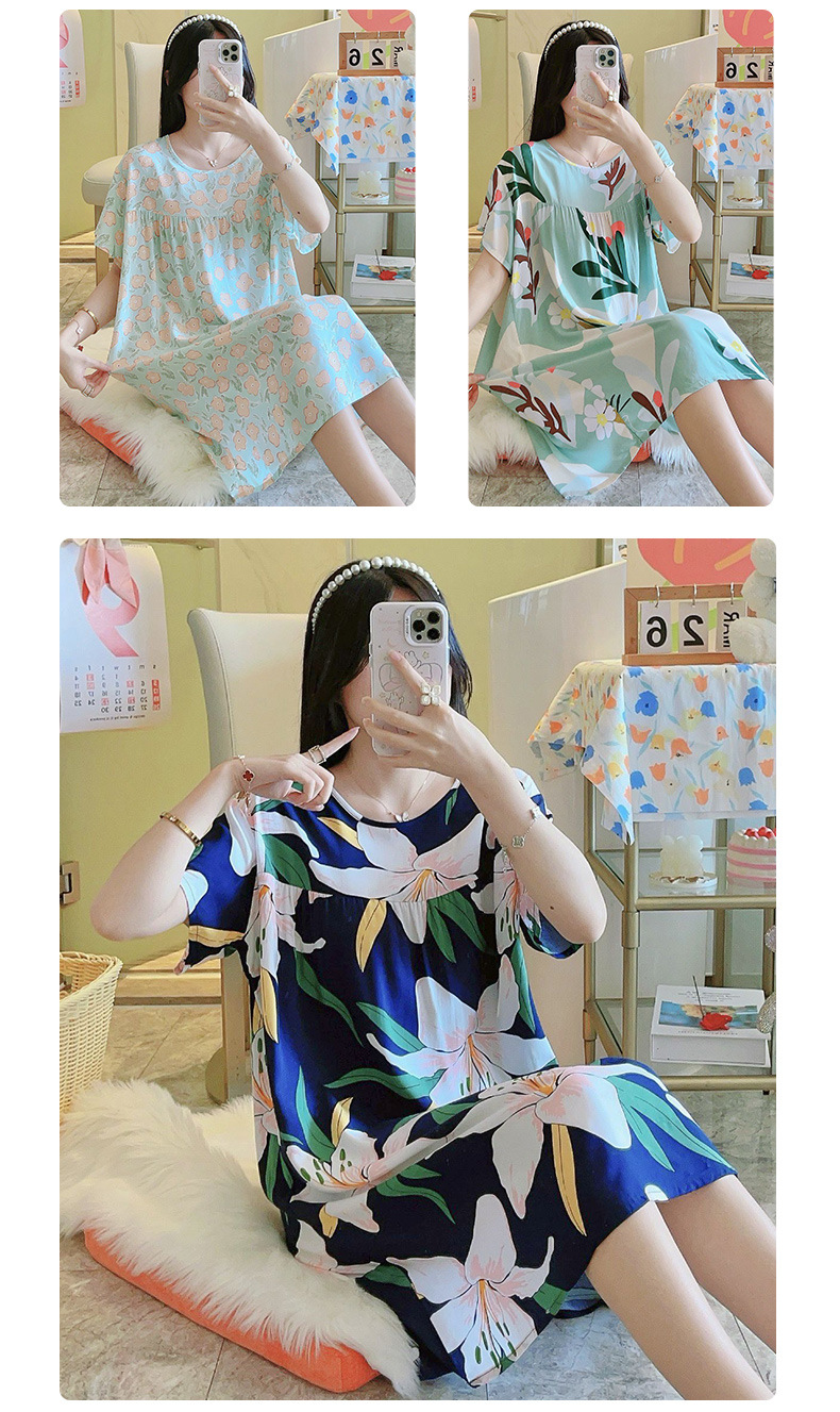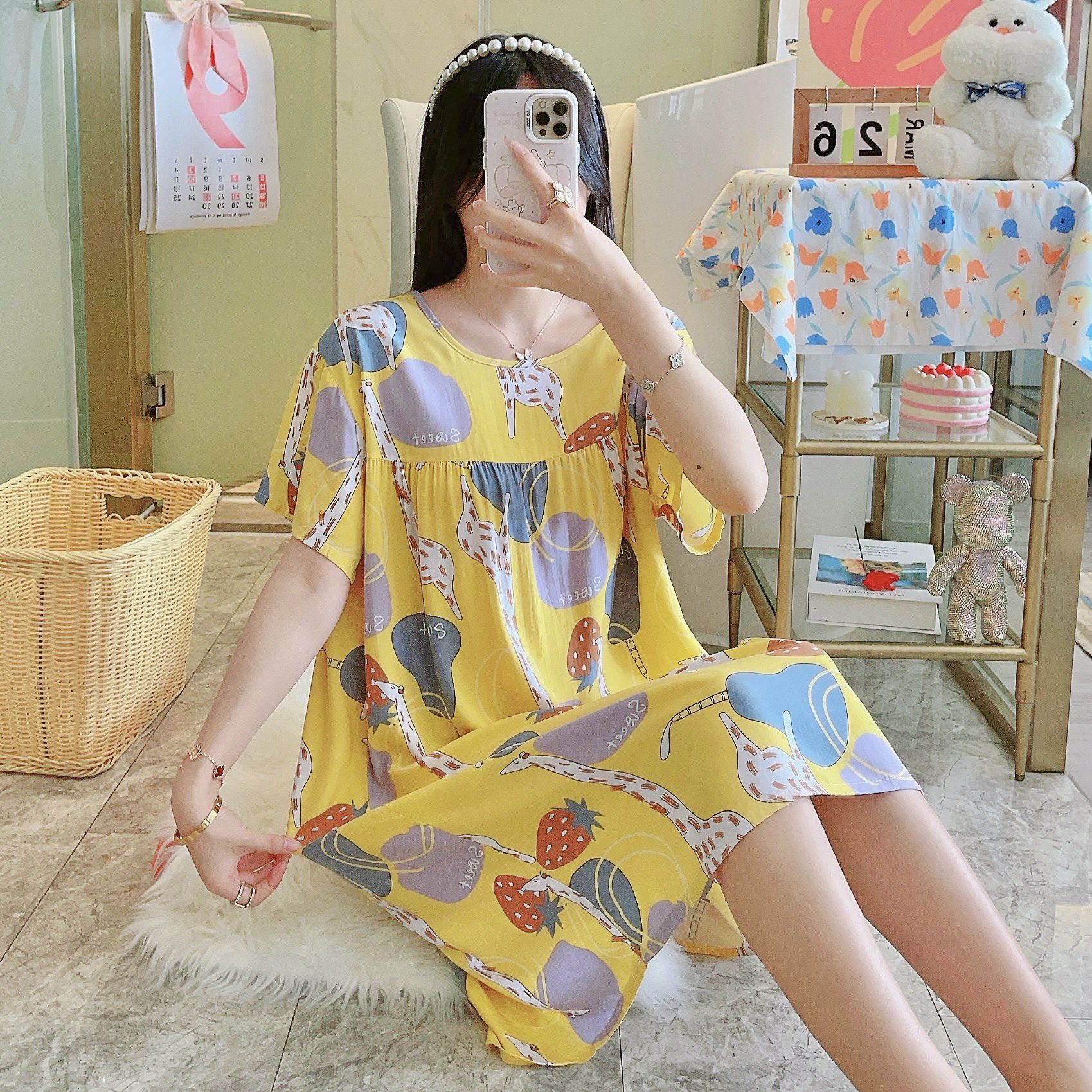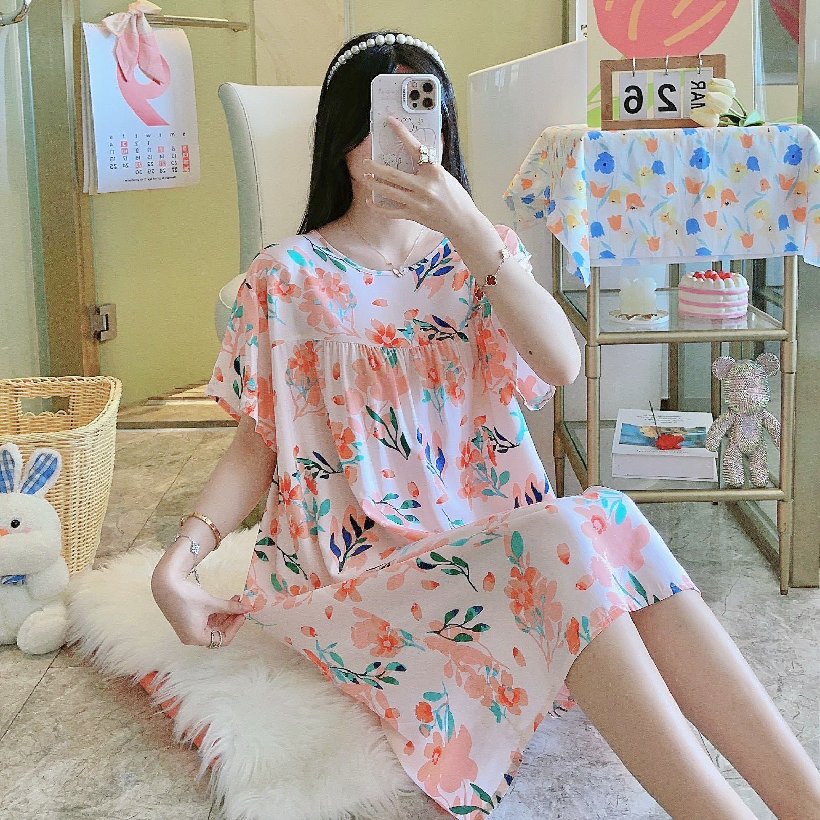 면 실크 잠옷 여성 봄 가을 여름 얇은 잠옷 한국 달콤한 소녀 온라인 축하 라이브 폭발 홈 아웃웨어 스커트스토어 가기