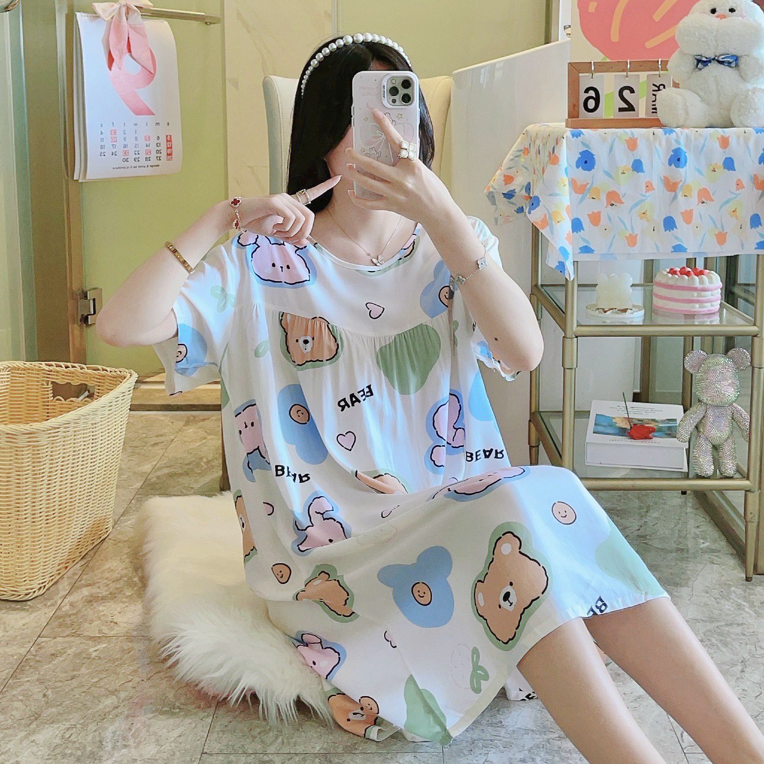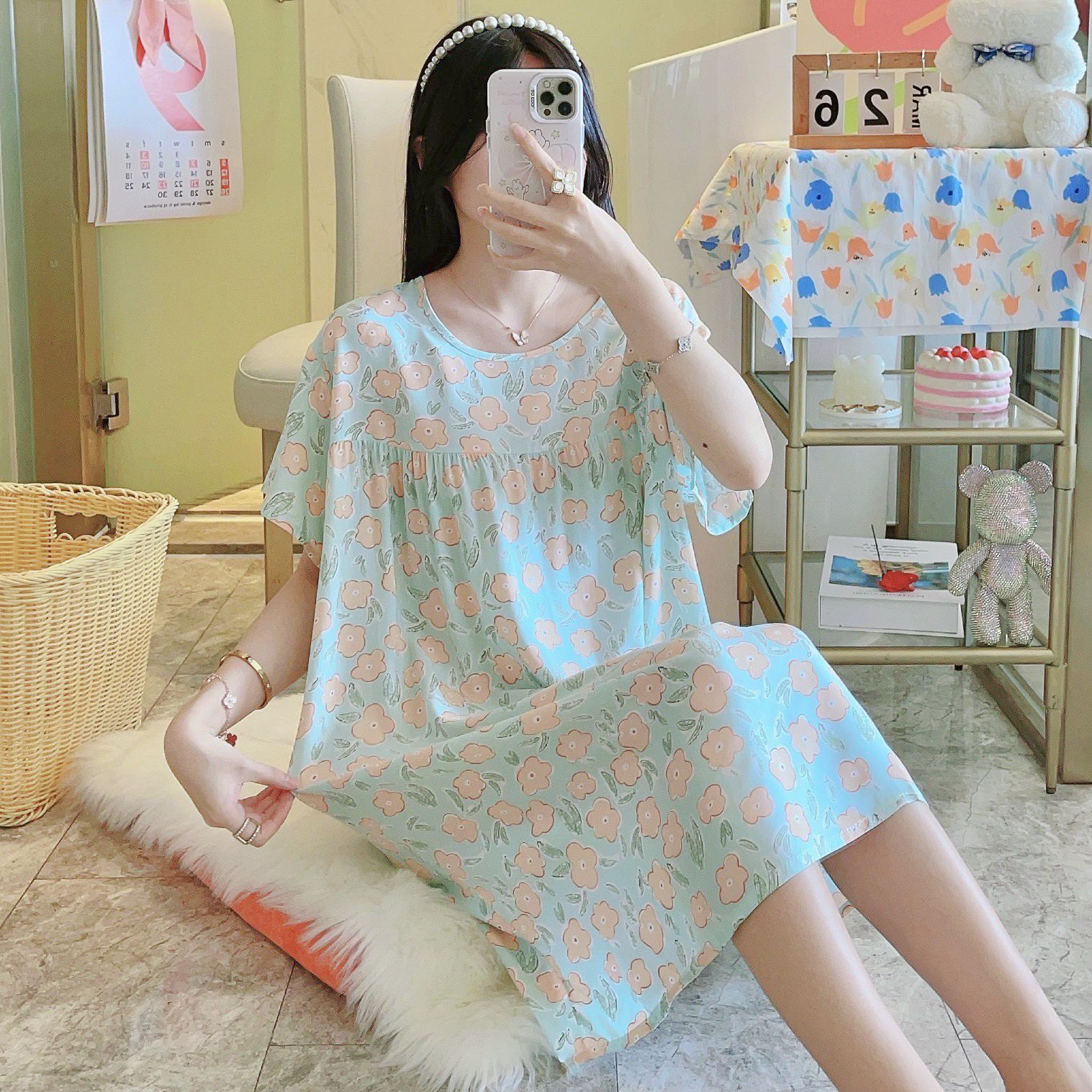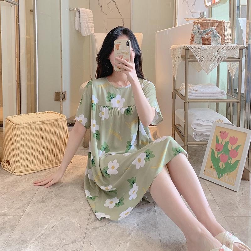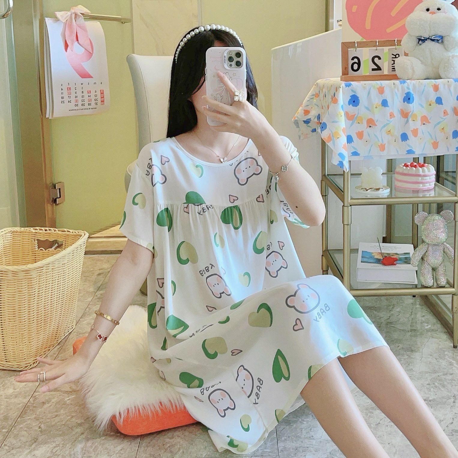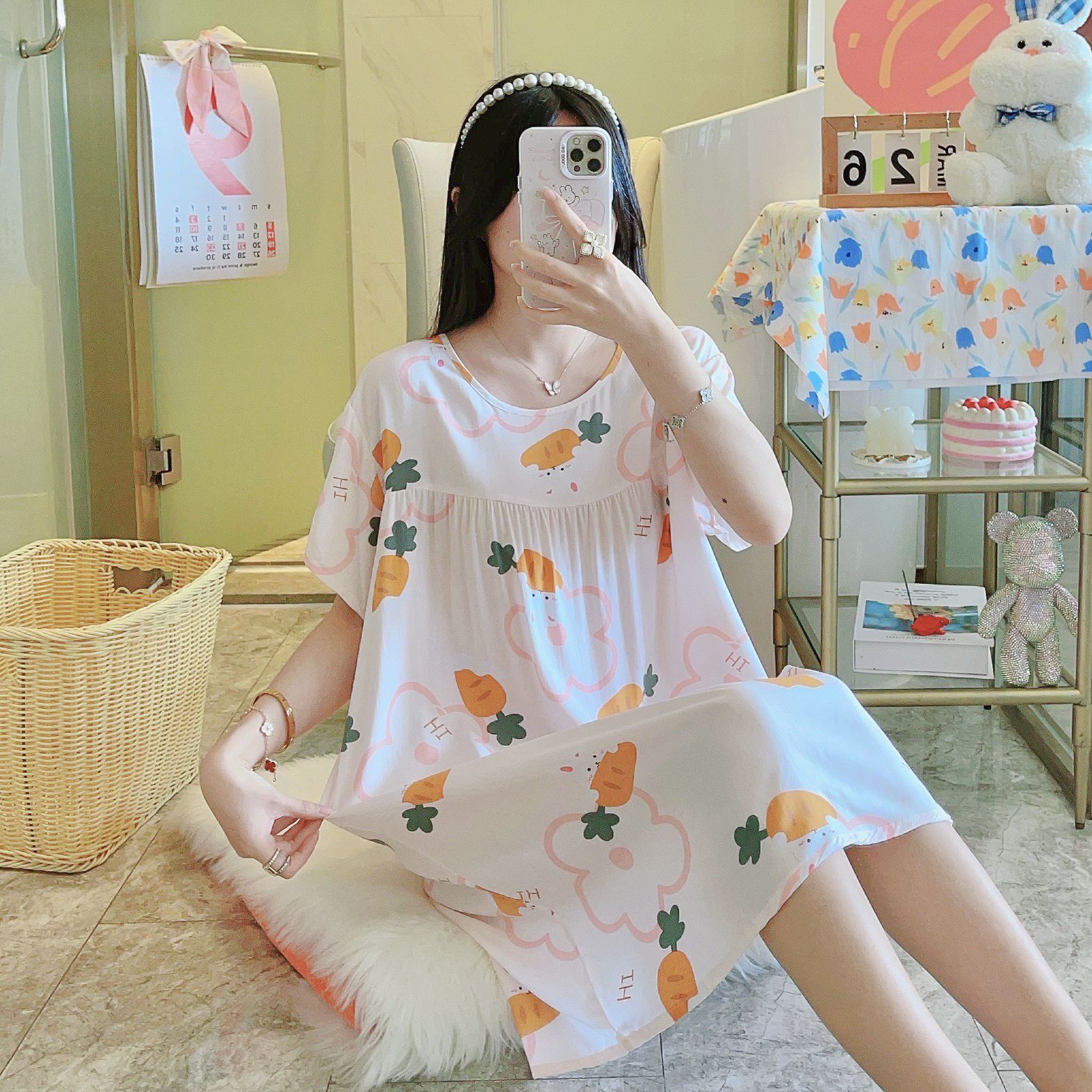 면 실크 잠옷 여성 봄 가을 여름 얇은 잠옷 한국 달콤한 소녀 온라인 축하 라이브 폭발 홈 아웃웨어 스커트