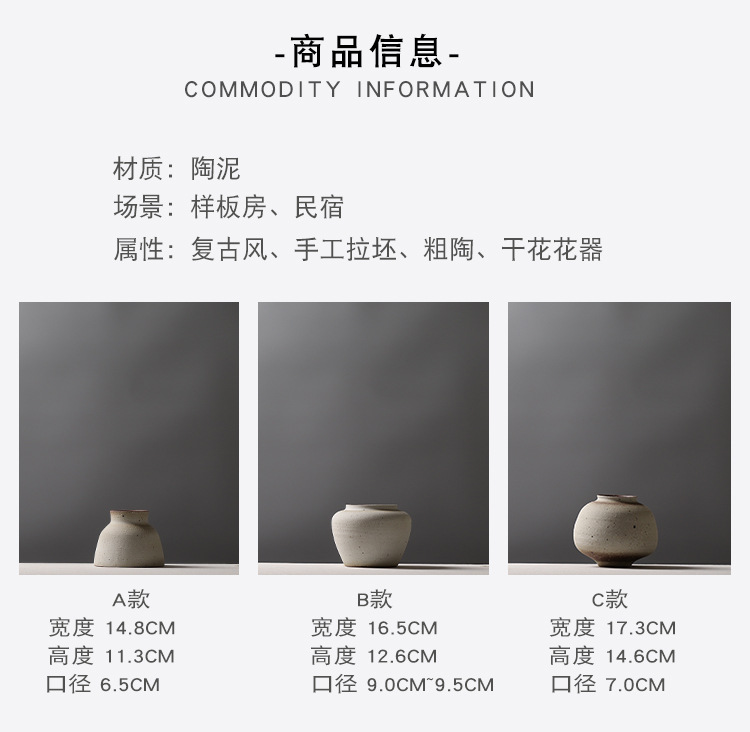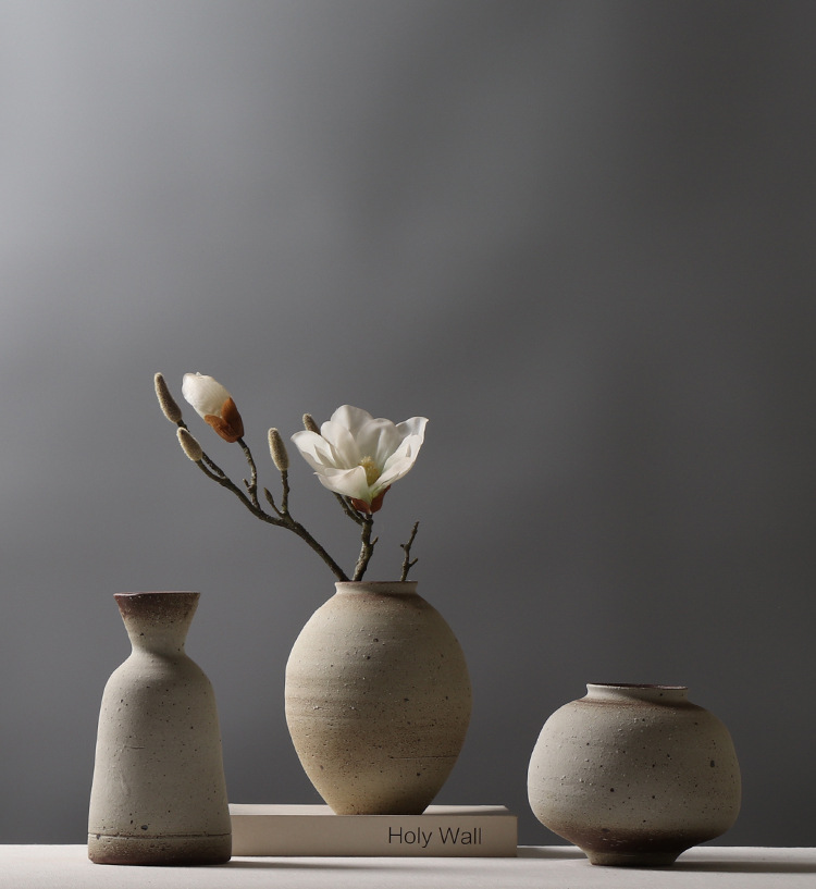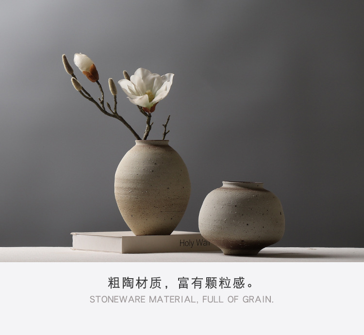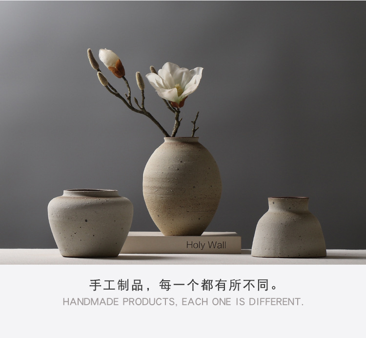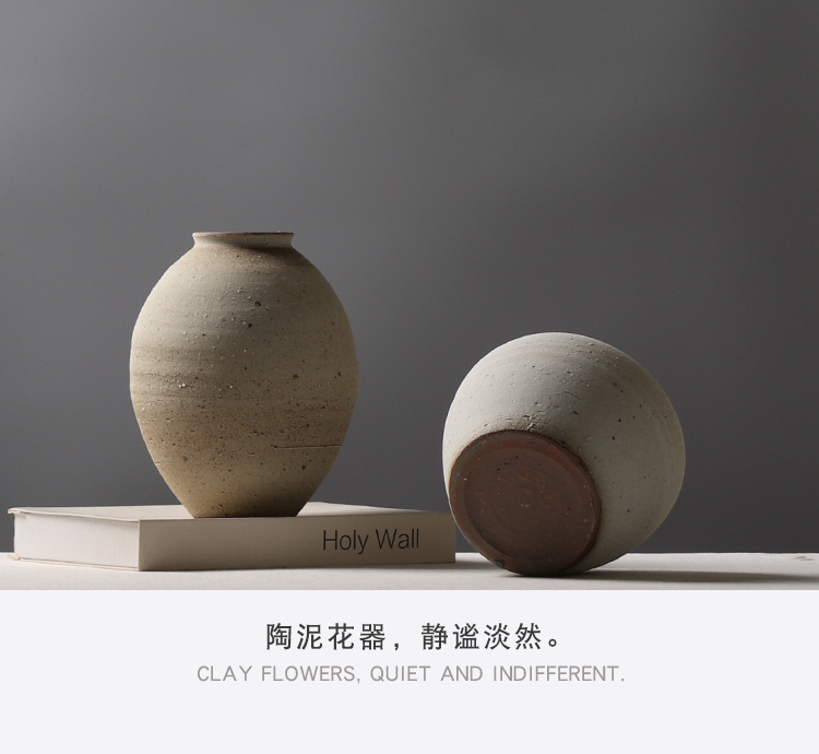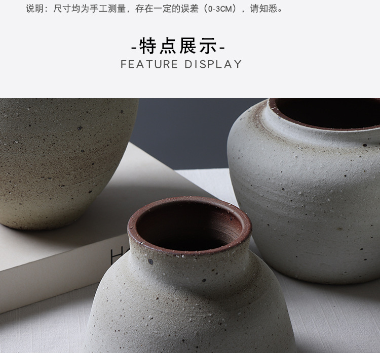 레트로 스타일 수제 도자기 침대 & 아침 모델 룸 꽃꽂이 장식 간단한 스몰 사이즈 꽃병 창조적 인 석기 장식